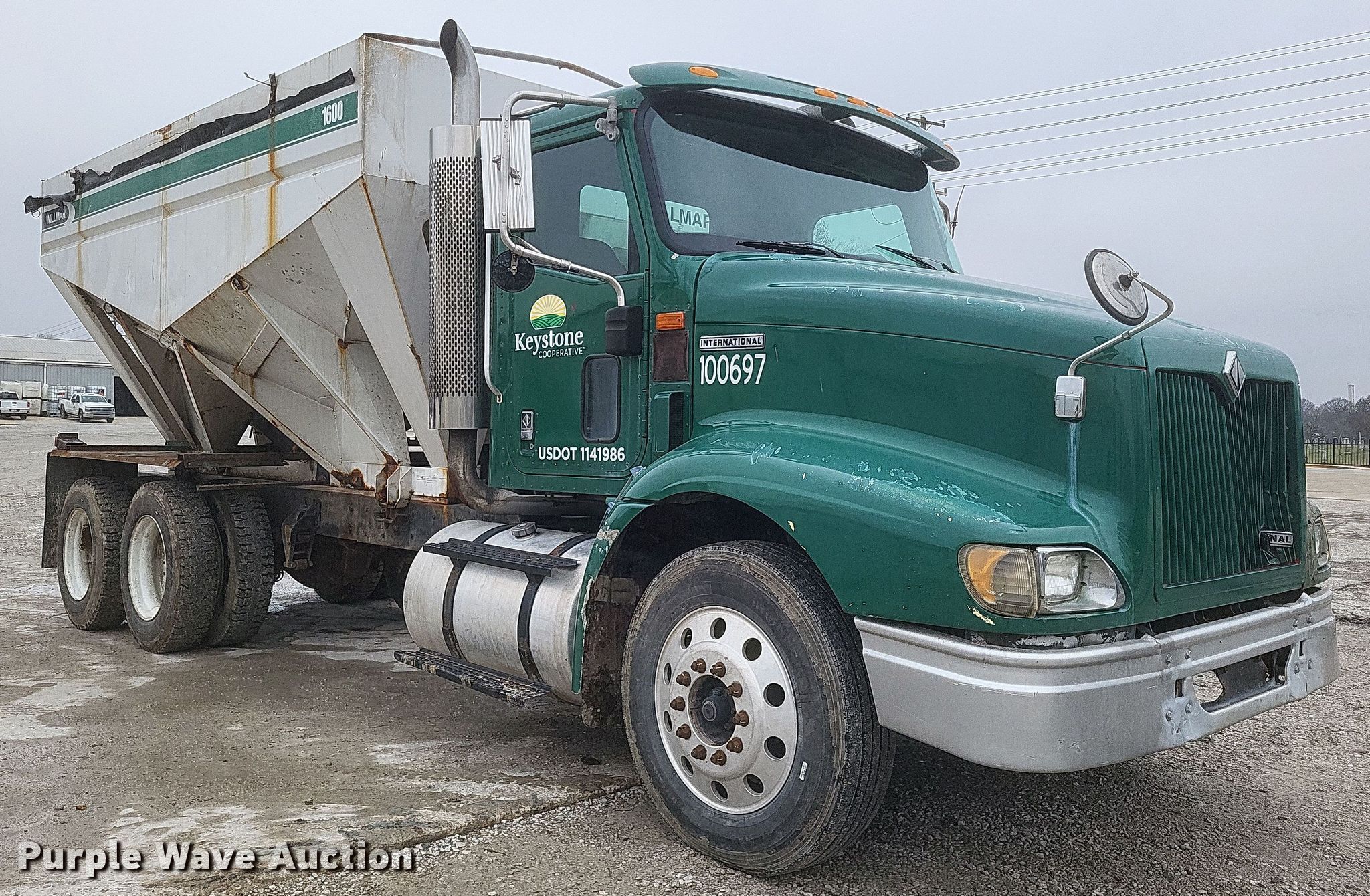 Purple Wave is selling a used Fertilizer or Feed Delivery Trailer in Indiana. This item is a 2000 International 9100i fertilizer delivery truck with the following: Miles: 577,713 on odometer, VIN: 2HSCBAER8YC070751, Unit #: 100697