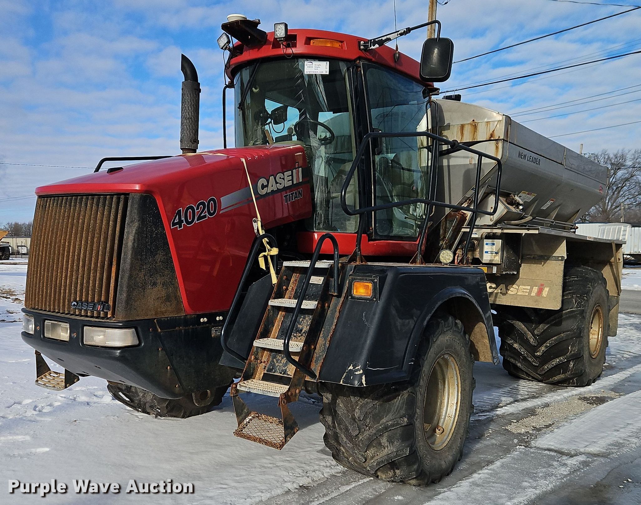 Purple Wave is selling a used Applicator Self Propelled in Missouri. This item is a 2011 Case 4020 spreader with the following: Engine hours: 7,505 on meter, Serial: YBT031238