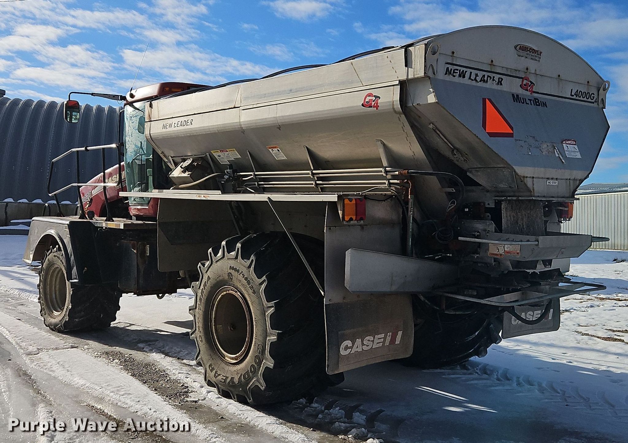 2011 Case 4020 spreader. Engine hours: 7,505 on meter, Serial: YBT031238. Engine Cummins, Cylinders: 6, Fuel type: Diesel. Transmission Allison, Automatic. Chassis Axles: Single, Suspension: Spring, Brakes: Air. Operators station AC, Heat. Features Dry fertilizer spreader bed New Leader G4 L4000G4-14, Serial: 133678, Capacity: 10 tons, Length: 16', Stainless steel, Dual spinners, Roll tarp, Conveyor belt Width: 24", Electronics GPS monitor Aggregate Leader, GPS receiver Trimble, Spray controls Aggregate Leader Direct Command, Auto steer, Ground radar. Tires Front: 750/50R26, Rear: 1000/50R25, Flotation tires. Notes Non-operational bed drive , Non-operational unit. MFA Inc. El Dorado Springs, MO 64744