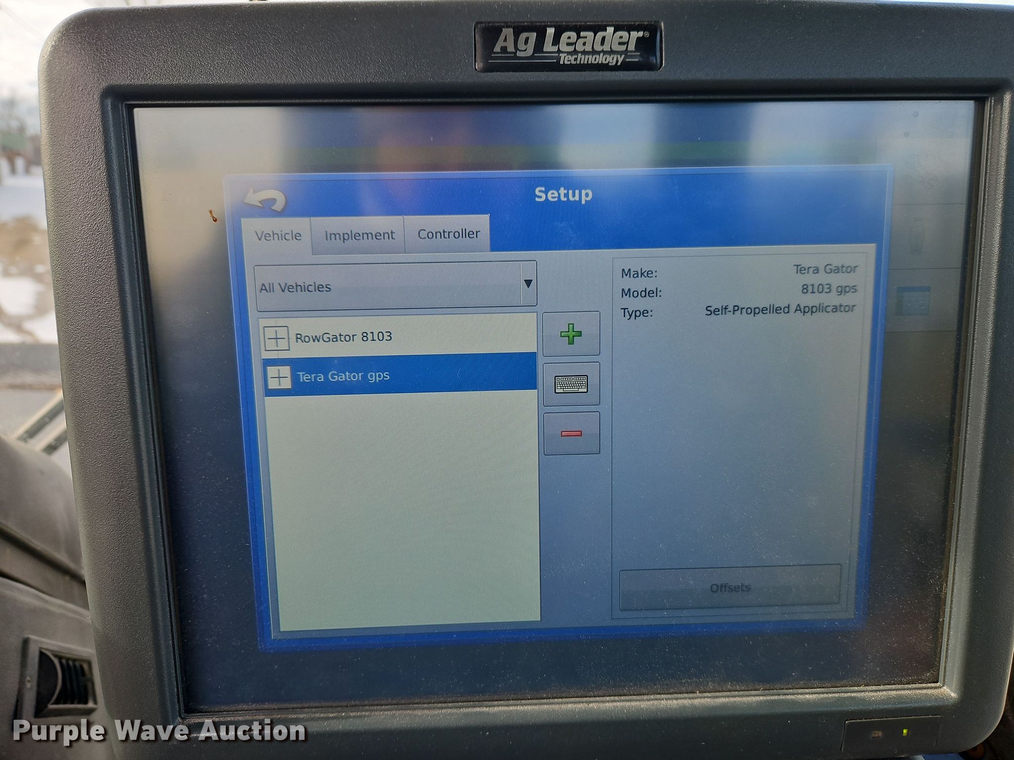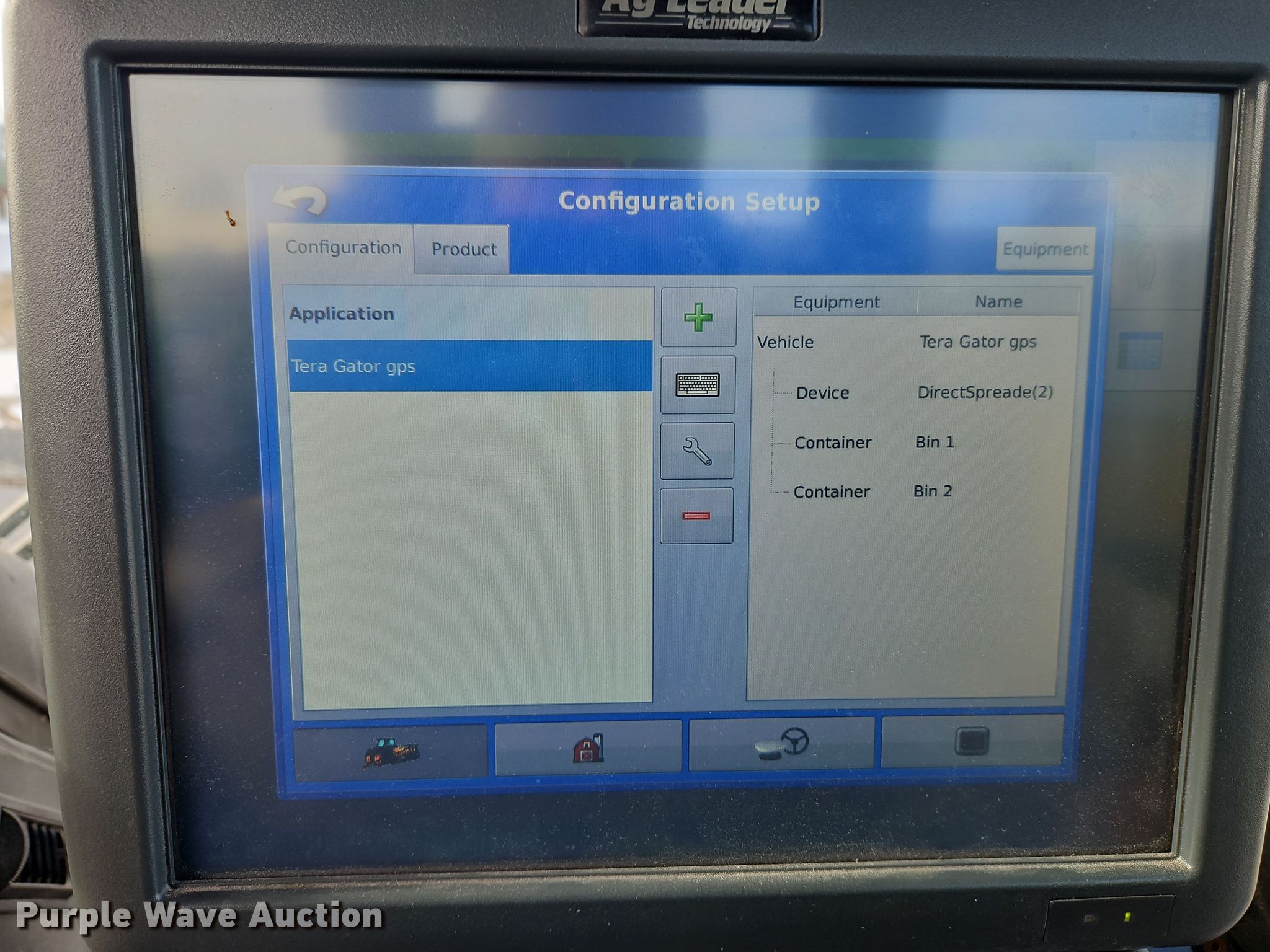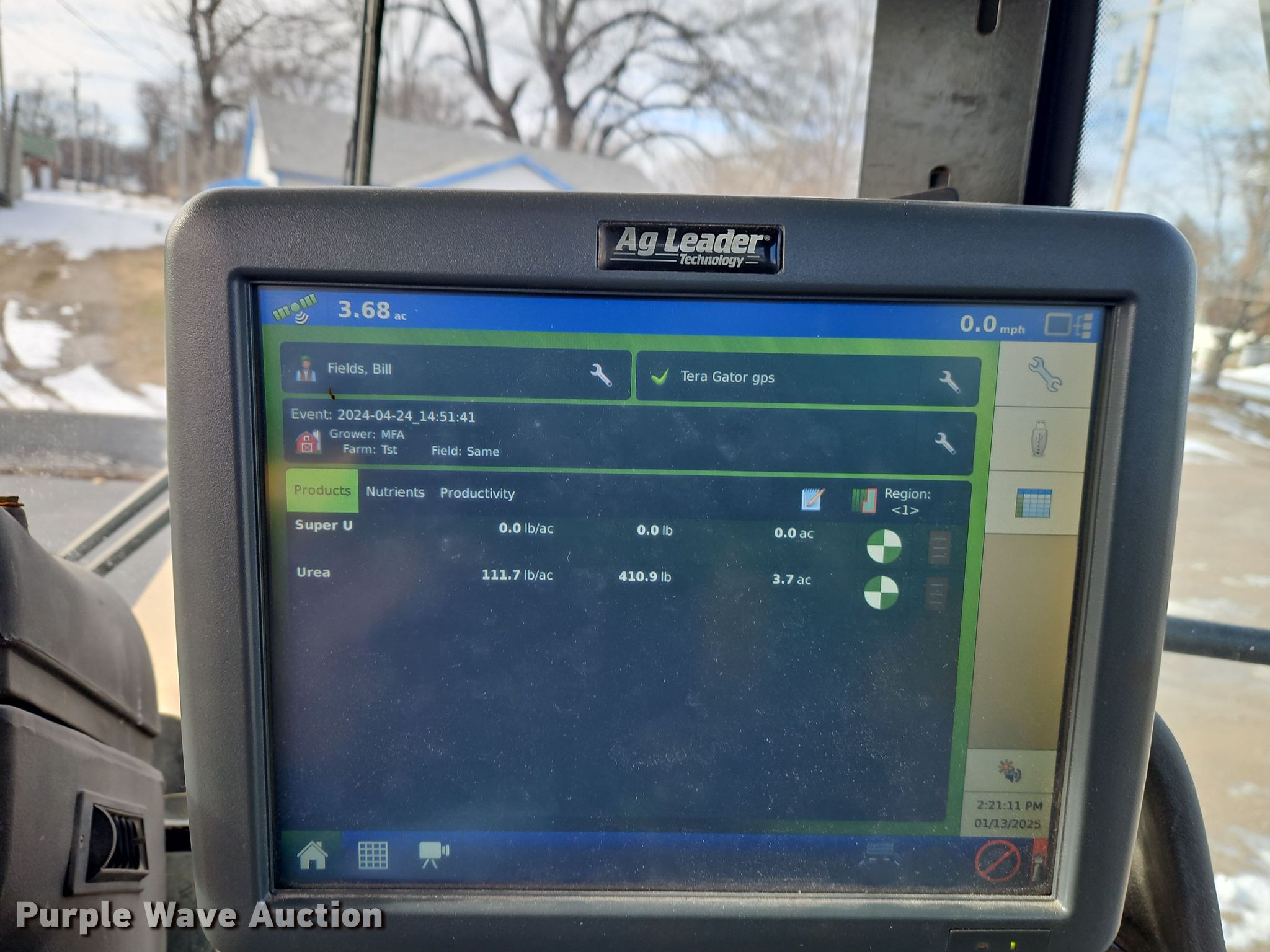2003 Terra Gator 8103 spreader. Miles: 85,150 on odometer, Engine hours: 8,378 on meter, Serial: 83104303. Engine Cylinders: 6, Fuel type: Diesel. Transmission Automatic. Operators station AC, Heat. Features Dry fertilizer spreader bed New Leader G4 L4000G4, Capacity: 10 tons, Length: 13', Stainless steel, Dual spinners, Conveyor belt Width: 24", Electronics GPS monitor Aggregate Leader, GPS receiver Ag Leader, Spray controls Ag Leader SC110, Auto steer, Ground radar. Tires Size: 66x43.00-25, Flotation tires. Notes Warning indicator: Check engine, Dead battery, Hydraulic oil leak. MFA Enterprises. Rich Hill, MO 64779