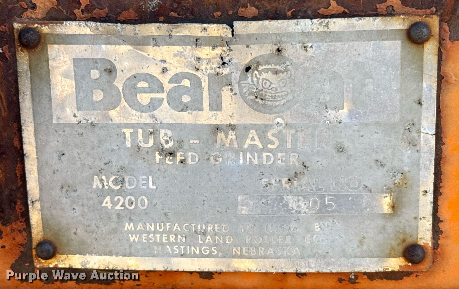 Purple Wave is selling a used Feed Mixer or Bale Processor in Kansas. This item is a Bear Cat 4200 tub grinder with the following: Serial: 605