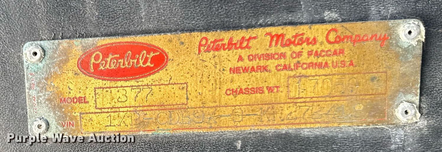 Purple Wave is selling a used Truck Chassis in Indiana. This item is a 1989 Peterbilt 377 truck cab and chassis with the following: Miles: 341,918 on odometer, VIN: 1XPCDB9X9KN272418