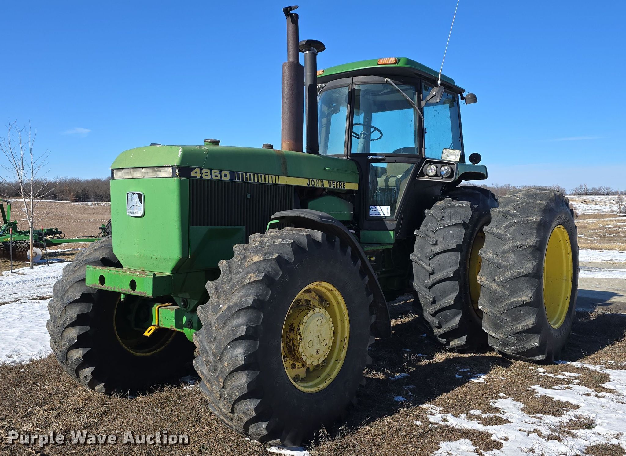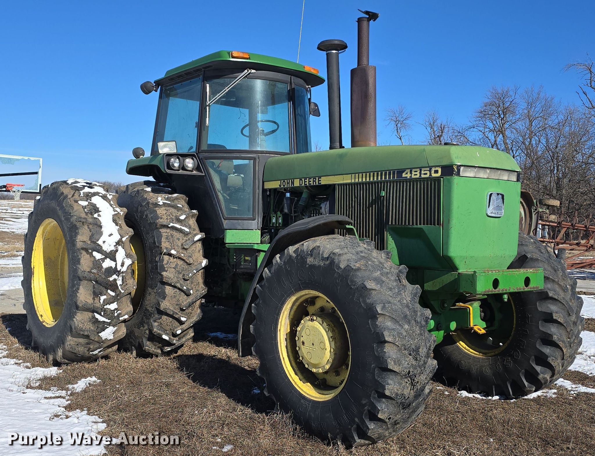 Purple Wave is selling a used Tractor in Missouri. This item is a 1983 John Deere 4850 MFWD tractor with the following: Hours: 4,323 on meter, Serial: RW4850P002170