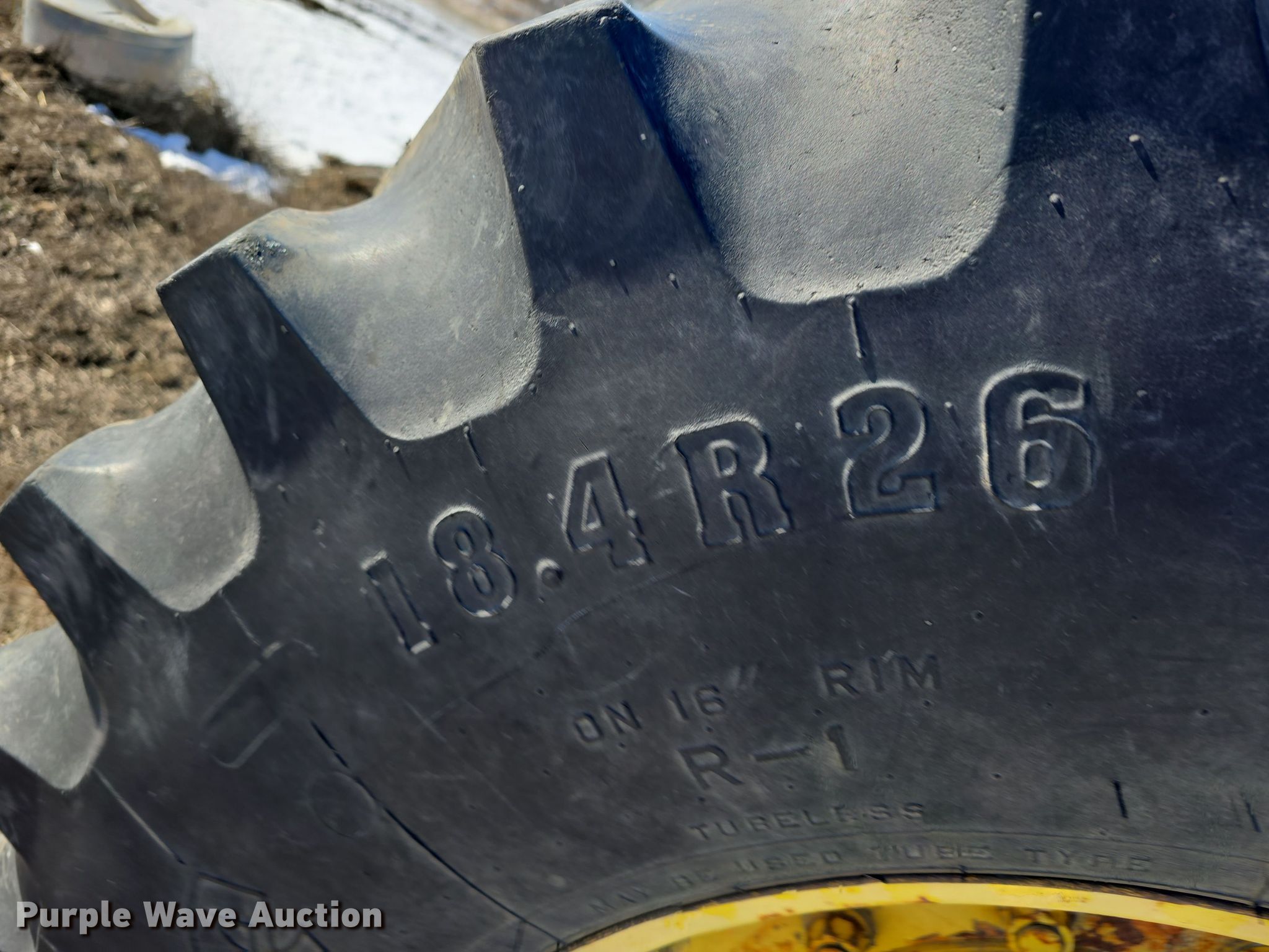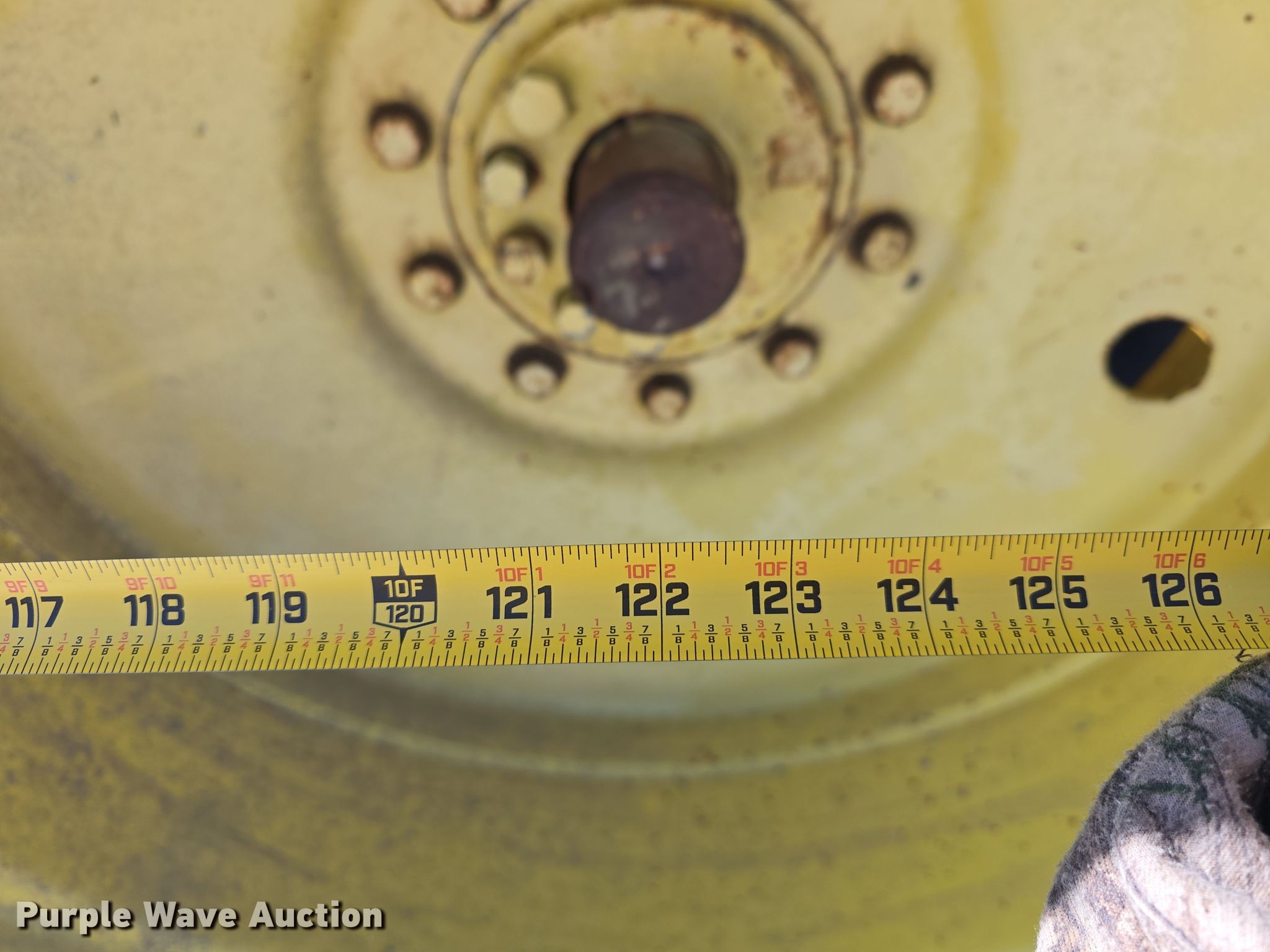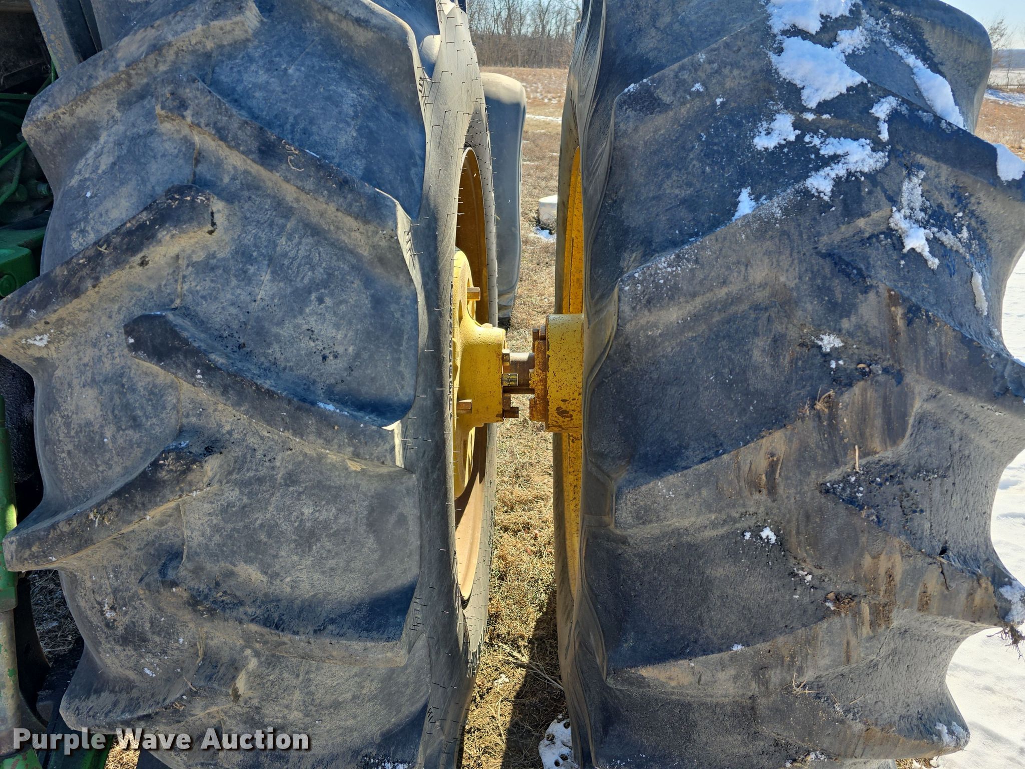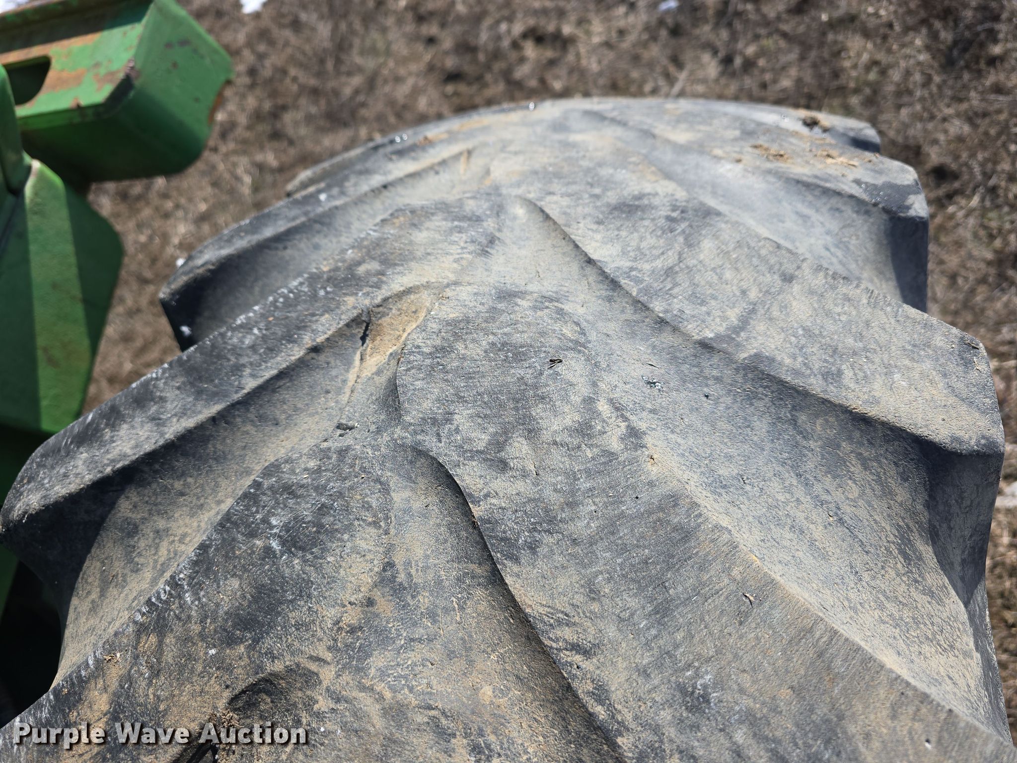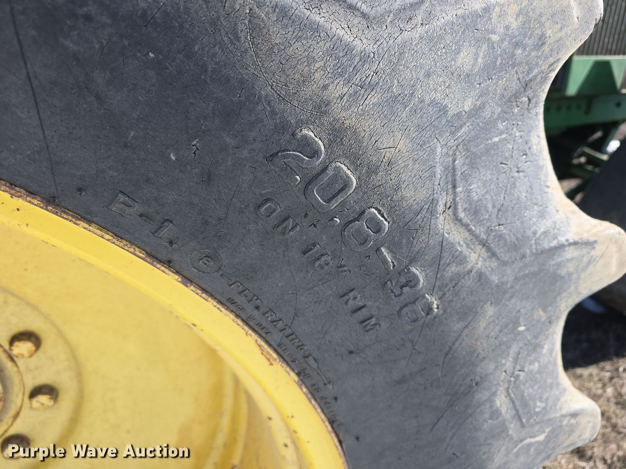 1983 John Deere 4850 MFWD tractor. Hours: 4,323 on meter, Serial: RW4850P002170. Engine John Deere, Cylinders: 6, Fuel type: Diesel. Transmission Powershift, 15F - 4R, Differential lock. Operators station AC, Heat. Features PTO: 540, Three point, Seven pin outlet, Hydraulic remote sets Rear: 3. Tires Front: 18.4R26, Rear: 20.8-38, Wheelbase: 122", Duals. Notes Fuel leak, Oil leak, Transmission issues. Pierce Sand. Stanberry, MO 64489