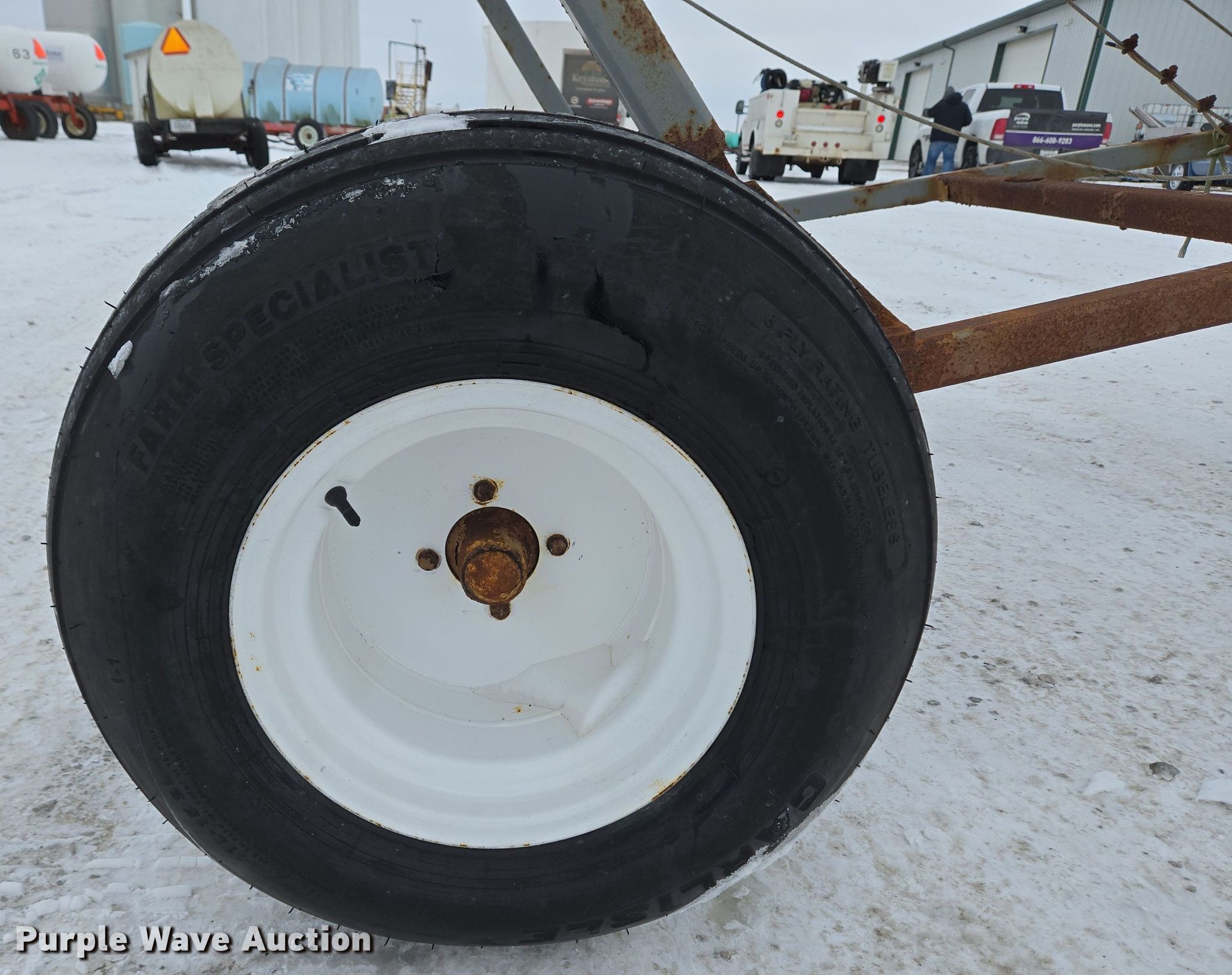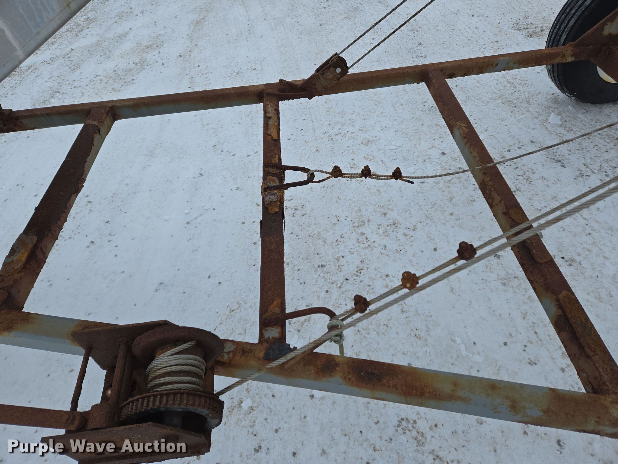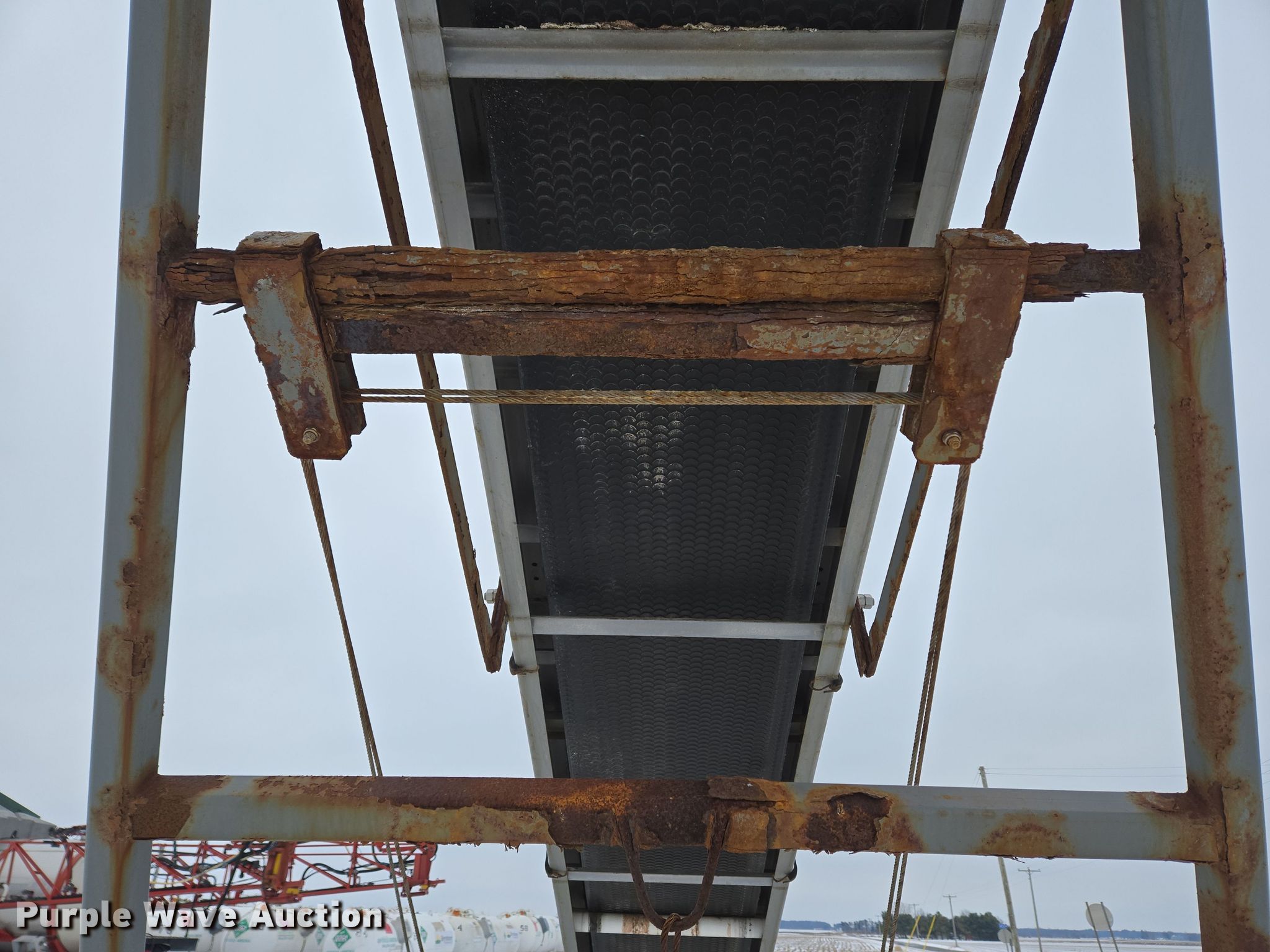 Kraus conveyor. Unit #: 110927A32. Electric Motor Phase: Three. Features 32' L x 2' W, Lift: Manual, Electric: Three phase. Tires Size: 11L-15SL. Keystone Cooperative. Francesville, IN 47946