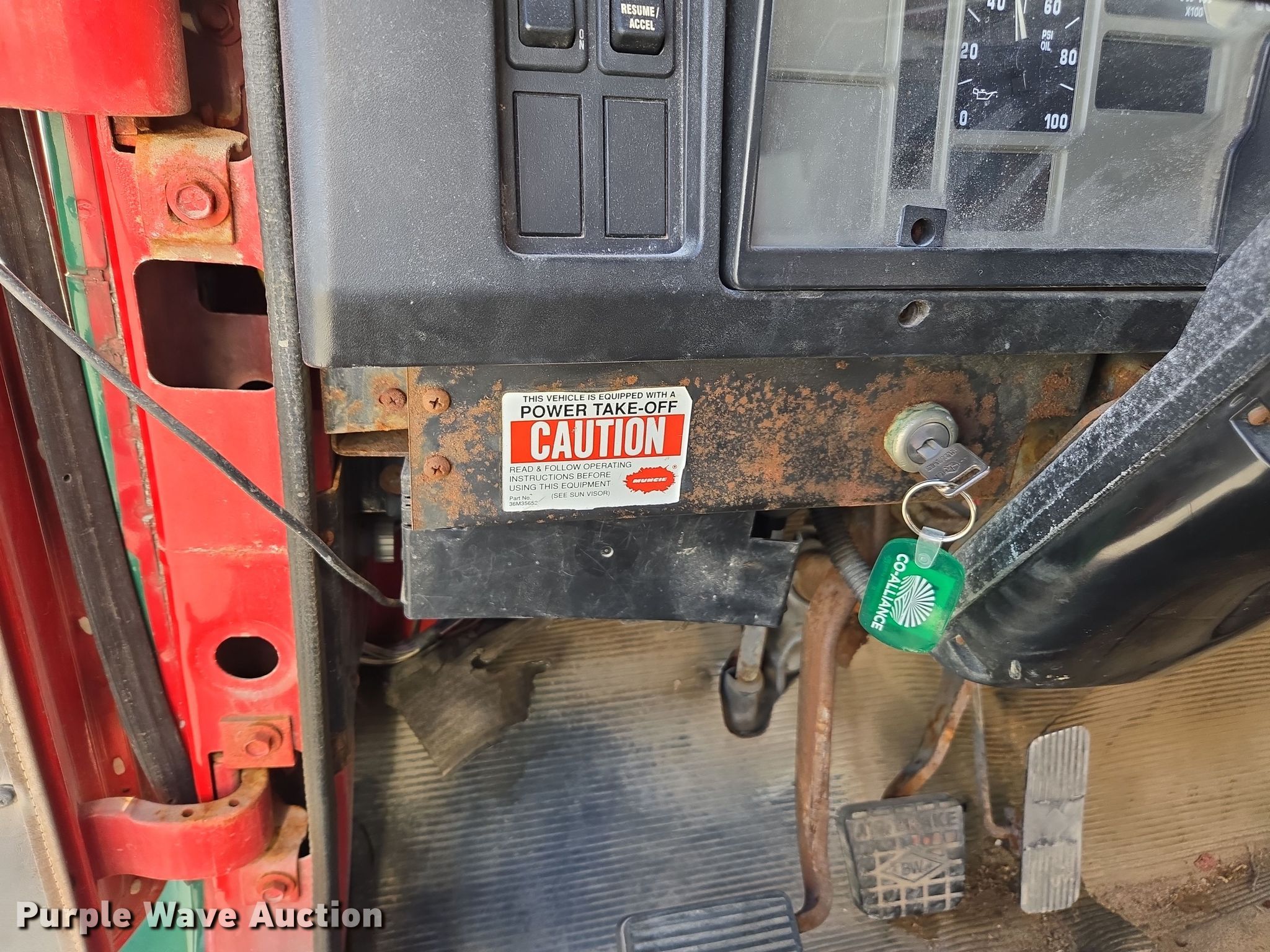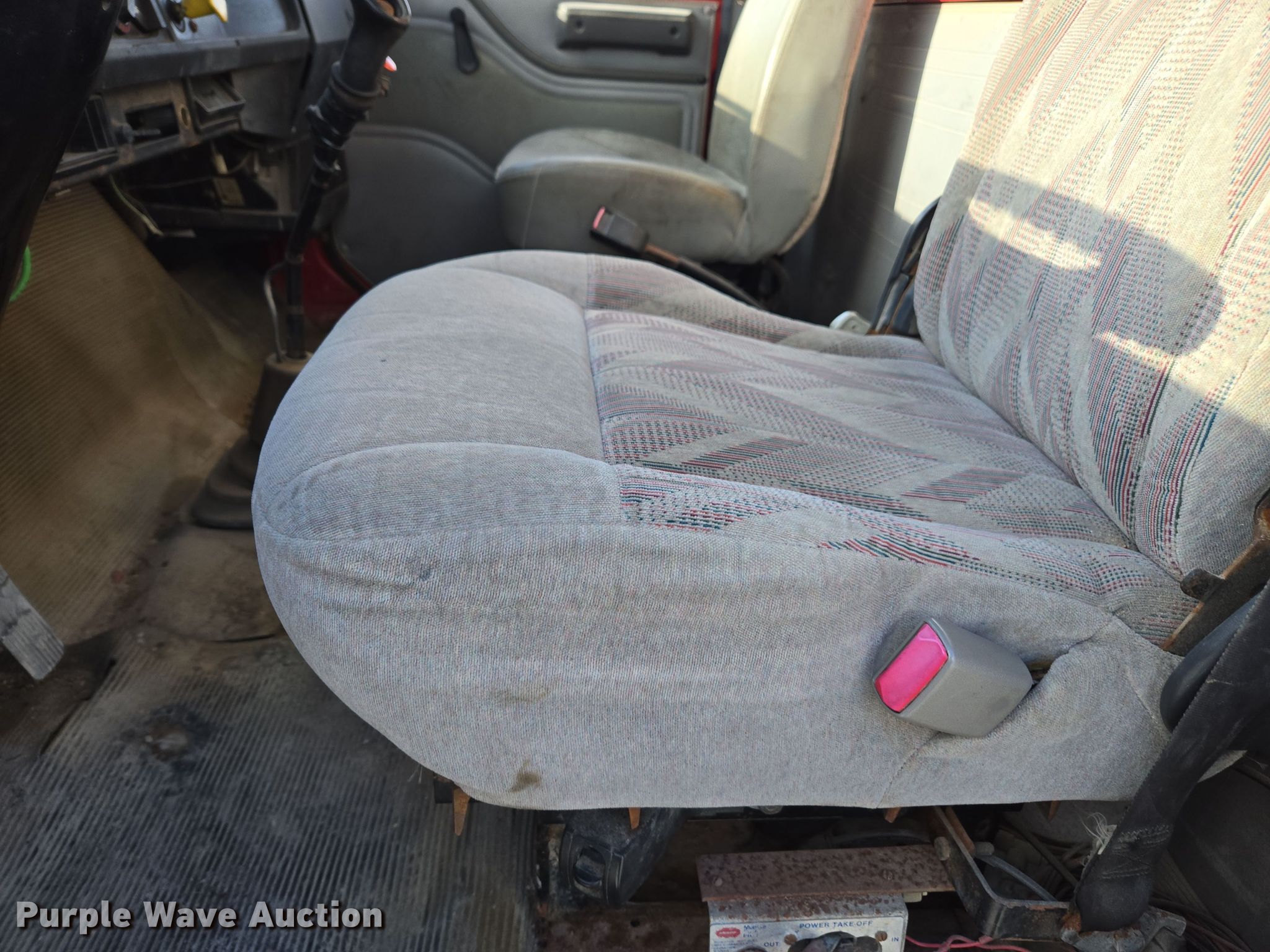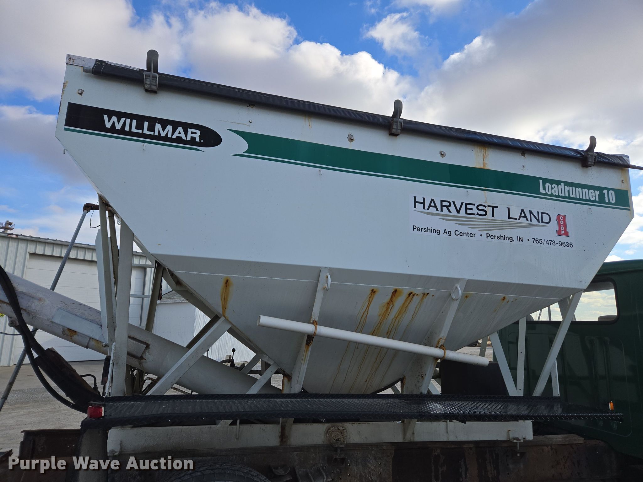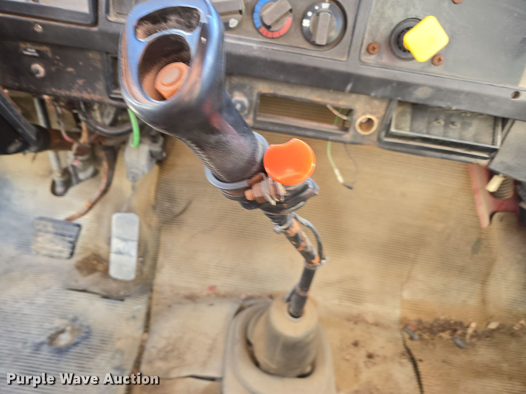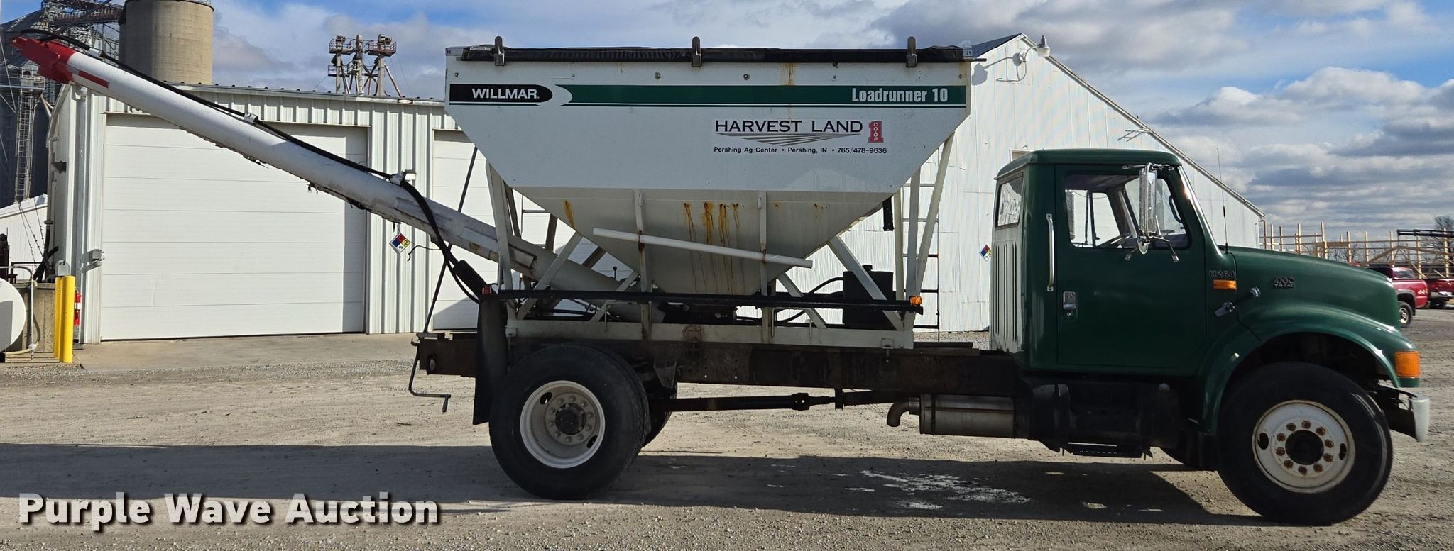 1997 International 4700 fertilizer delivery truck. Miles: 41,440 on odometer, VIN: 1HTSCABN8VH465698, Unit #: H264. Engine International T444E, Displacement: 7.3L, Cylinders: 8, Fuel type: Diesel. Transmission Spicer, Manual, Speed: 5, plus 2. Chassis Axles: Single, Suspension: Spring, Brakes: Air, PTO. Interior AC, Heat, Cruise control. Features Delivery bed Willmar Load Runner 10, 12' L, Capacity: 10 tons, Compartments: 2, Discharge auger Diameter: 9", Length: 14', Rear, Tarp, Ground controls. Tires Size: 11R22.5. Indiana title. Title distribution may be delayed up to 30 days from verification of funds. Keystone Cooperative. Eldorado, OH 45321