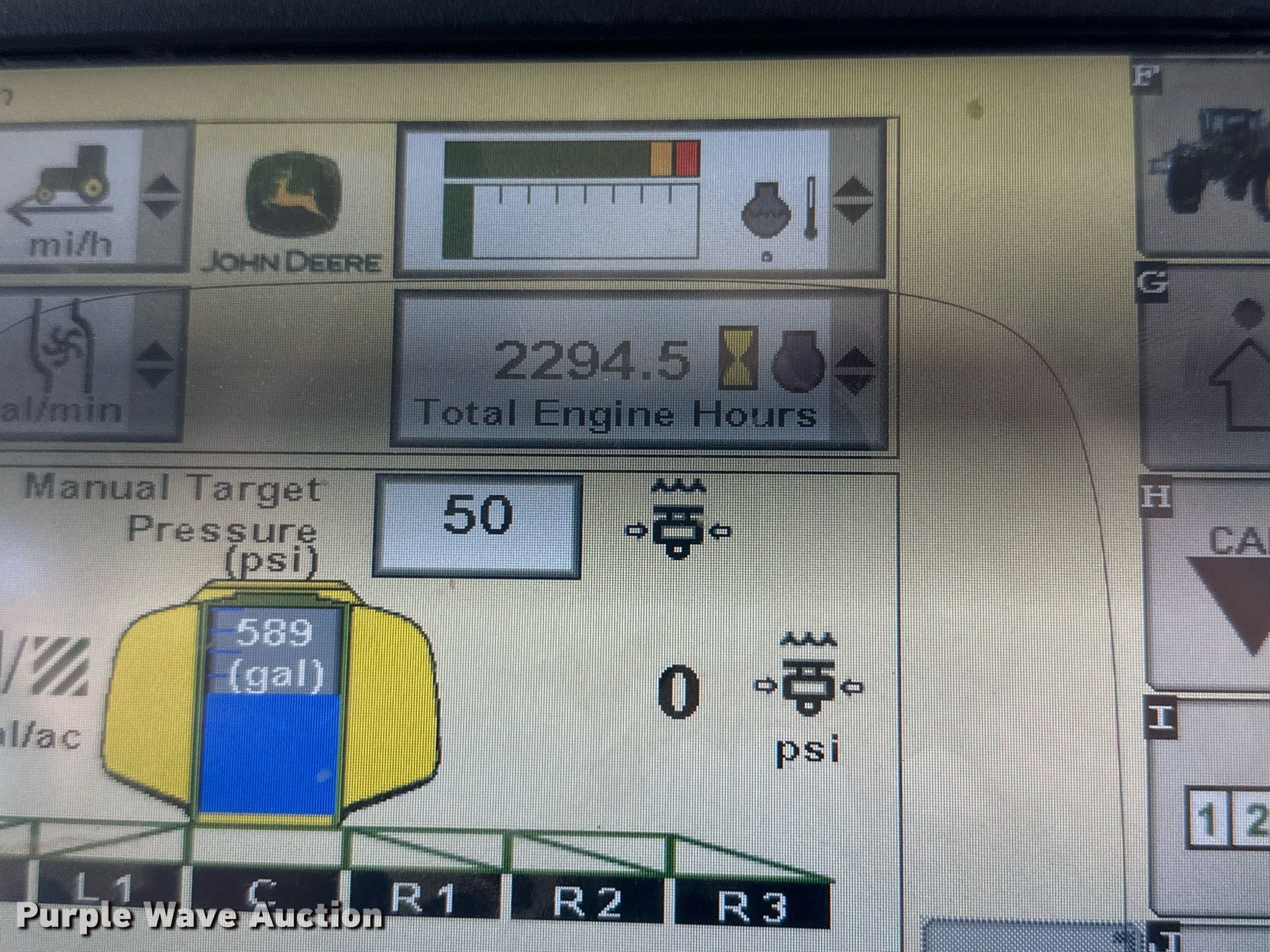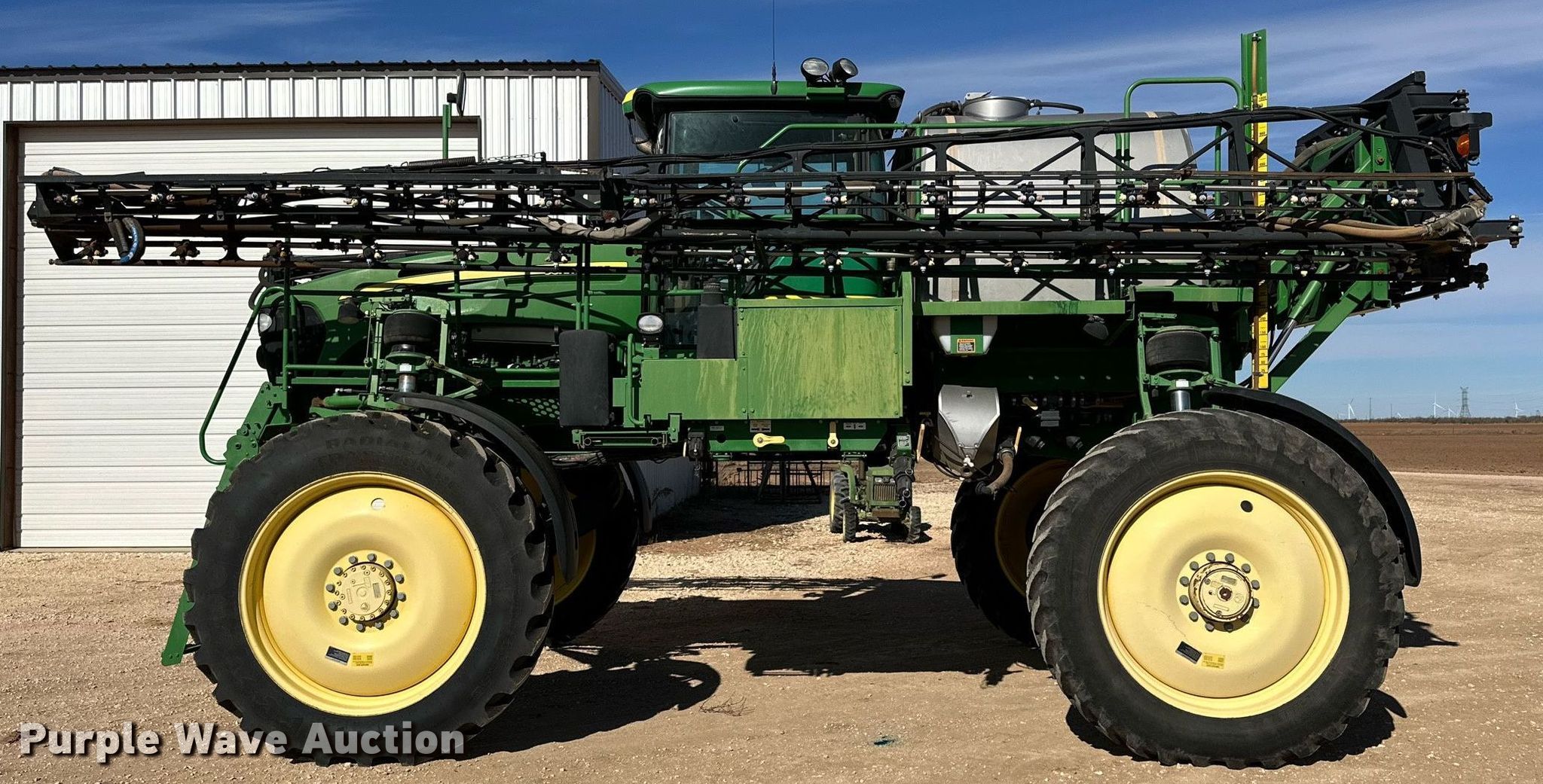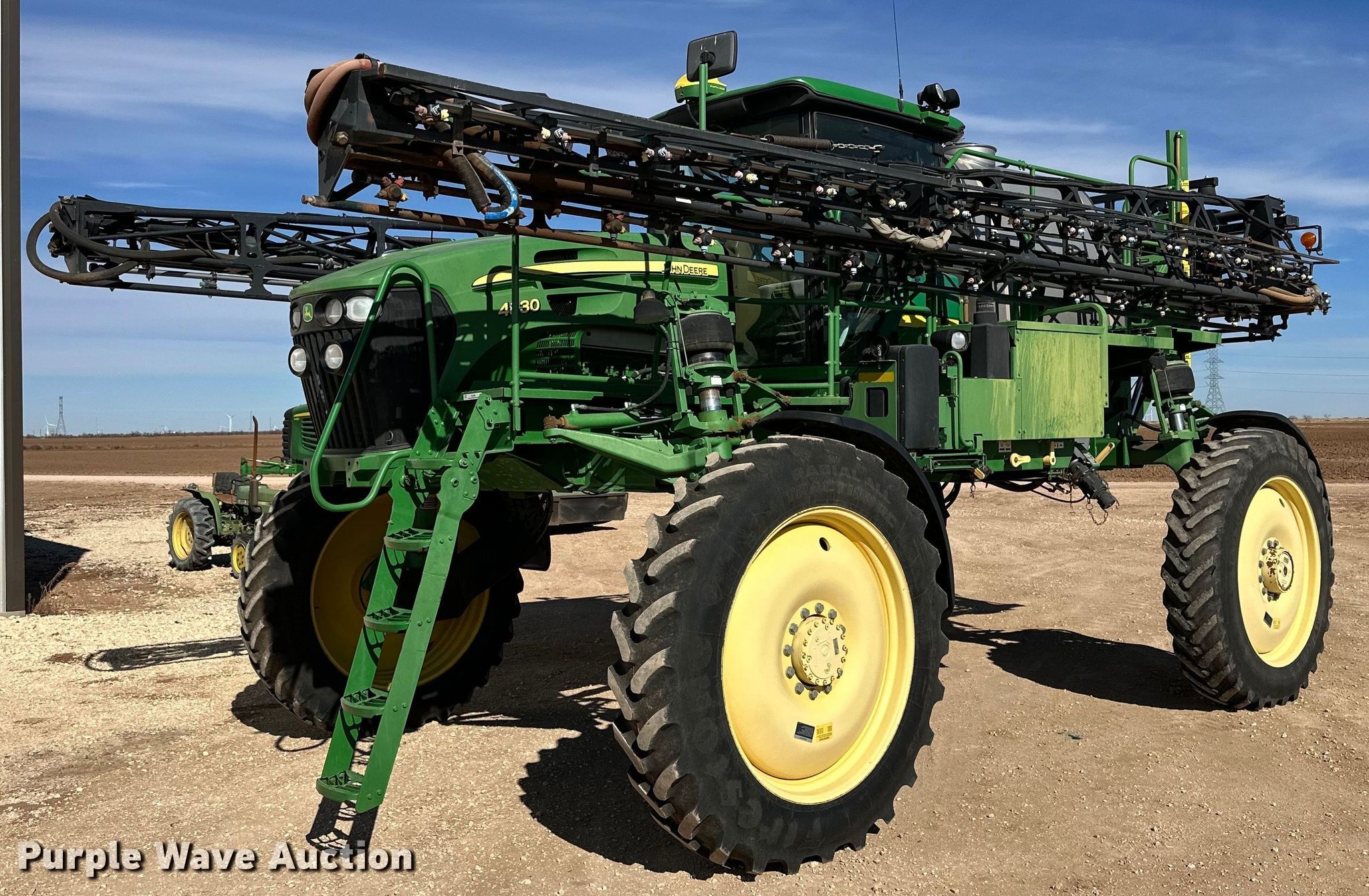 Purple Wave is selling a used Applicator Self Propelled in Texas. This item is a 2012 John Deere 4830 sprayer with the following: Engine hours: 2,295 on meter, Spray hours: 2,000 on meter, Serial: 1N04830XEB0018489