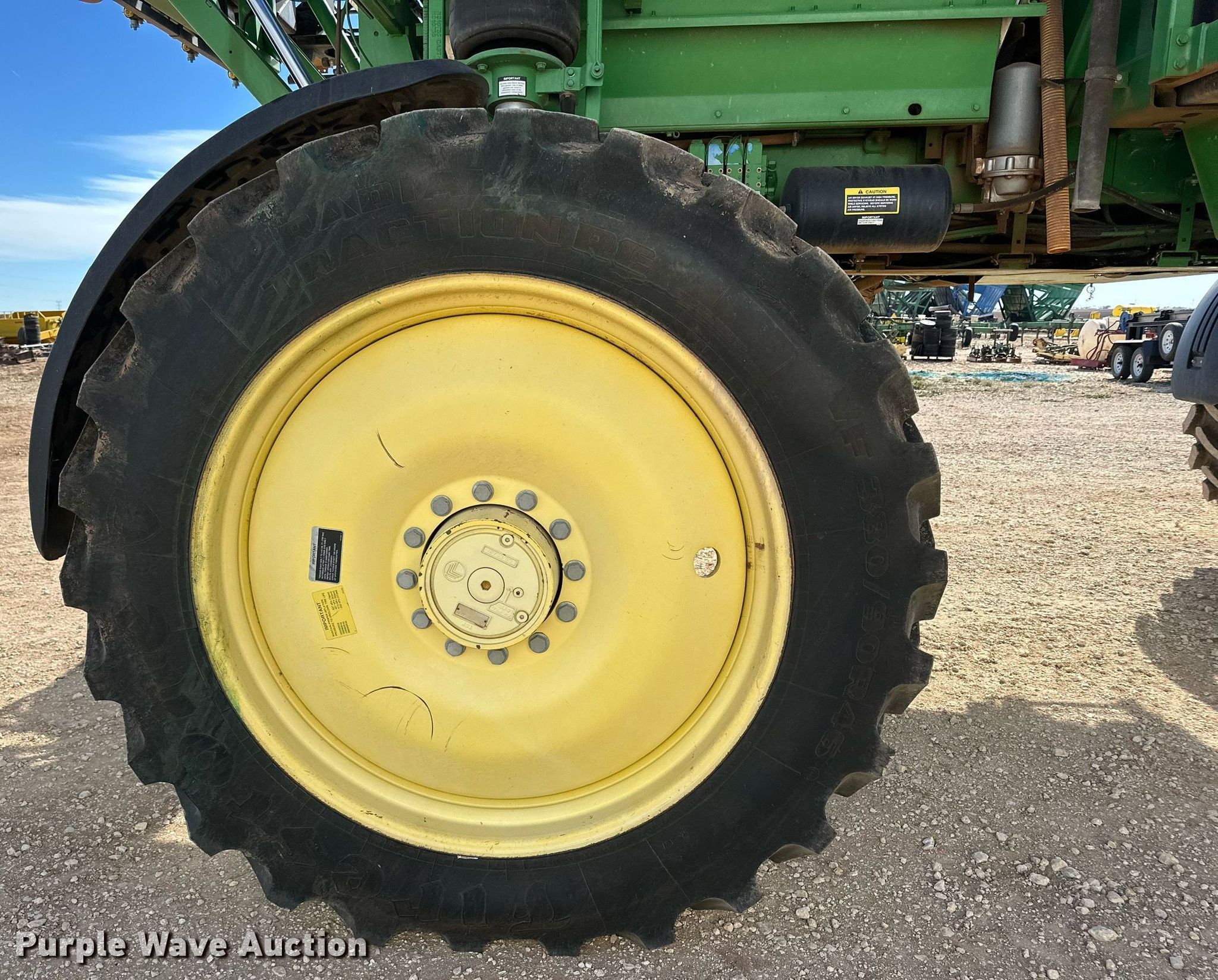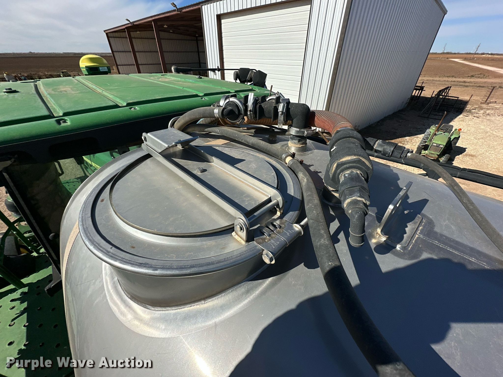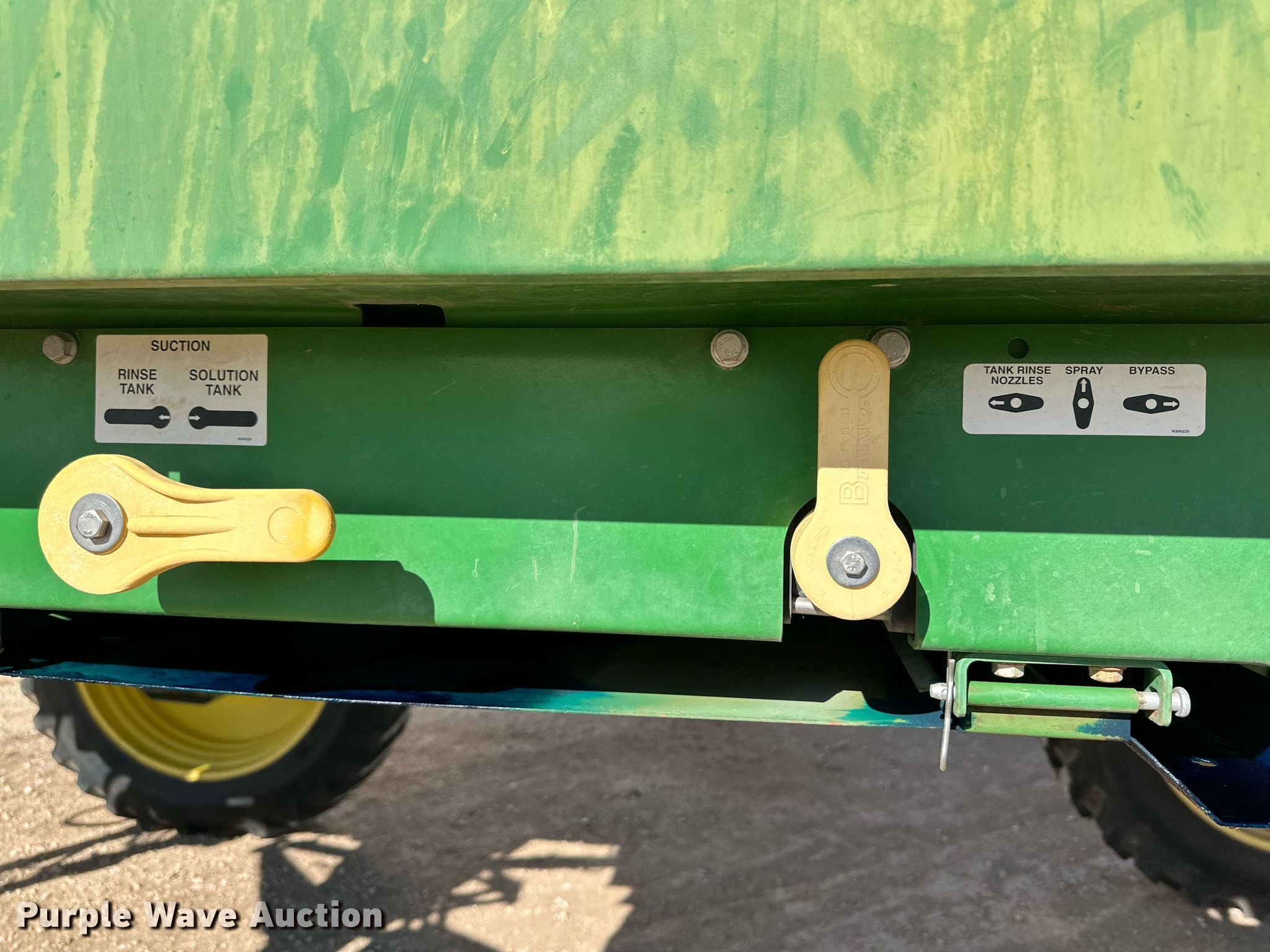 2012 John Deere 4830 sprayer. Engine hours: 2,295 on meter, Spray hours: 2,000 on meter, Serial: 1N04830XEB0018489. Engine John Deere, Cylinders: 6, Fuel type: Diesel. Transmission Hydrostatic. Chassis Hydraulic axle width adjust. Operators station AC, Heat. Features Hydraulic ladder, Belly shield, Solution tank Capacity: 1,000 gallons, Type: Stainless Steel, Chemical eductor Type: Stainless Steel, Rinse tank, Clean water tank, Boom Width: 100', Sections: 5, Hydraulic boom fold, Hydraulic height control, Nozzle Spacing: 20", Nozzle bodies: 5-way.. Tires Size: 380/90R46, Row crop tires. Notes Wheel spacers not included.. Landon Wegner Farms. Big Spring, TX 79720
