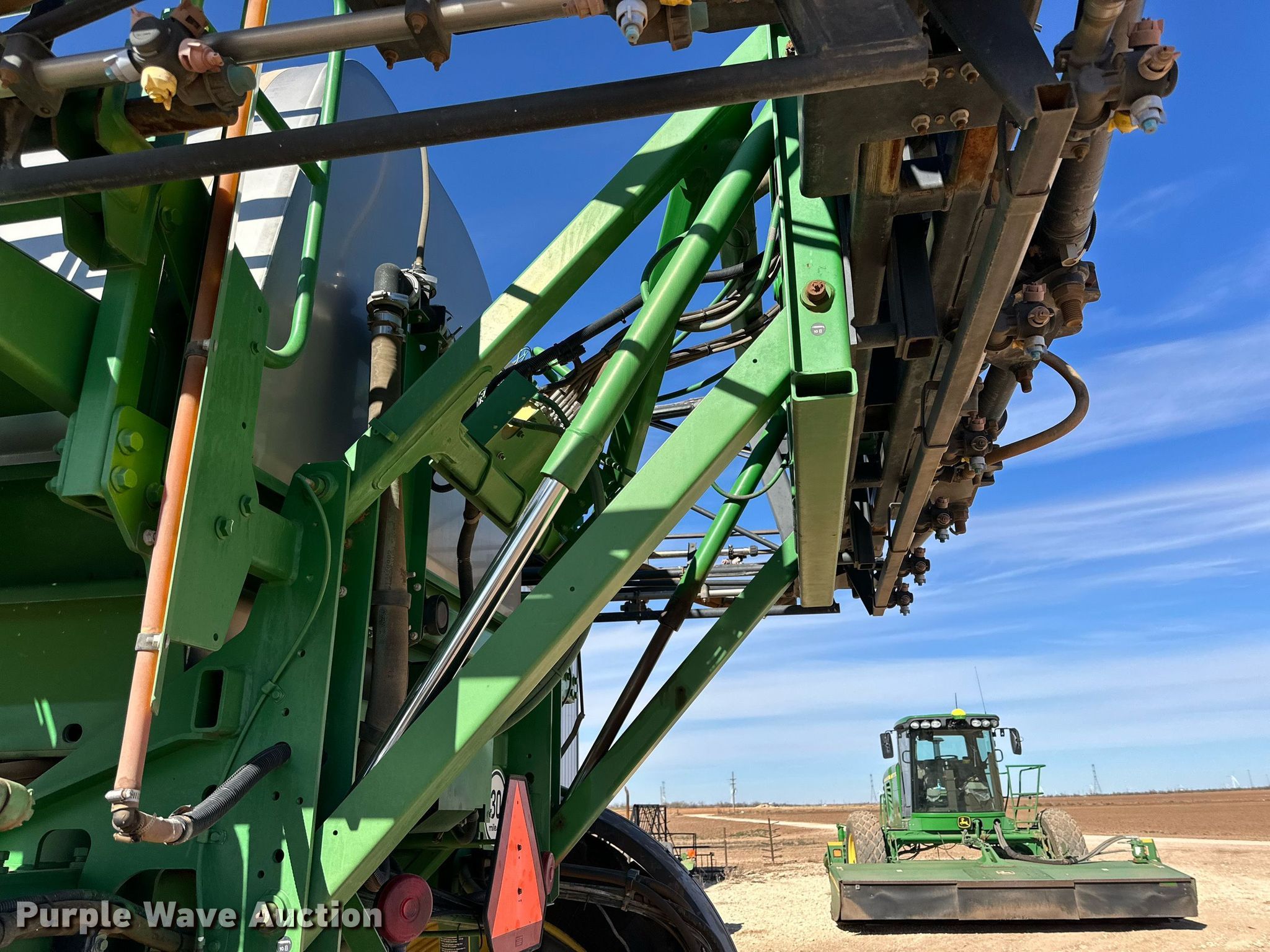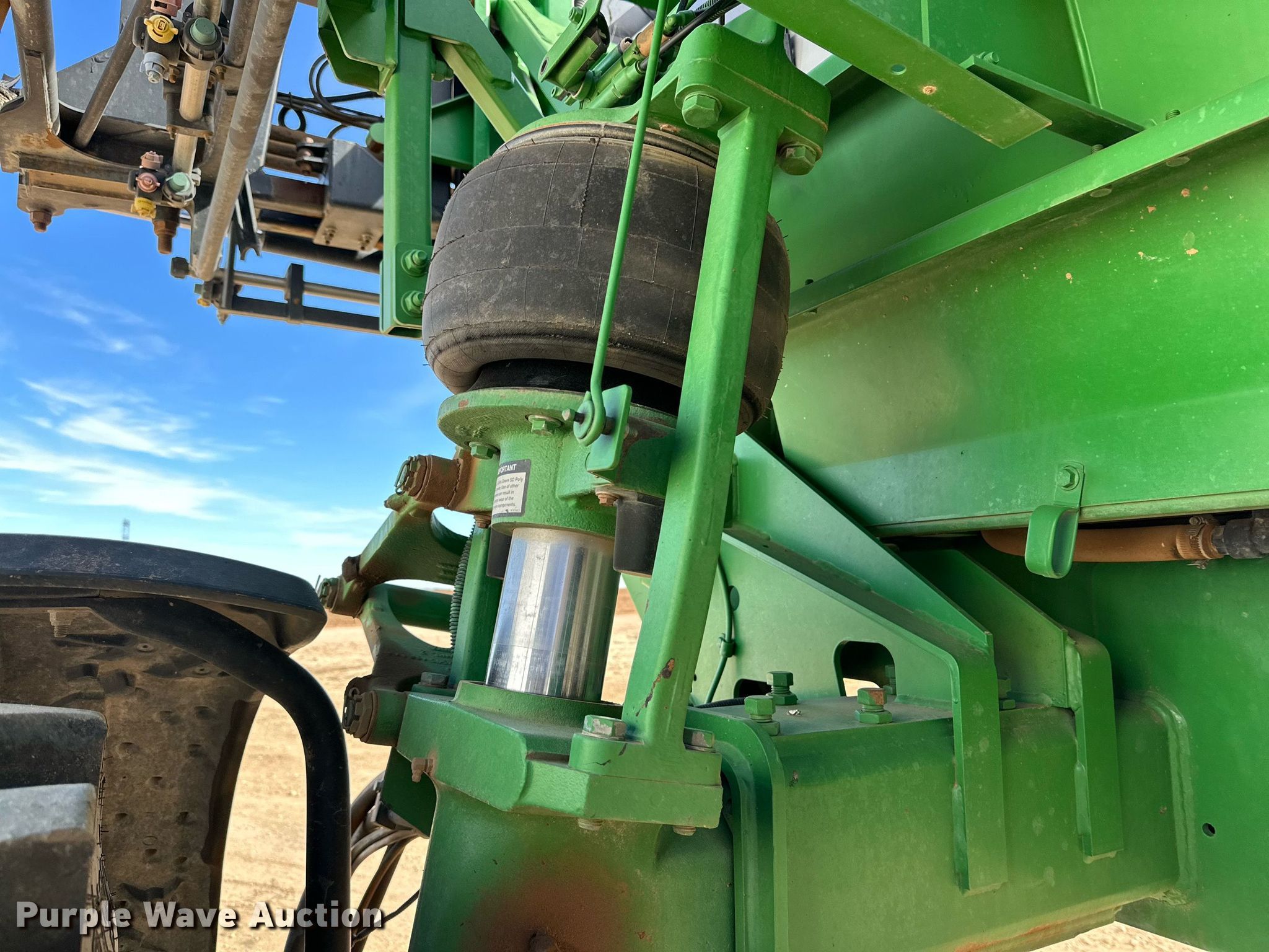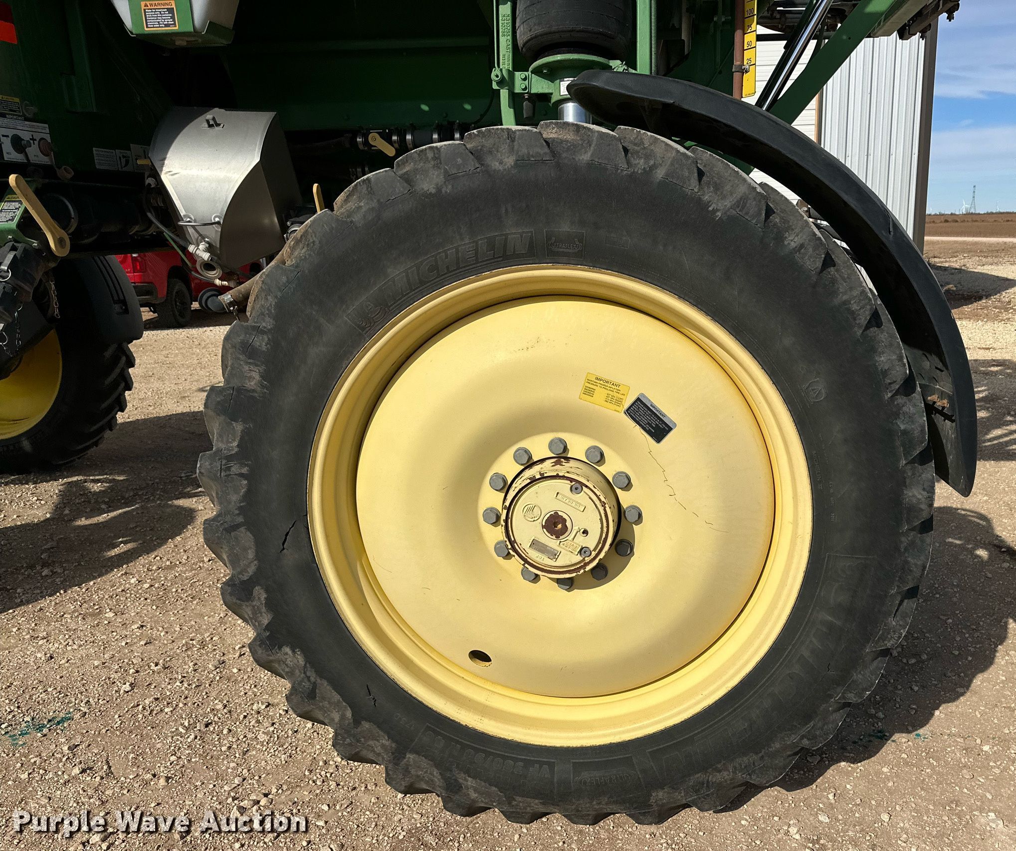 2012 John Deere 4830 sprayer. Engine hours: 2,295 on meter, Spray hours: 2,000 on meter, Serial: 1N04830XEB0018489. Engine John Deere, Cylinders: 6, Fuel type: Diesel. Transmission Hydrostatic. Chassis Hydraulic axle width adjust. Operators station AC, Heat. Features Hydraulic ladder, Belly shield, Solution tank Capacity: 1,000 gallons, Type: Stainless Steel, Chemical eductor Type: Stainless Steel, Rinse tank, Clean water tank, Boom Width: 100', Sections: 5, Hydraulic boom fold, Hydraulic height control, Nozzle Spacing: 20", Nozzle bodies: 5-way.. Tires Size: 380/90R46, Row crop tires. Notes Wheel spacers not included.. Landon Wegner Farms. Big Spring, TX 79720