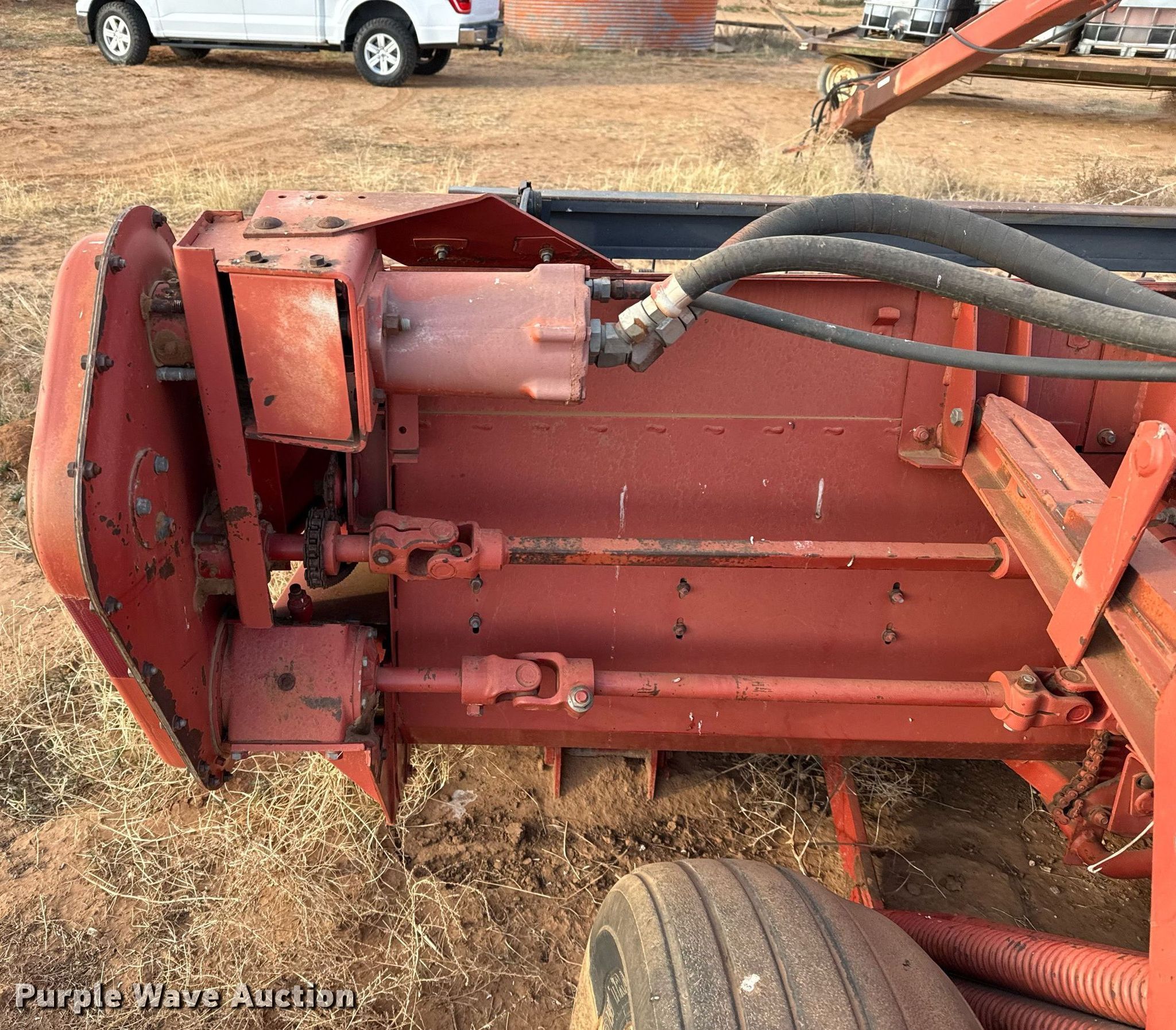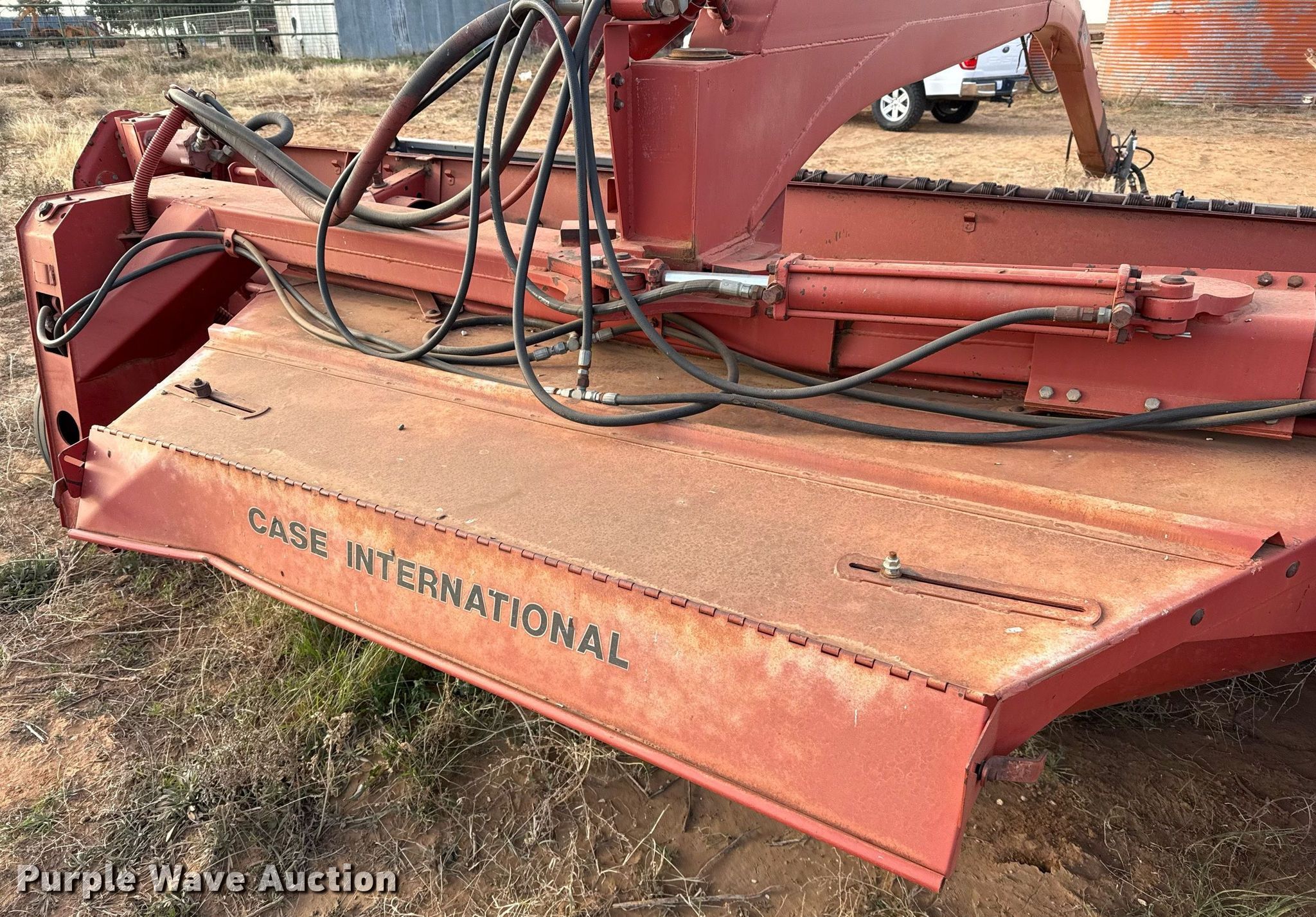 Case IH 8380T swather / windrower. Serial: CFH0087300. Features Hydraulic PTO pump, Center pivot, Hitch Draw bar, Head Sickle, Width: 17', Hydraulic head tilt, Conditioners: Rubber/ steel. Tires Size: 12.5L-15. Notes Bent frame. Big Spring, TX 79720