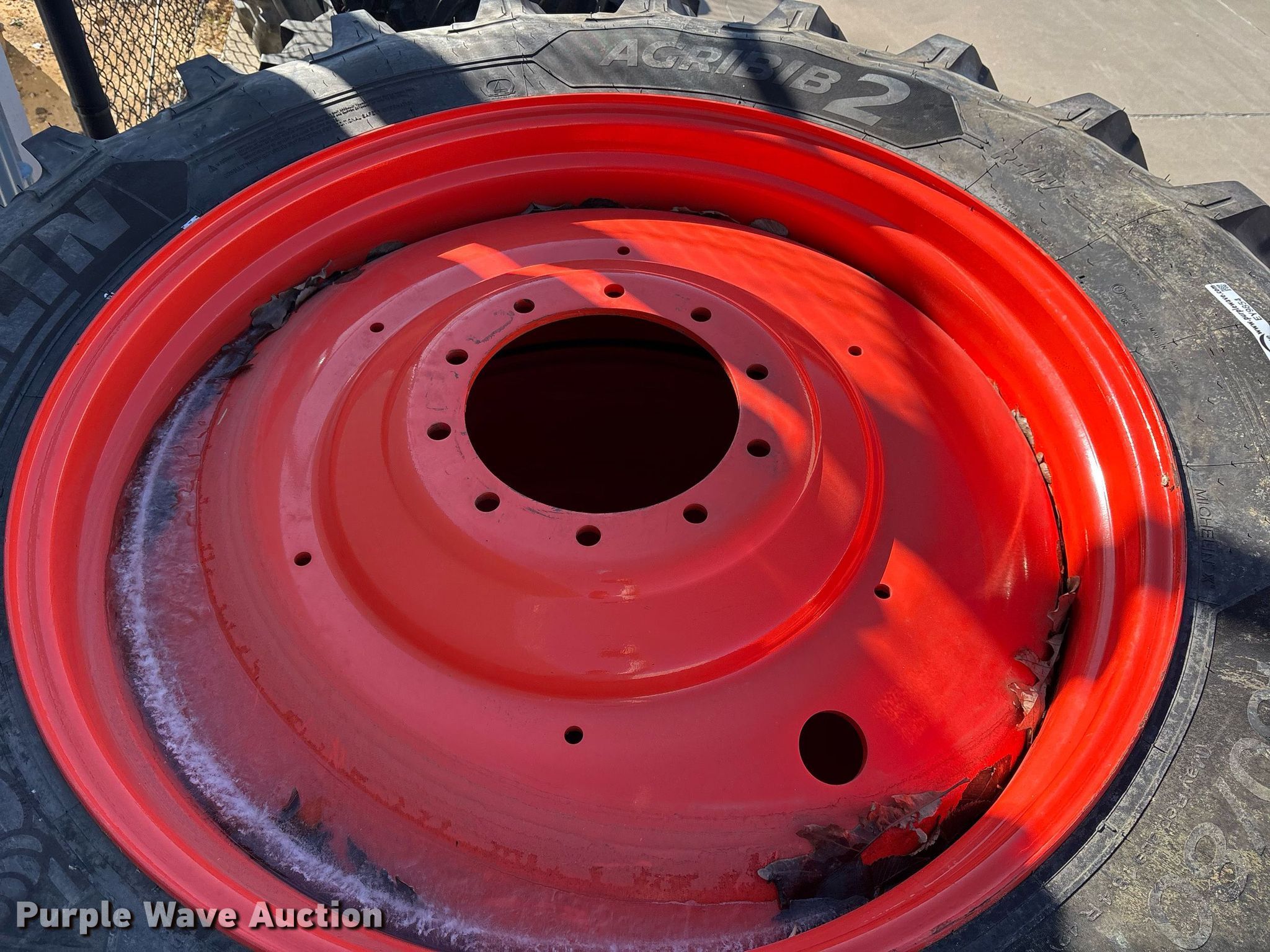 Purple Wave is selling a used Industrial Tires or Tracks in Texas. This item is a (2) Michelin 480/80R42 tractor tires and wheels with the following: Ten lug wheels