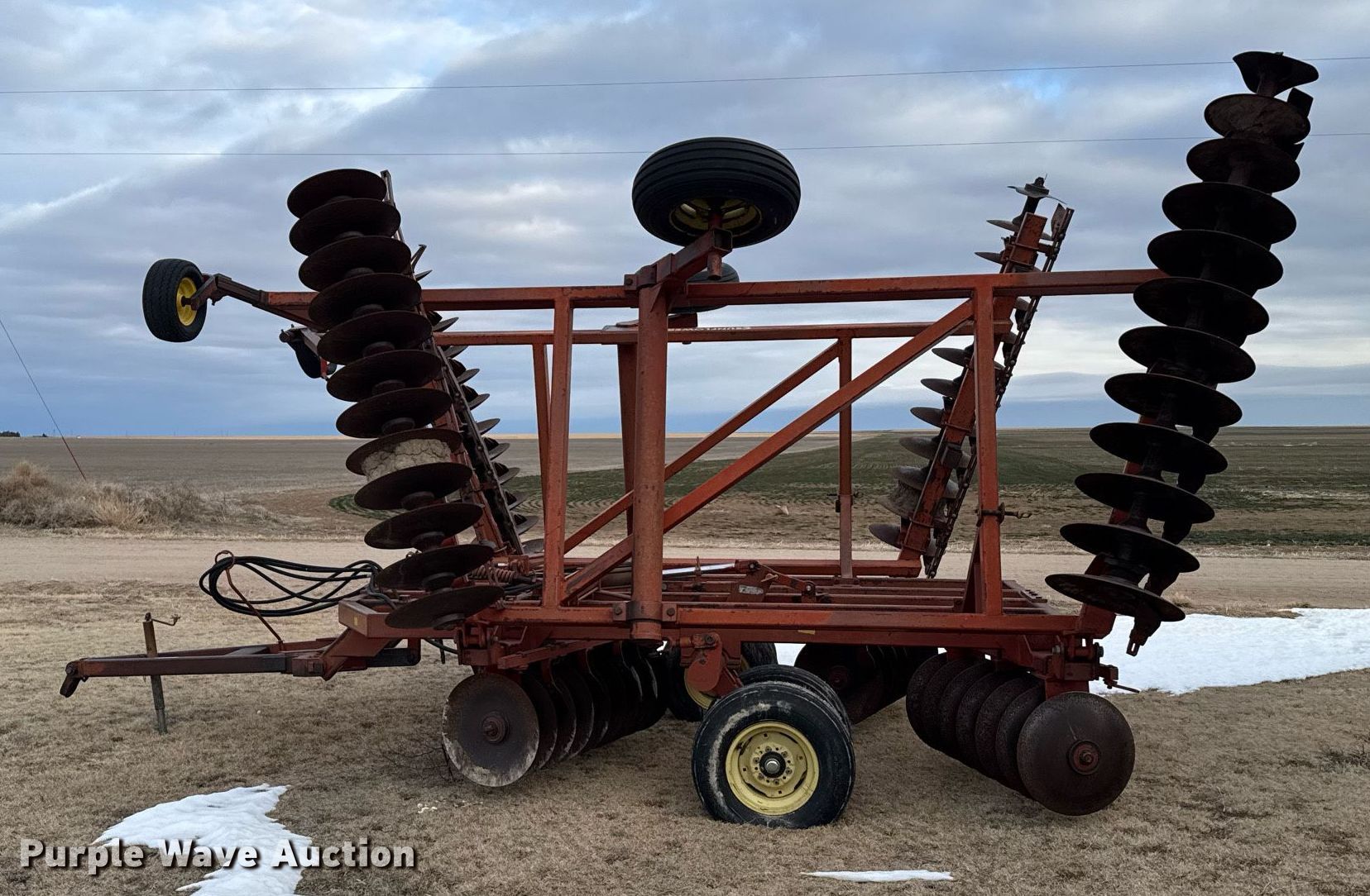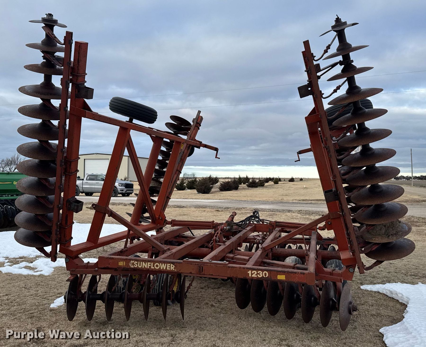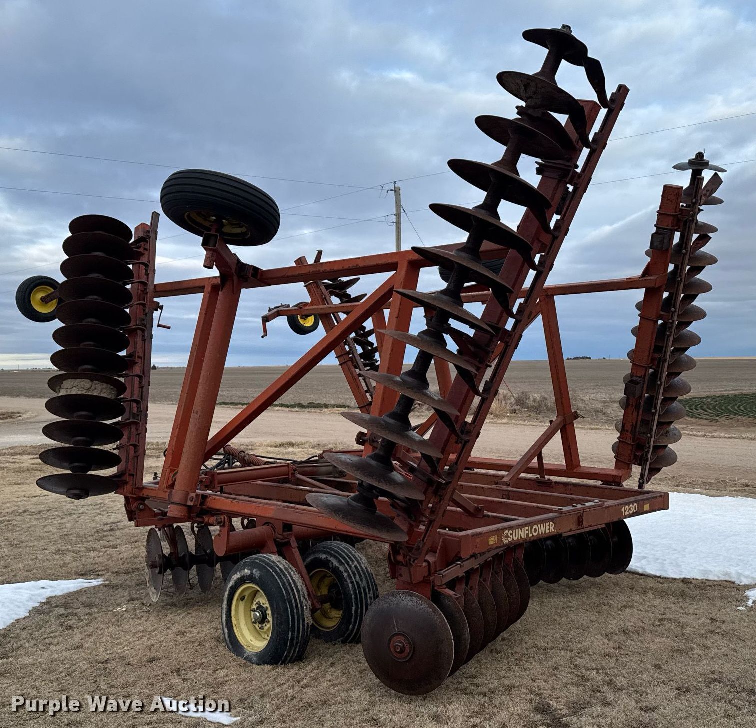 Purple Wave is selling a used Disk in Kansas. This item is a Sunflower 81TA-27 double off-set disk with the following: Overall width: 27', Serial: 2354
