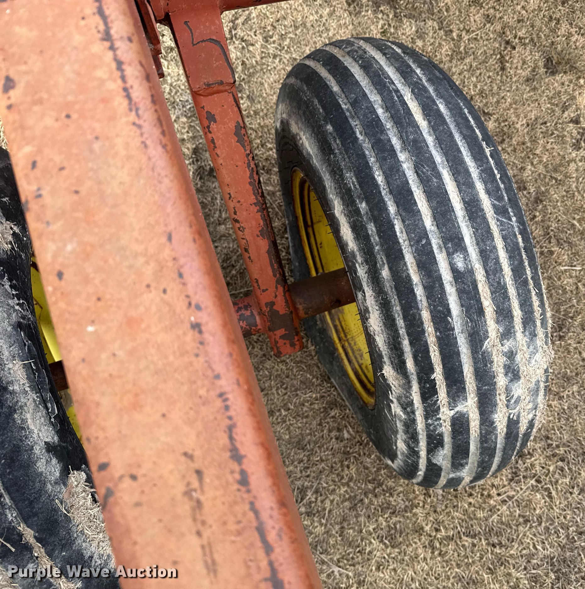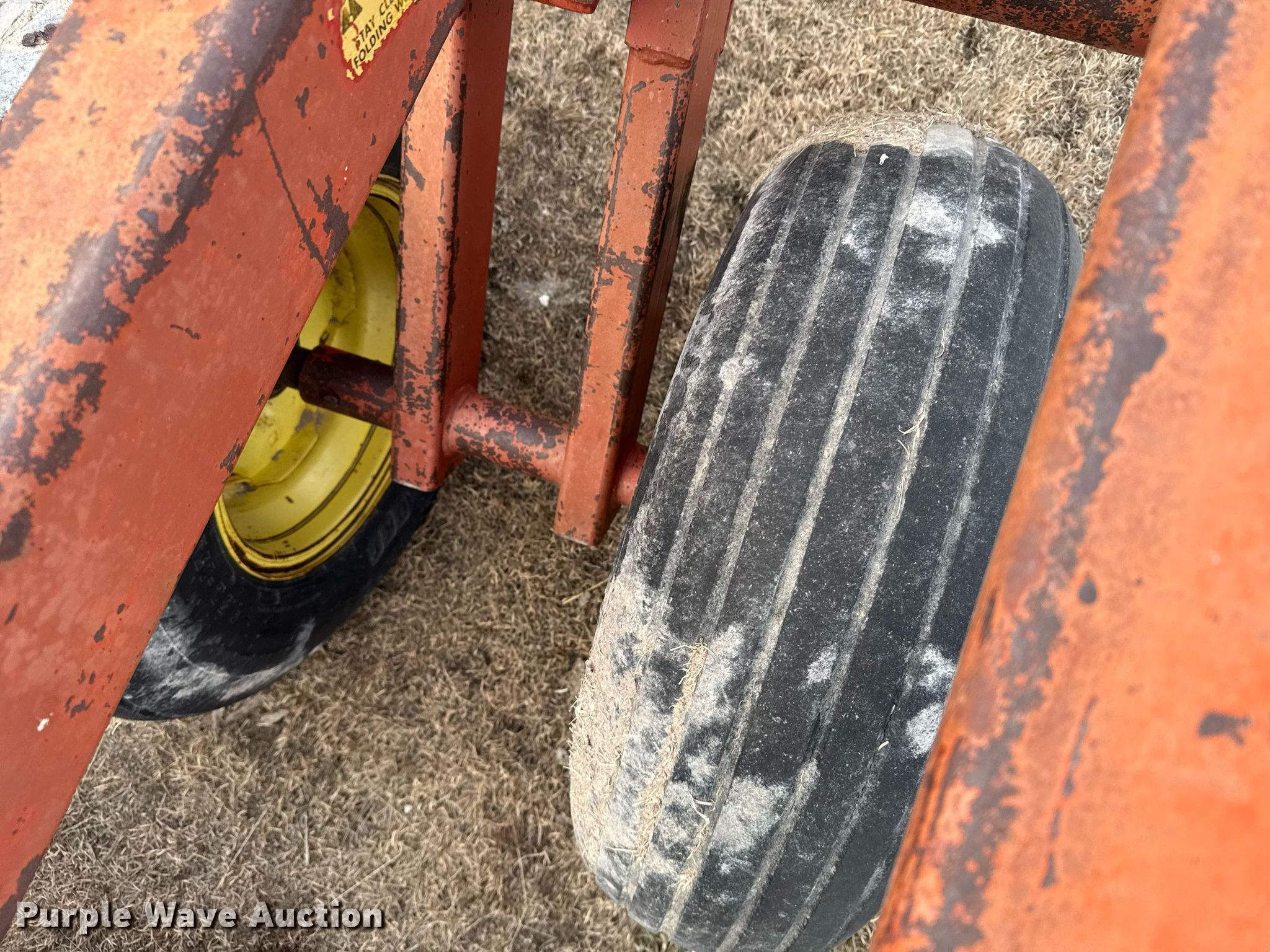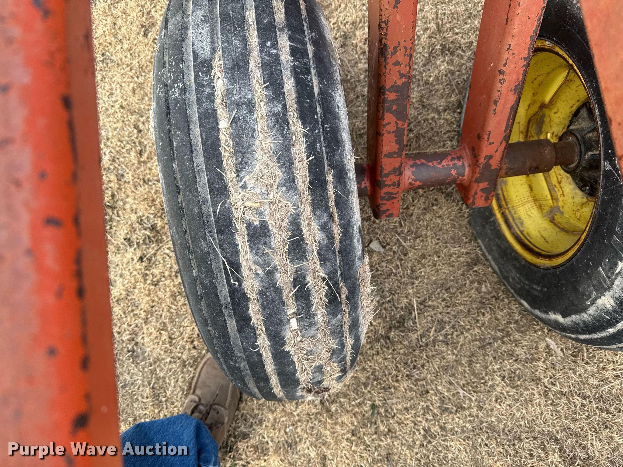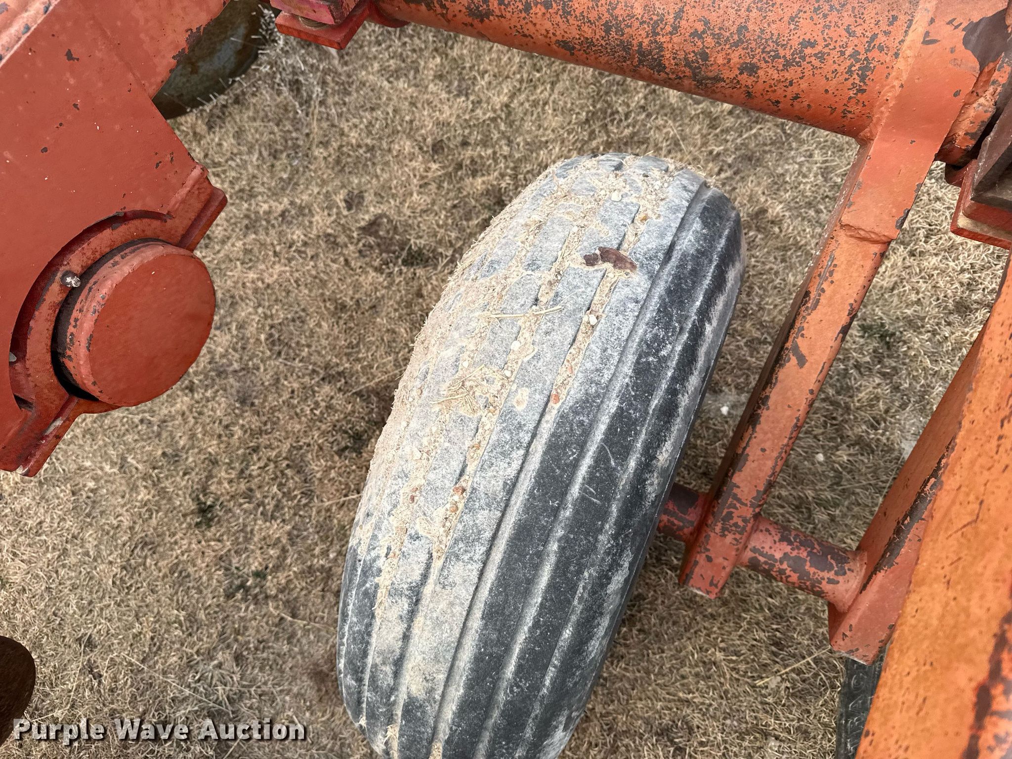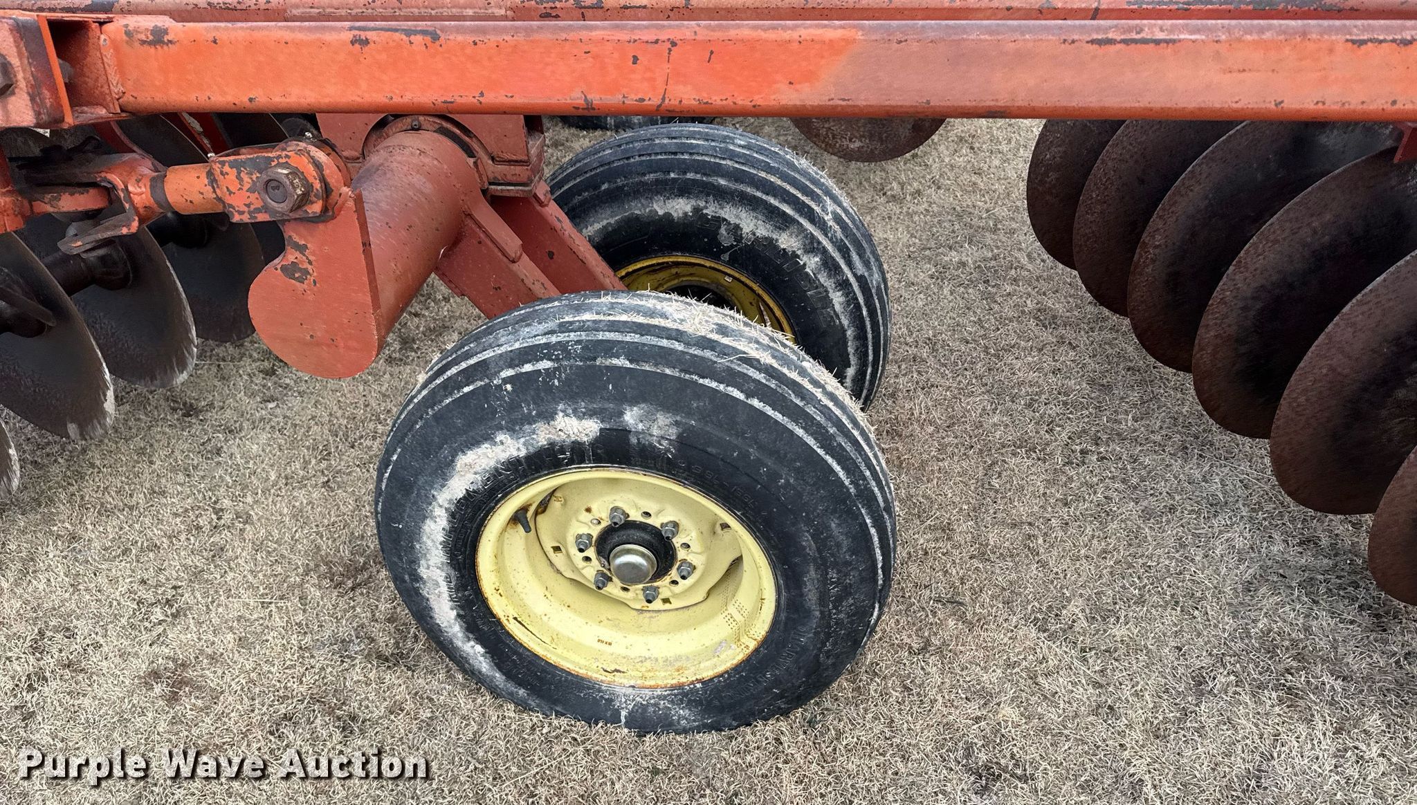 Sunflower 81TA-27 double off-set disk. Overall width: 27', Serial: 2354. Features Front blades Diameter: 21", Spacing: 10", Rear blades Diameter: 21", Spacing: 10", Disk scrapers, Operation Hydraulic lift, Hydraulic fold, Leveler: Manual. Tires Tire size: 9.5-15SL, Gauge wheels Size: 16.5x6.5-8. Ransom, KS 67572