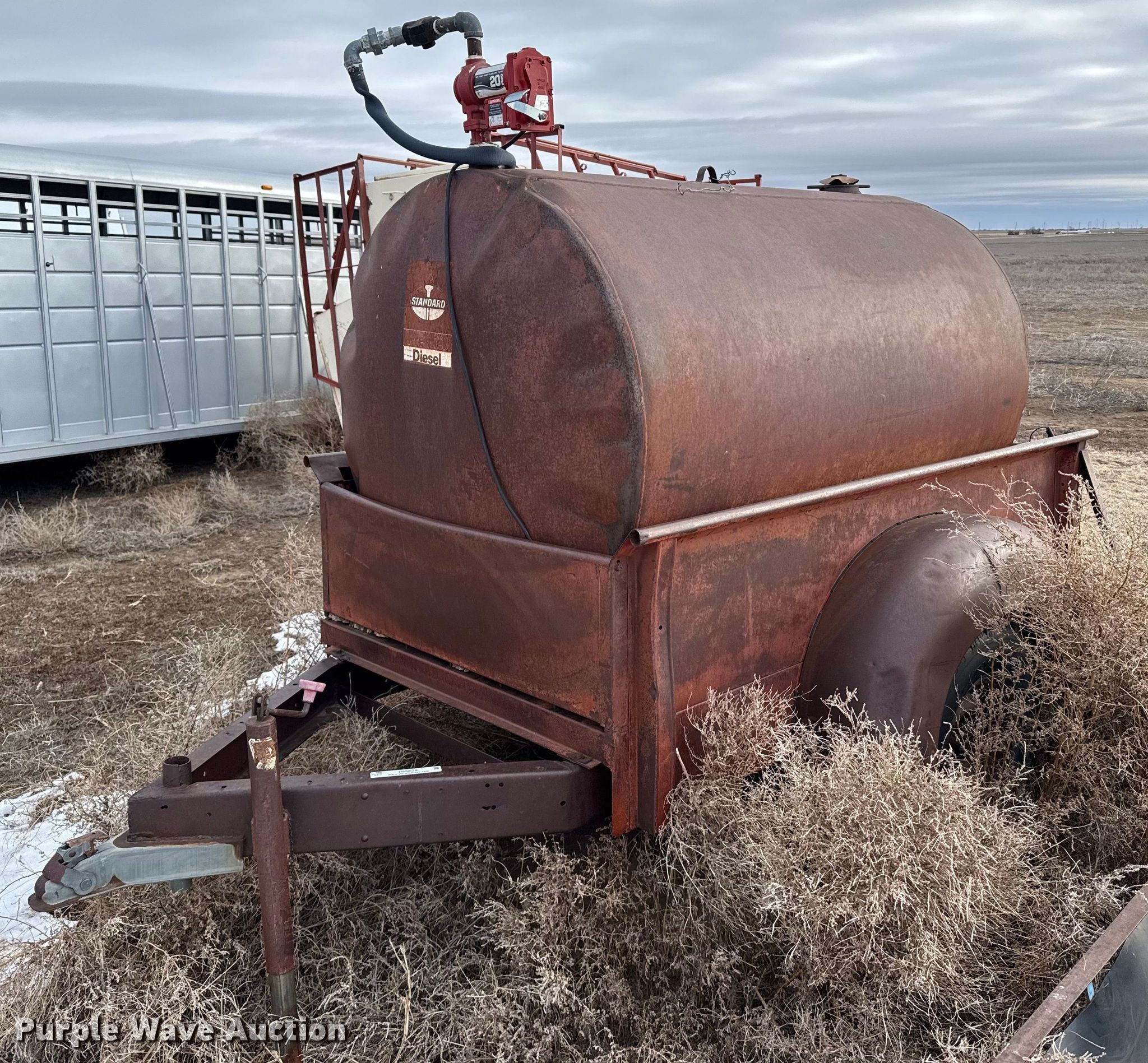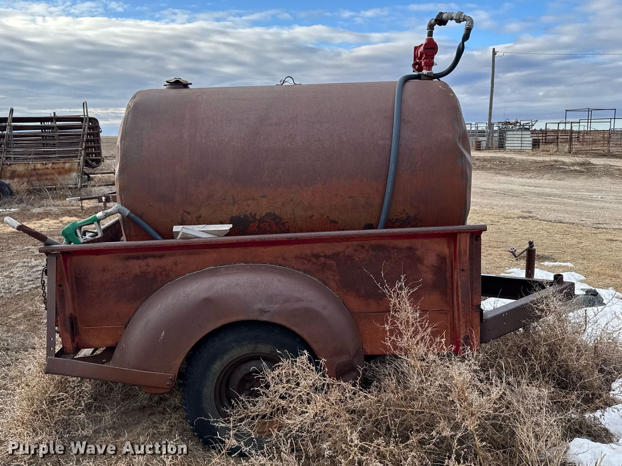 Purple Wave is selling a used Trailer Other in Kansas. This item is a Shop built fuel trailer with the following: Overall: 11' L x 75' W, Deck: 7' 7" L x 56" W