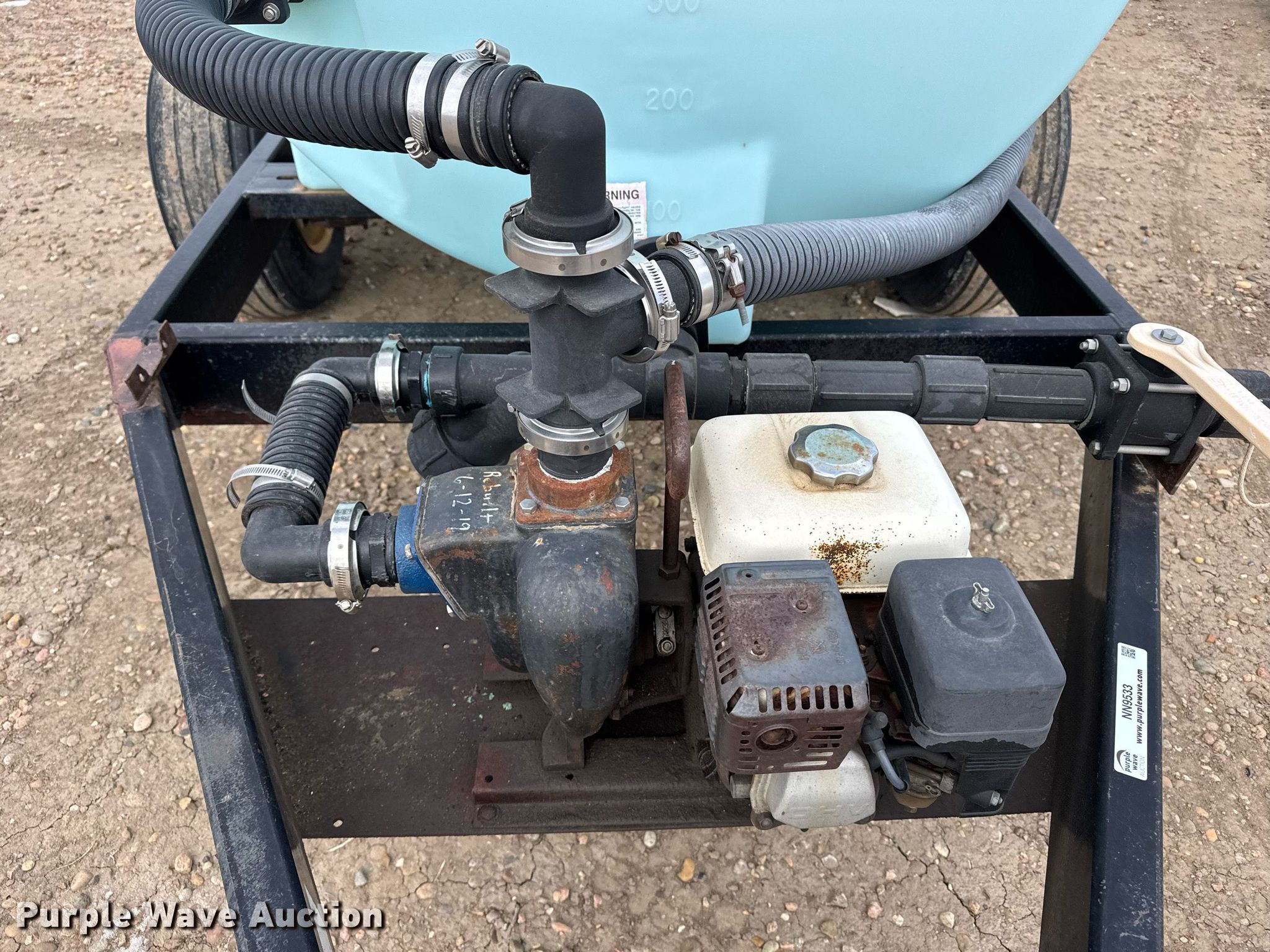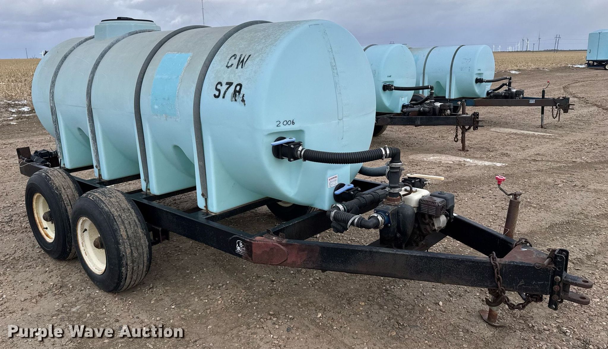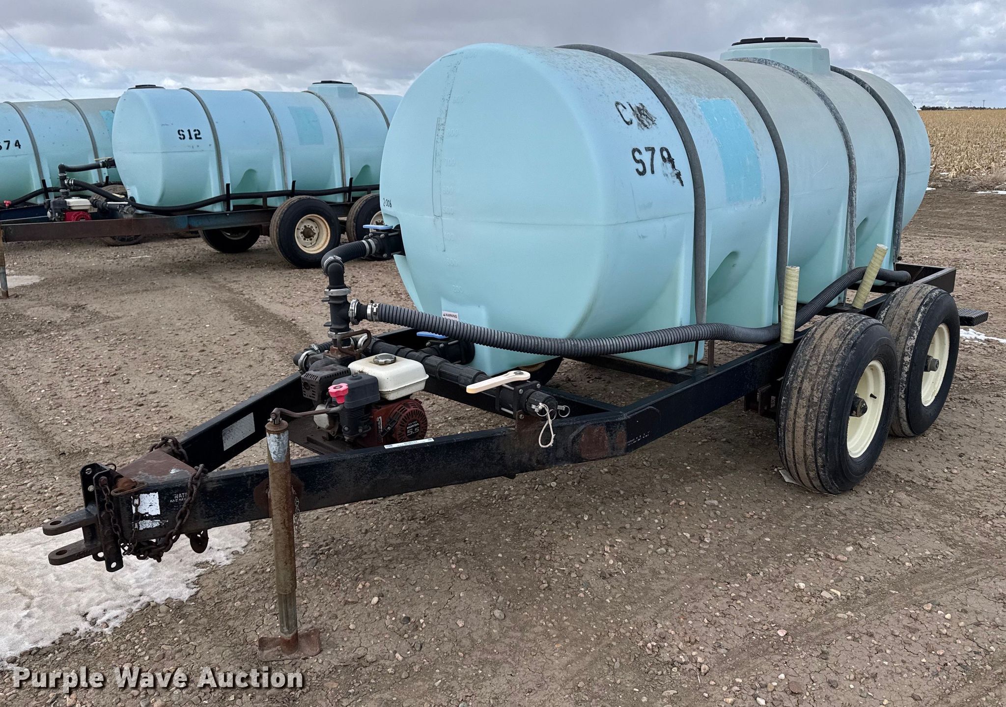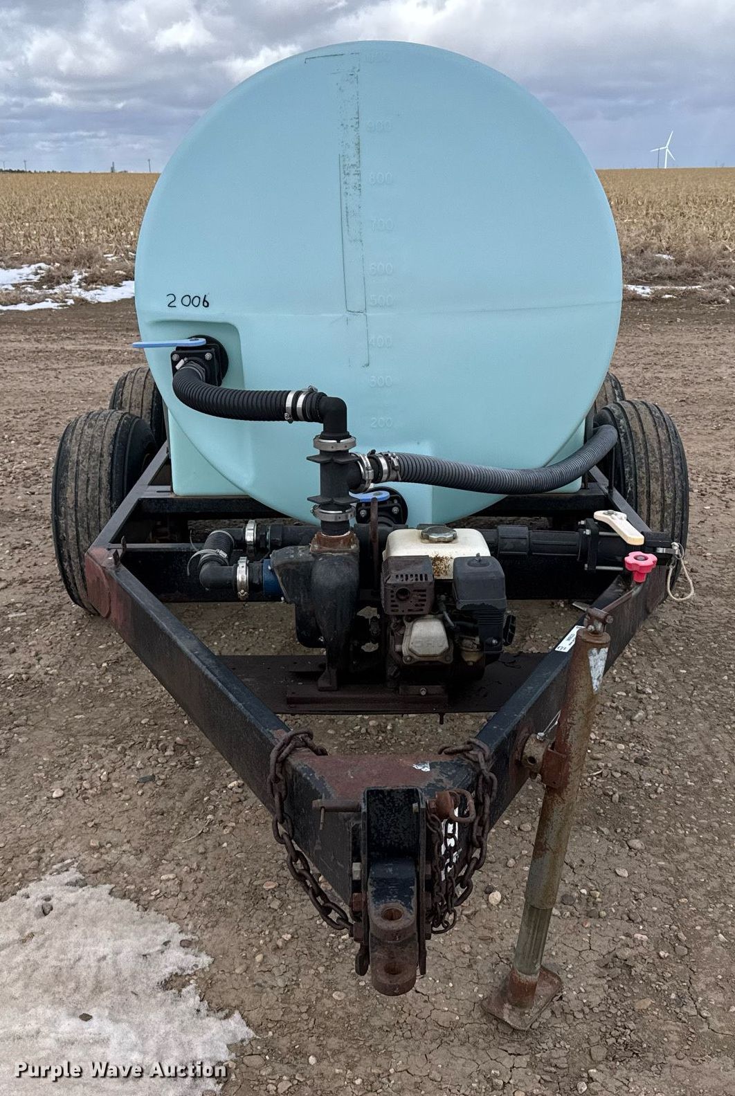 Nurse tank trailer. Dimensions. Overall: 15' 6" L x 80" W. Engine Honda GX160, Cylinders: 1, HP: 5.5. Features Liquid fertilizer tank Capacity: 1,000 gallons, Pump Banjo, Outlet size: 2". Chassis Landing gear: Single, Suspension: Spring, Axles: Tandem. Tires Steel wheels, Size: 11L-15. Kugler Company. Burlington, CO 80807