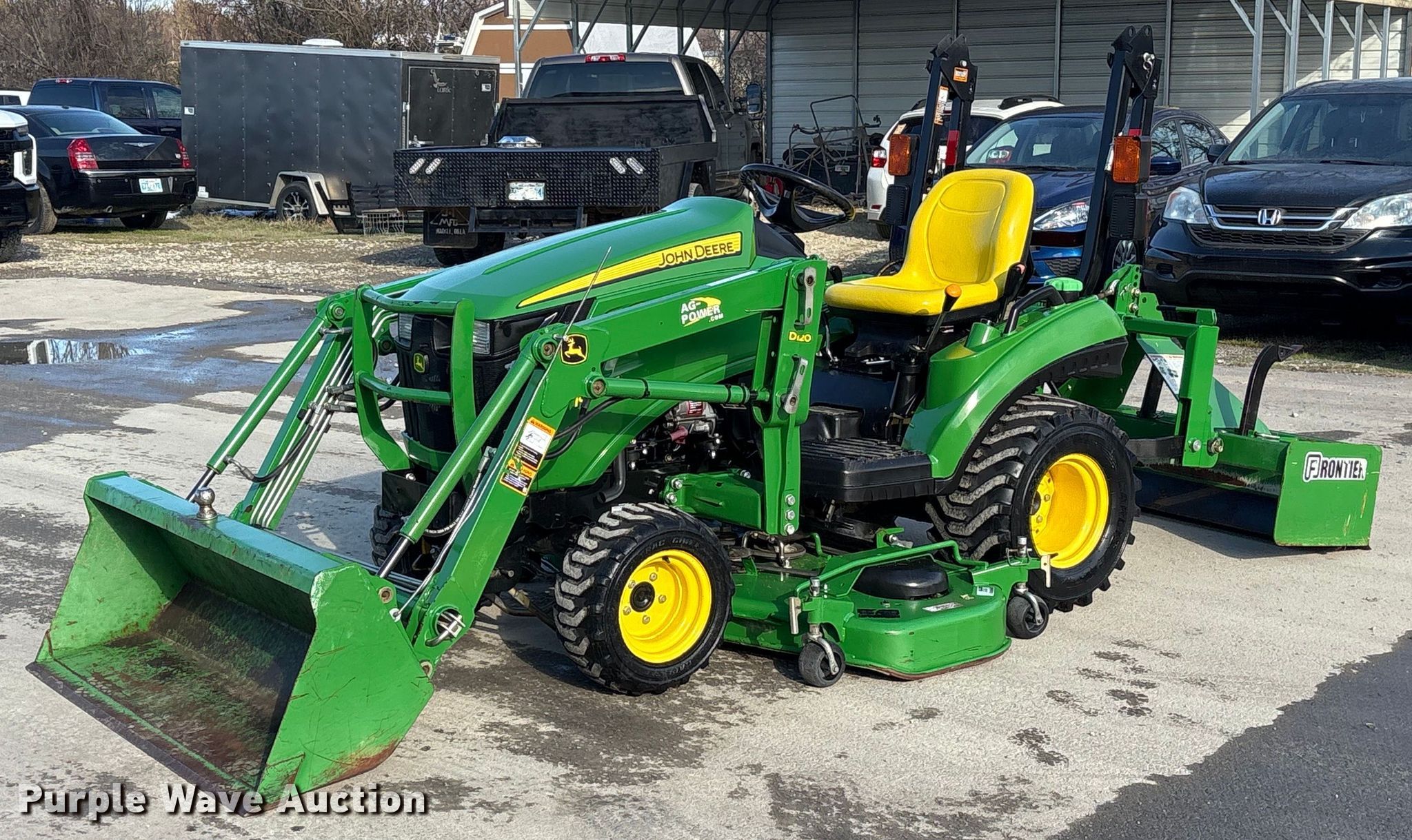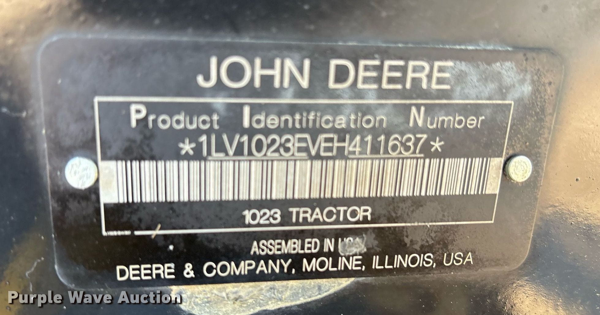 Purple Wave is selling a used Tractor in Oklahoma. This item is a 2014 John Deere 1023E MFWD tractor with the following: Hours: 280 on meter, Serial: 1LV1023EVEH411637
