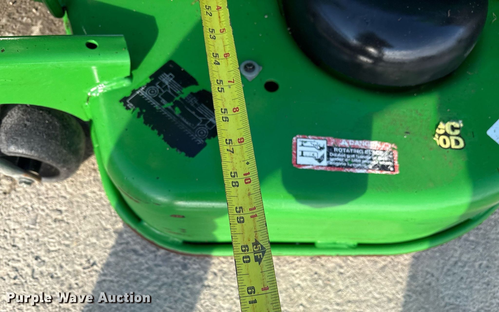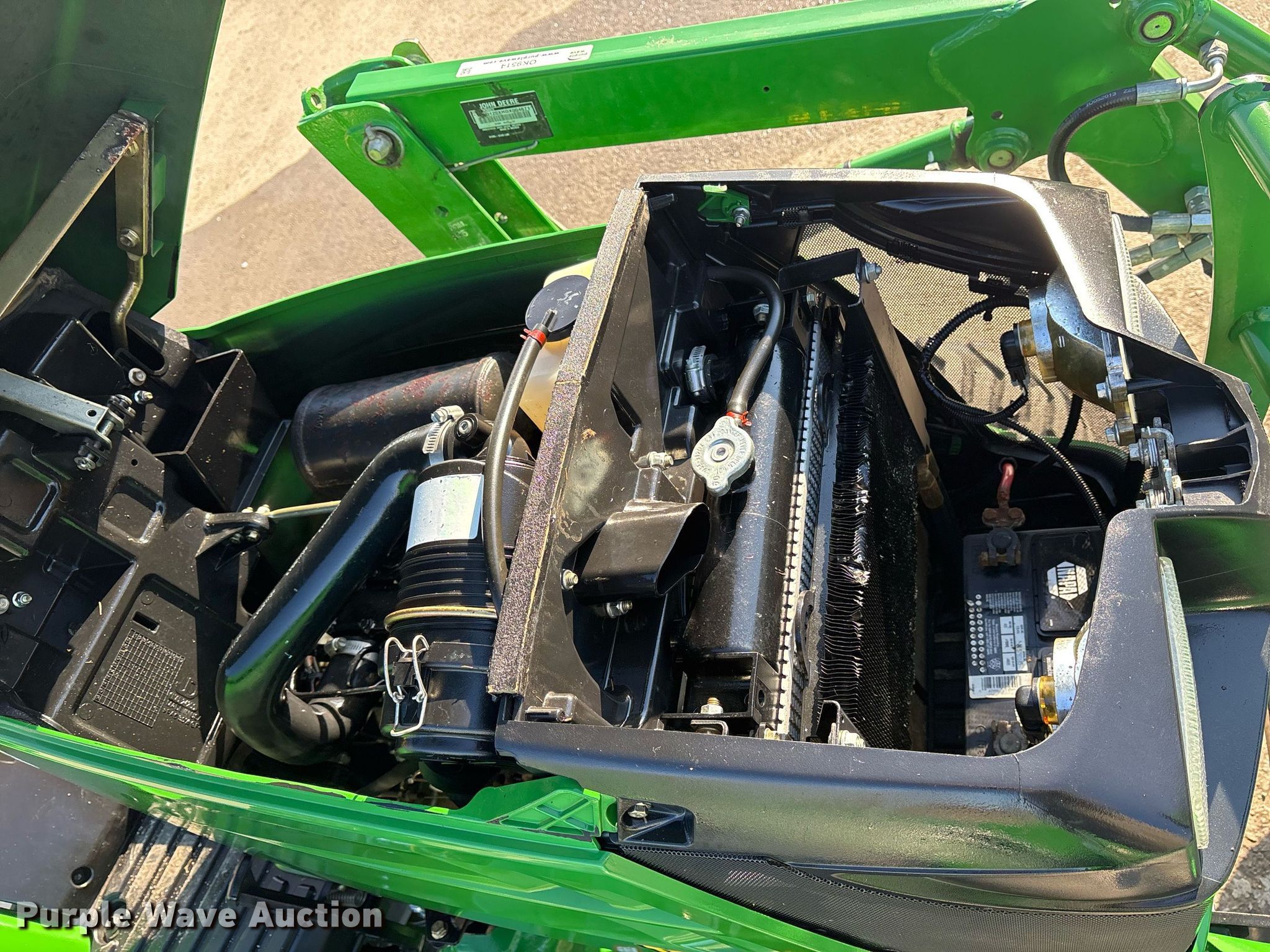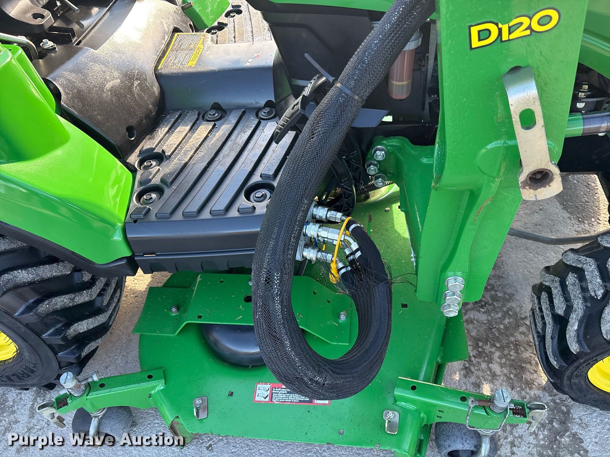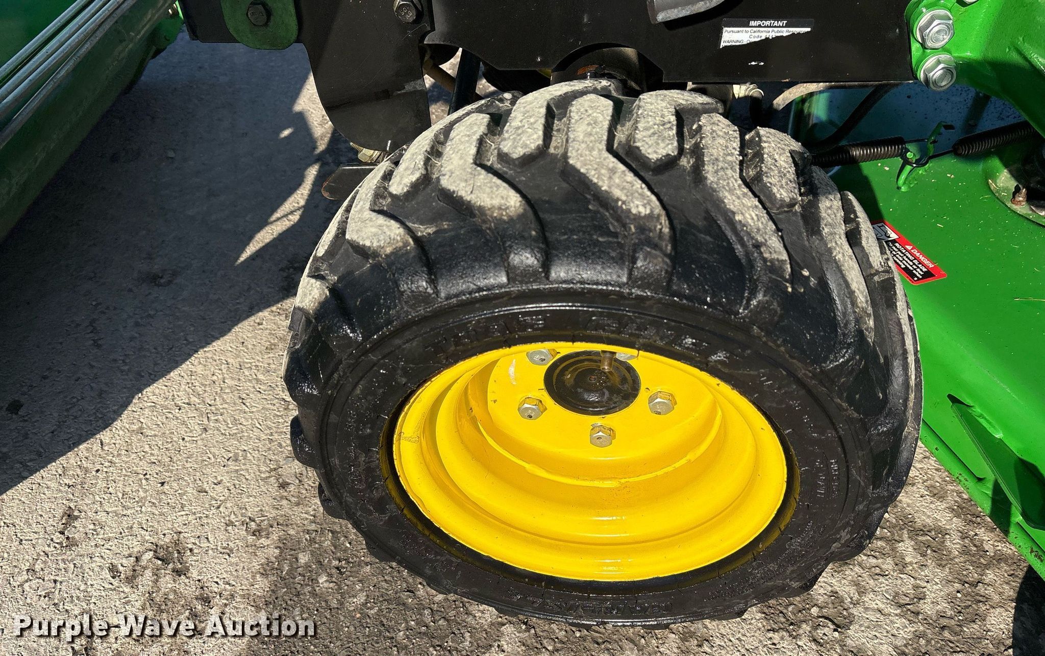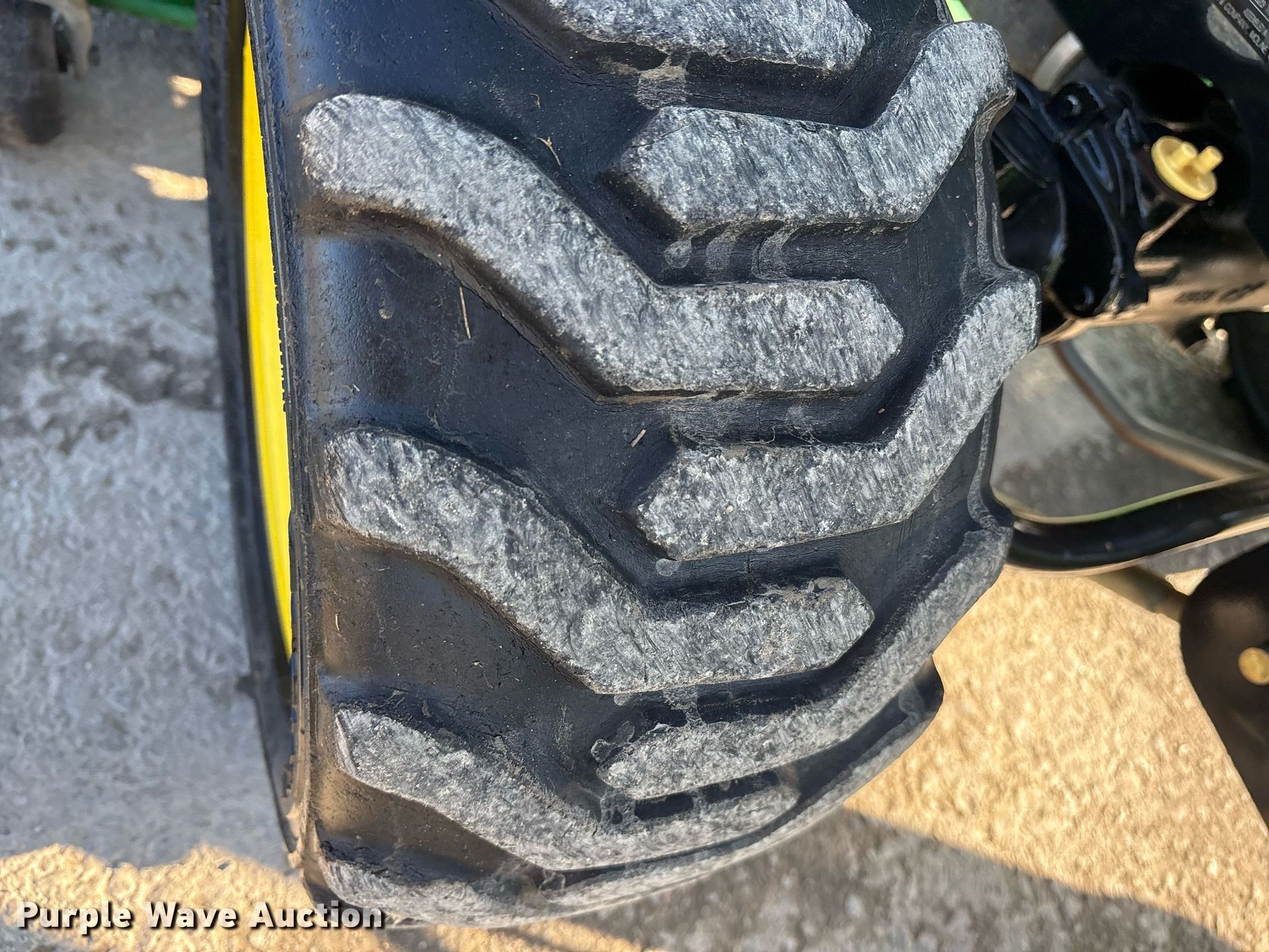 2014 John Deere 1023E MFWD tractor. Hours: 280 on meter, Serial: 1LV1023EVEH411637. Engine Yanmar 5ENCAAJ, Displacement:.993L, Cylinders: 3, Fuel type: Diesel, kW: 19. Transmission Hydrostatic, Differential lock. Features PTO: 540, Three point Top link, Quick attach, Hydraulic remote sets Front: 2, Rear: 1, Loader John Deere, Quick attach, Controls: Joystick, Bucket Width: 50", Box blade Frontier, Width: 4', Ripper shanks: 3, Mower deck John Deere, Width: 60".. Tires Front: 18x8.50-10NHS, Rear: 26x12.00-12NHS. Notes Dead battery. Durant, OK 74701