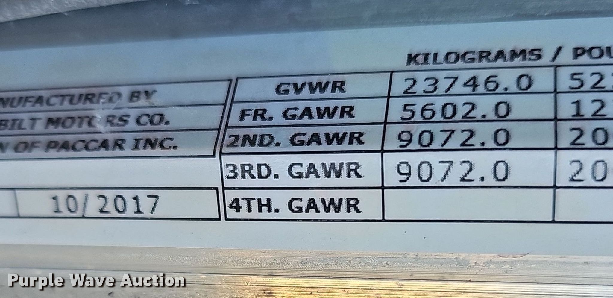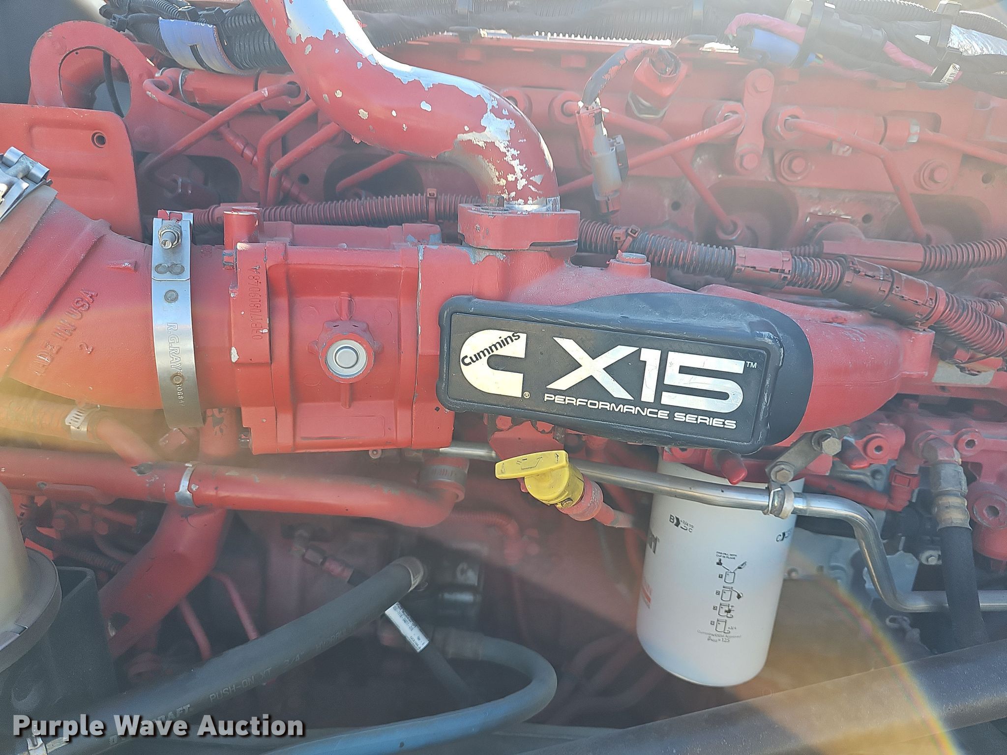 2018 Peterbilt 389 semi truck. Miles: 536,072 on odometer, Hours: 11,274 on meter, VIN: 1XPXD49X7JD485644, Unit #: 76. Engine Cummins X15, Displacement: 14.9L, Cylinders: 6, Fuel type: Diesel, Engine brake. Transmission Eaton Fuller, Manual, Speed: 18. Chassis Axles: Tandem, Differential lock: Inter-axle, Suspension: Air Dump valves, Brakes: Air, Truck chassis: 13', GVWR: 52,350 lbs FAWR: 12,350 lbs, IAWR: 20,000 lbs, RAWR: 20,000 lbs, Wheelbase: 272". Interior AC, Heat, Heated mirrors, Power windows, Power locks, Cruise control, Sleeper Sleeper length: 78", Beds: Single, Refrigerator, Rear climate control. Features Deck plate: Aluminum, Fifth wheel type: Air operated, Sliding, Fuel tank: Dual. Tires Size: 285/75R24.5. Notes Windshield chipped or cracked, Engine overhauled June 2020 at 221,223 miles. View repairs. Kansas title. Title distribution may be delayed up to 30 days from verification of funds. Leonardville, KS 66449