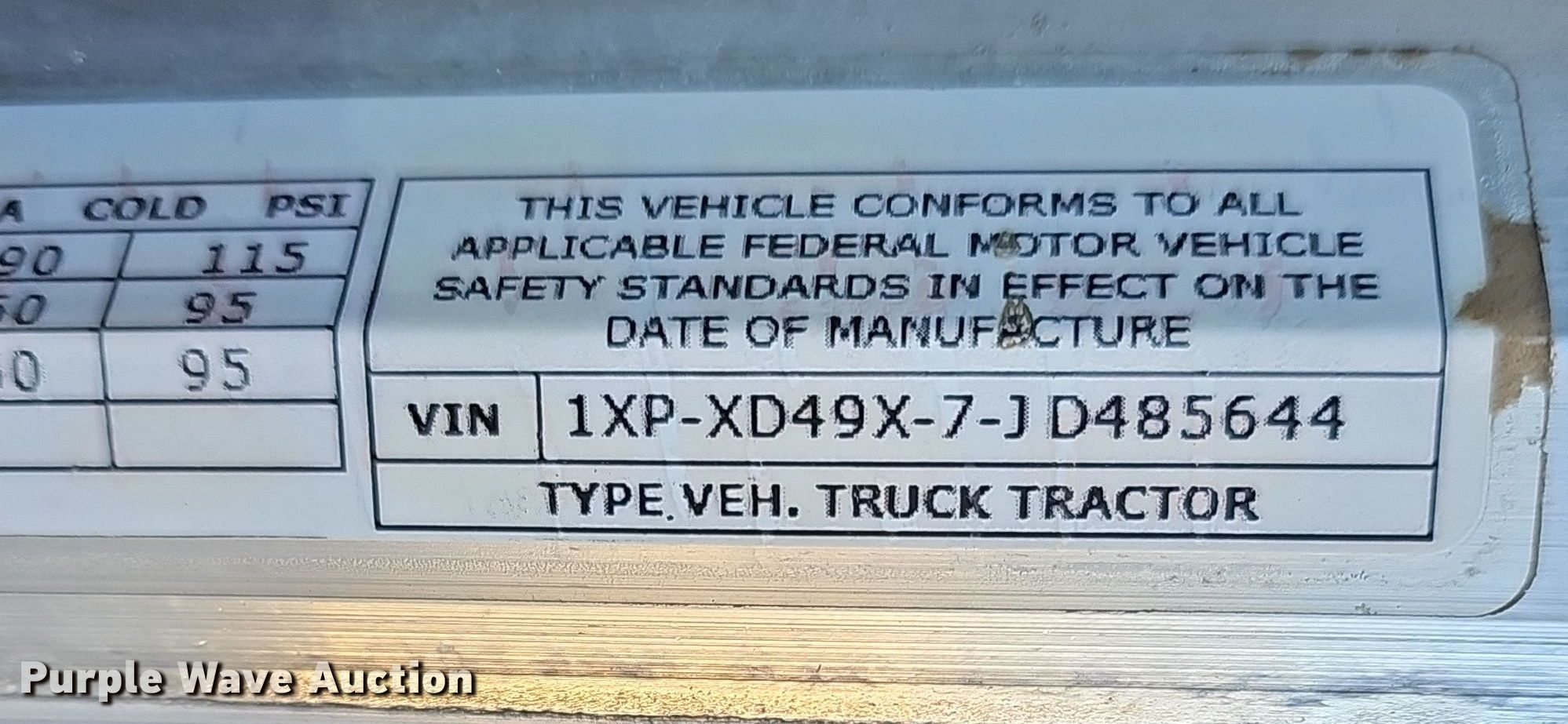 Purple Wave is selling a used Truck Tractor in Kansas. This item is a 2018 Peterbilt 389 semi truck with the following: Miles: 536,072 on odometer, Hours: 11,274 on meter, VIN: 1XPXD49X7JD485644, Unit #: 76