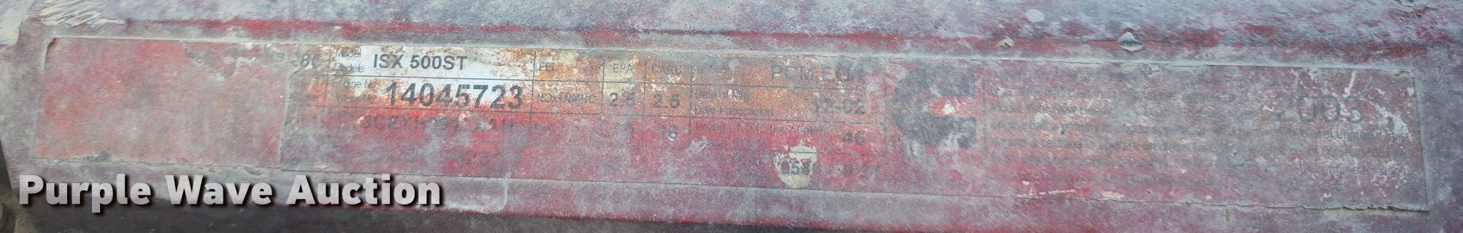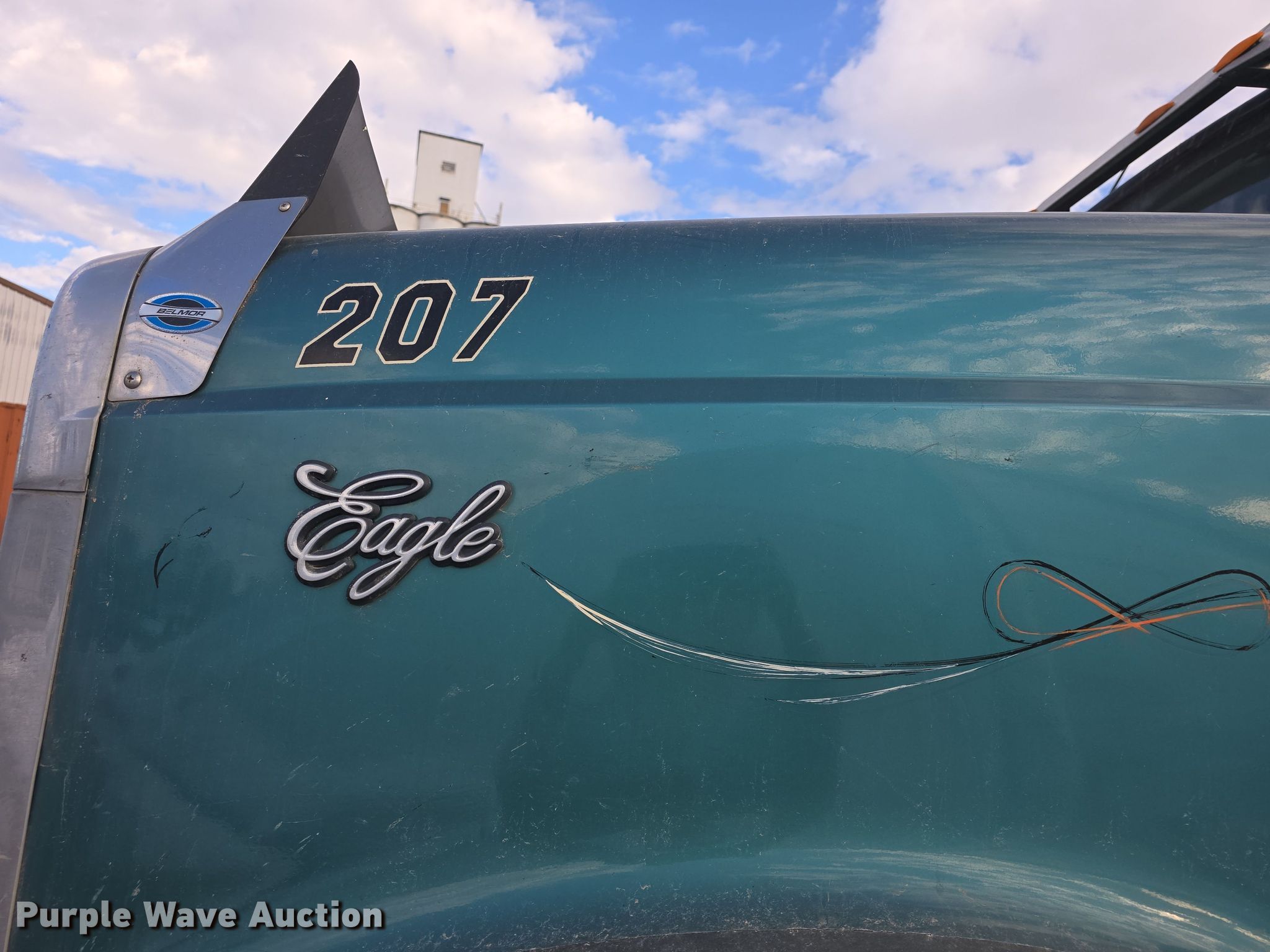 2003 International Eagle 9900i semi truck. Miles: 1,202,943 on odometer, Hours: 42,835 on meter, VIN: 2HSCHAPR33C073142, Unit #: 207. Engine Cummins ISX, Serial: 14045723, Displacement: 14.9L, Cylinders: 6, Fuel type: Diesel, Engine brake. Transmission Eaton Fuller, Manual, Speed: 13. Chassis Axles: Tandem, Differential lock: Inter-axle, Suspension: Air Dump valves, Brakes: Air, Truck chassis: 14', GVWR: 52,000 lbs FAWR: 12,000 lbs, IAWR: 20,000 lbs, RAWR: 20,000 lbs, Wheelbase: 264". Interior AC, Heat, Heated mirrors, Power windows, Power locks, Cruise control, Sleeper Sleeper length: 89", Beds: Double bunk, Rear climate control. Features Deck plate: Aluminum, Fifth wheel type: Air operated, Sliding, Fuel tank: Dual. Tires Size: 285/75R24.5. Notes Dash warning indicator: ABS, Possible clutch issues Throw-out bearing issues, Engine rebuilt April 2012 at 625,457 miles. View repairs. Kansas title. Title distribution may be delayed up to 14 days from verification of funds. Agri Trails Coop. Navarre, KS 67451