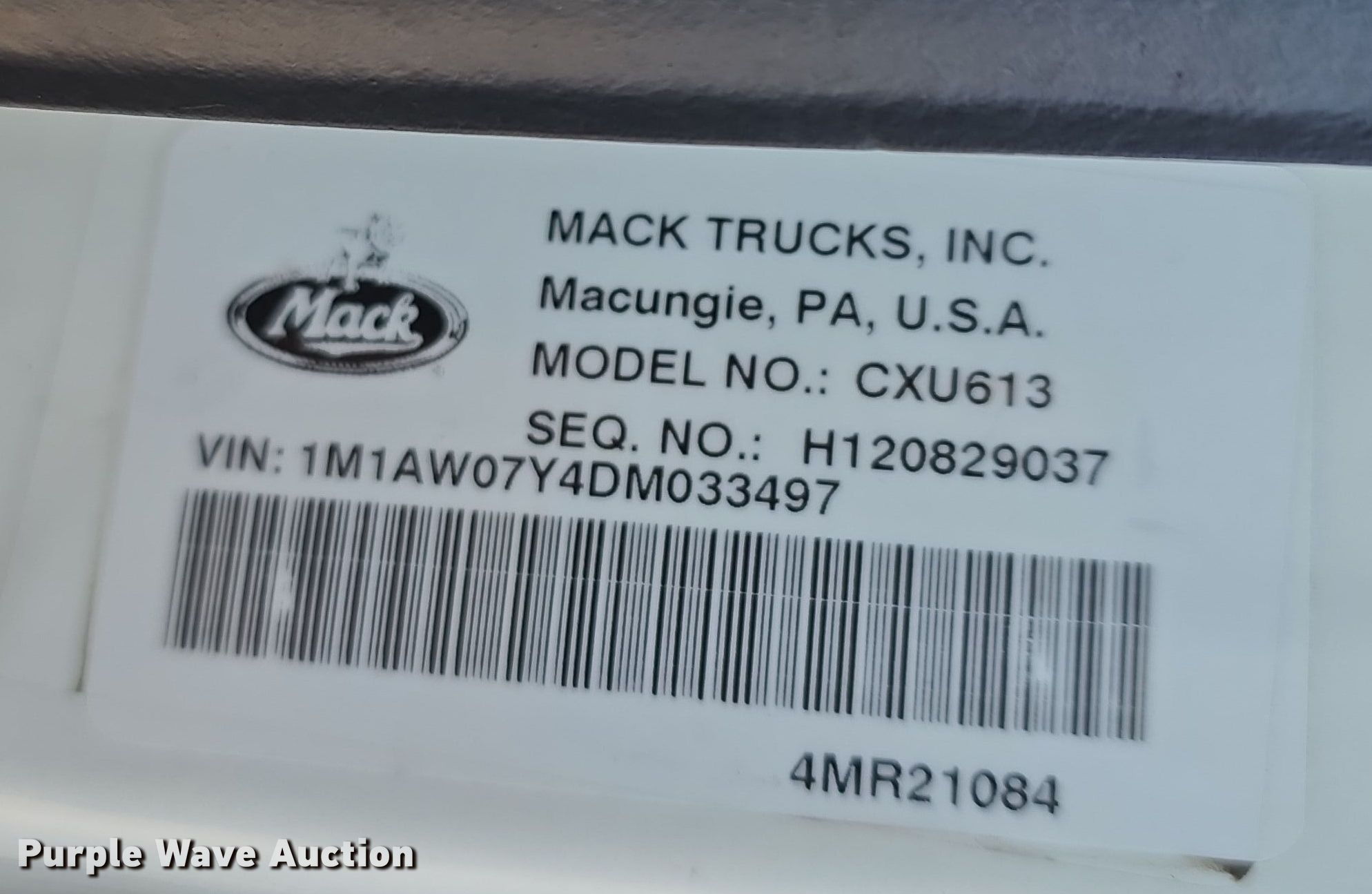 Take a look at this used 2013 Mack CXU613 semi truck being sold on February 20th, 2025 in the SOLD! February 20 Truck and Trailer Auction made by Mack. Take a look at all of the item information below or take a look at similar auctions for Trucks.