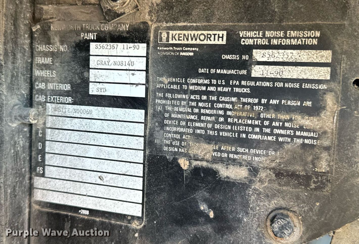 Purple Wave is selling a used Truck Tractor in Oklahoma. This item is a 1991 Kenworth T800 semi truck with the following: Miles: 854,145 on odometer, VIN: 1XKDDE8X6MS562357