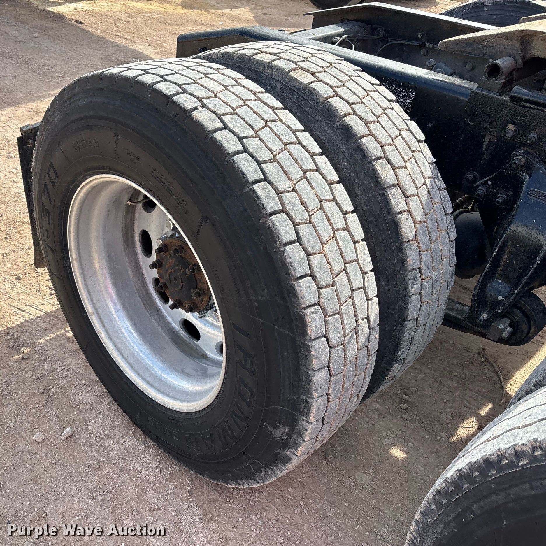 1997 Freightliner FLD120 semi truck. Miles: 604,283 on odometer, VIN: 1FUYDXYBOVP770342. Engine Caterpillar 3406, Displacement: 14.6L, Cylinders: 6, Fuel type: Diesel, HP: 475, Engine brake. Transmission Eaton Fuller, Manual, Speed: 13. Chassis Axles: Tandem, Gear ratio: 3.91, Differential lock: Full, Suspension: Air Dump valves, Brakes: Air, PTO, Truck chassis: 156', GVWR: 52,000 lbs FAWR: 12,000 lbs, RAWR: 40,000 lbs, Wheelbase: 238". Interior AC, Heat, Heated mirrors, Cruise control, Air ride cab, Sleeper Sleeper length: 70", Beds: Single, Refrigerator, Microwave. Features Fifth wheel type: Sliding, Fuel tank: Dual. Tires Size: 11R24.5. Notes Windshield chipped or cracked. Texas bonded title. Title distribution may be delayed up to 30 days from verification of funds. Rod Brothers Logistics. Amarillo, TX 79118