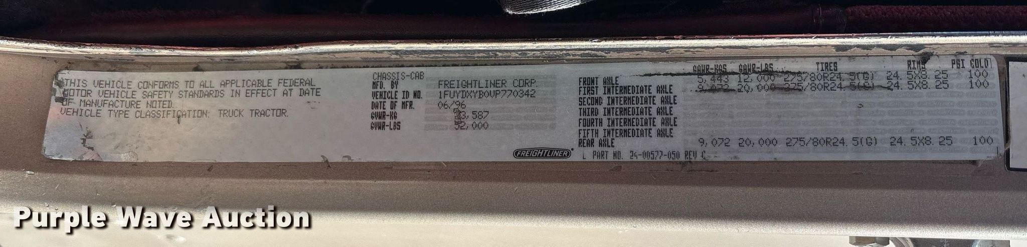 Purple Wave is selling a used Truck Tractor in Texas. This item is a 1997 Freightliner FLD120 semi truck with the following: Miles: 604,283 on odometer, VIN: 1FUYDXYBOVP770342