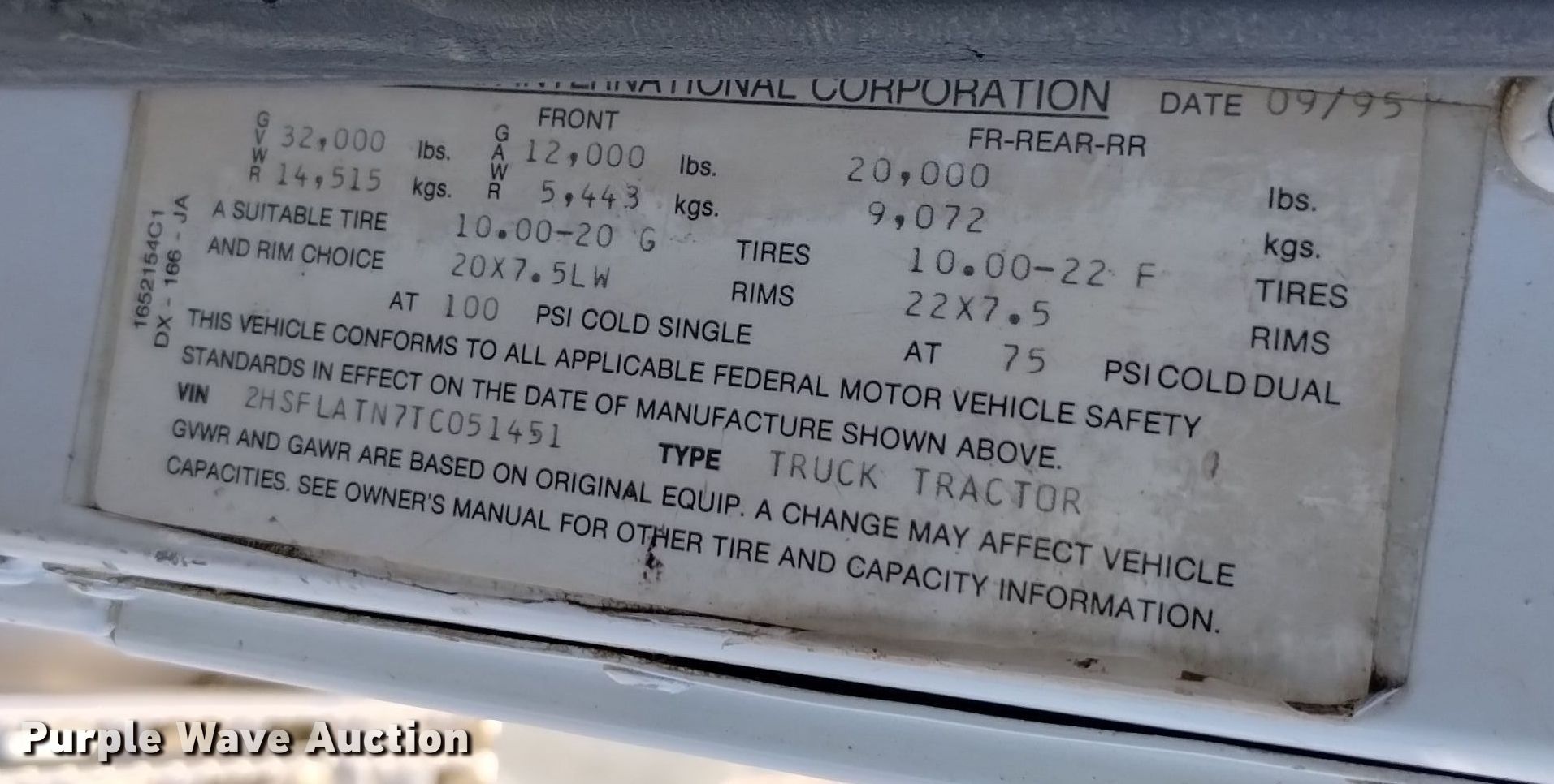 Purple Wave is selling a used Truck Tractor in California. This item is a 1996 International 9200 semi truck with the following: Miles: 602,052 on odometer, VIN: 2HSFLATN7TC051451, Unit #: 50