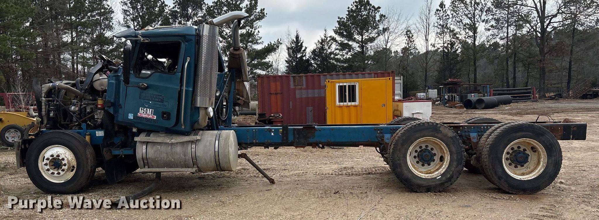 2005 Mack truck cab and chassis. Miles: Unknown, VIN: 1M1AJ06Y25N001854, Unit #: 15018. Engine Mack, Displacement: 12.0L, Cylinders: 6, Fuel type: Diesel. Transmission Manual. Chassis Axles: Tandem, Suspension: Air, Brakes: Air. Interior Air ride cab. Features Fuel tank: Dual. Tires Size: 11R22.5. Notes Windshield chipped or cracked, Dead battery, Non-operational unit Unit must be towed or hauled. Texas title. Mileage has not been verified. Exempt will be written in the odometer disclosure on the title. Title distribution may be delayed up to 30 days from verification of funds. Welch Excavation. Winona, TX 75792