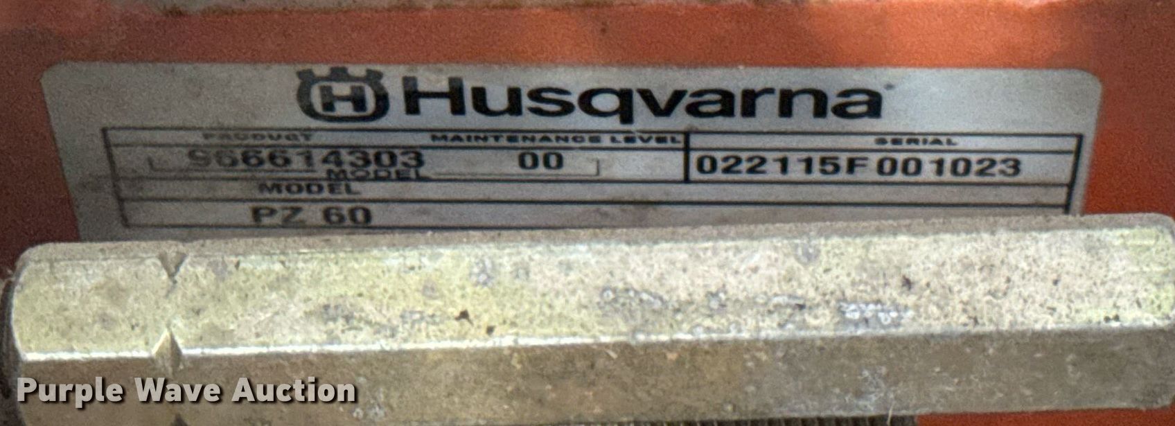 Purple Wave is selling a used Commercial Turf Mower in Indiana. This item is a Husqvarna PZ60 ZTR lawn mower with the following: Hours: Unknown, Cutting width: 60", Serial: 022115F001023