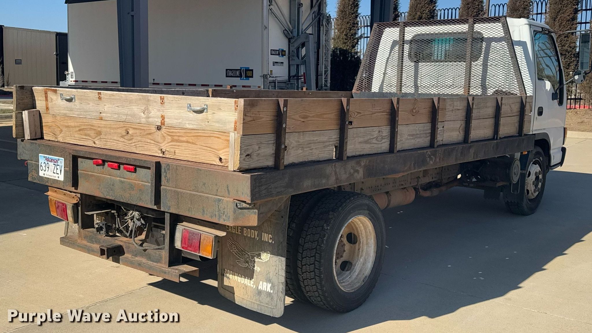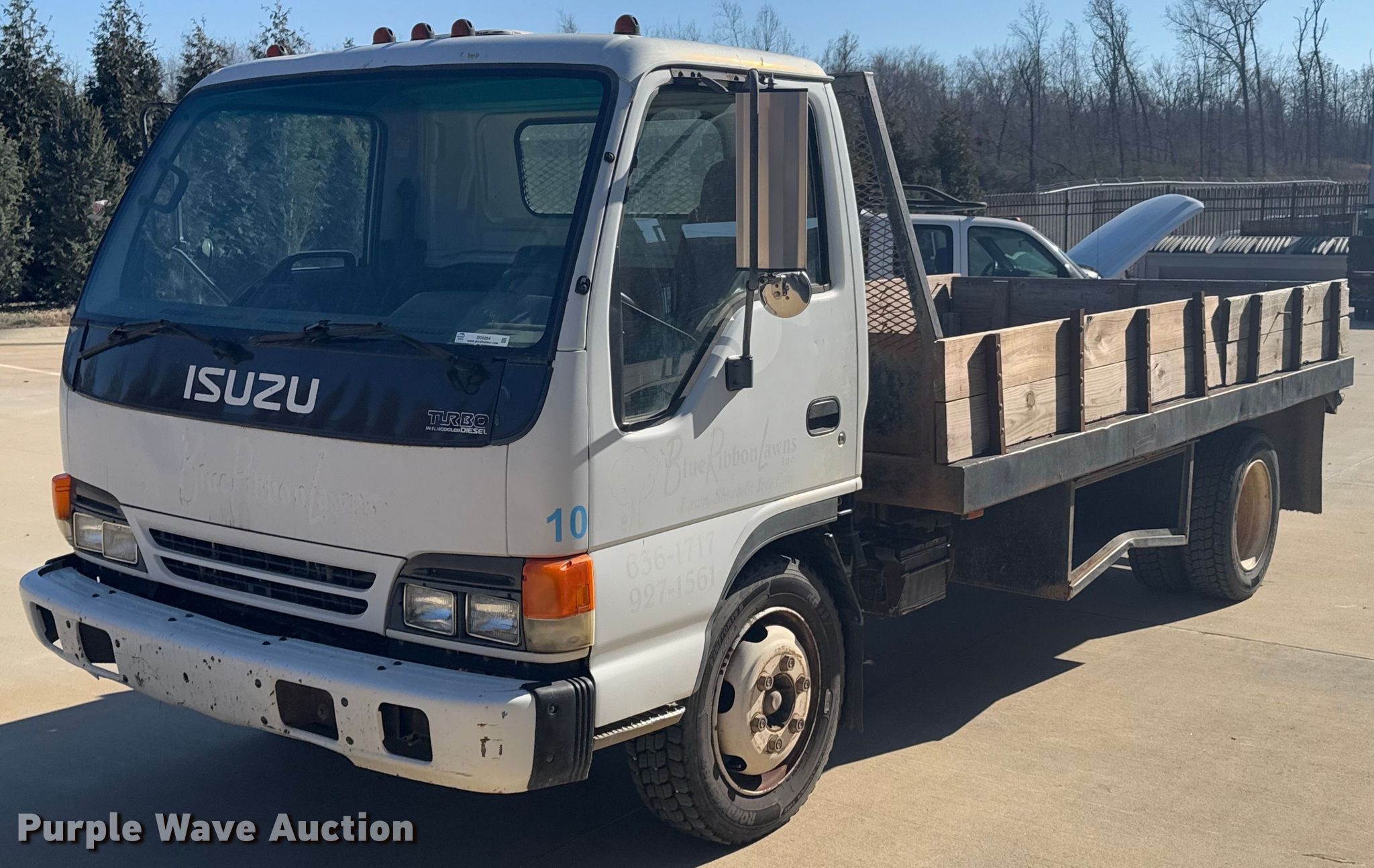 This 2001 Isuzu NQR flatbed truck will sell to the highest bidder regardless of price.