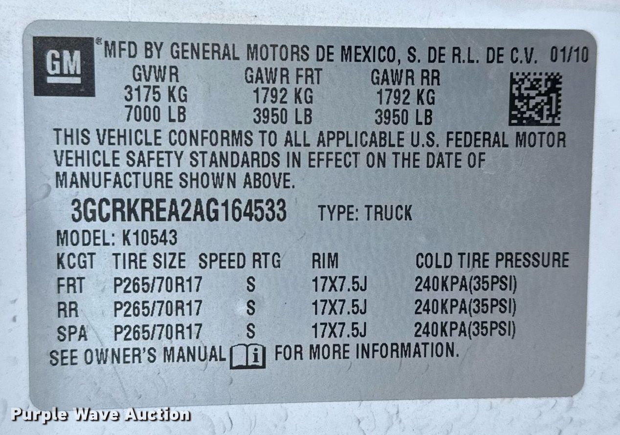 Purple Wave is selling a used 1/2 Ton Pickup or Van in Texas. This item is a 2010 Chevrolet Silverado 1500 Crew Cab pickup truck with the following: Miles: 119,629 on odometer, VIN: 3GCRKREA2AG164533, Unit #: 10