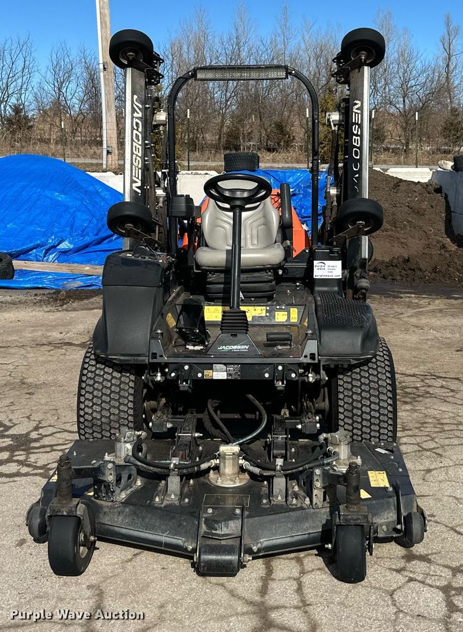 Purple Wave is selling a used Commercial Turf Mower in Kansas. This item is a Jacobson HR700 lawn mower with the following: Hours: 3,201 on meter, Cutting width: 168", Serial: XB000408