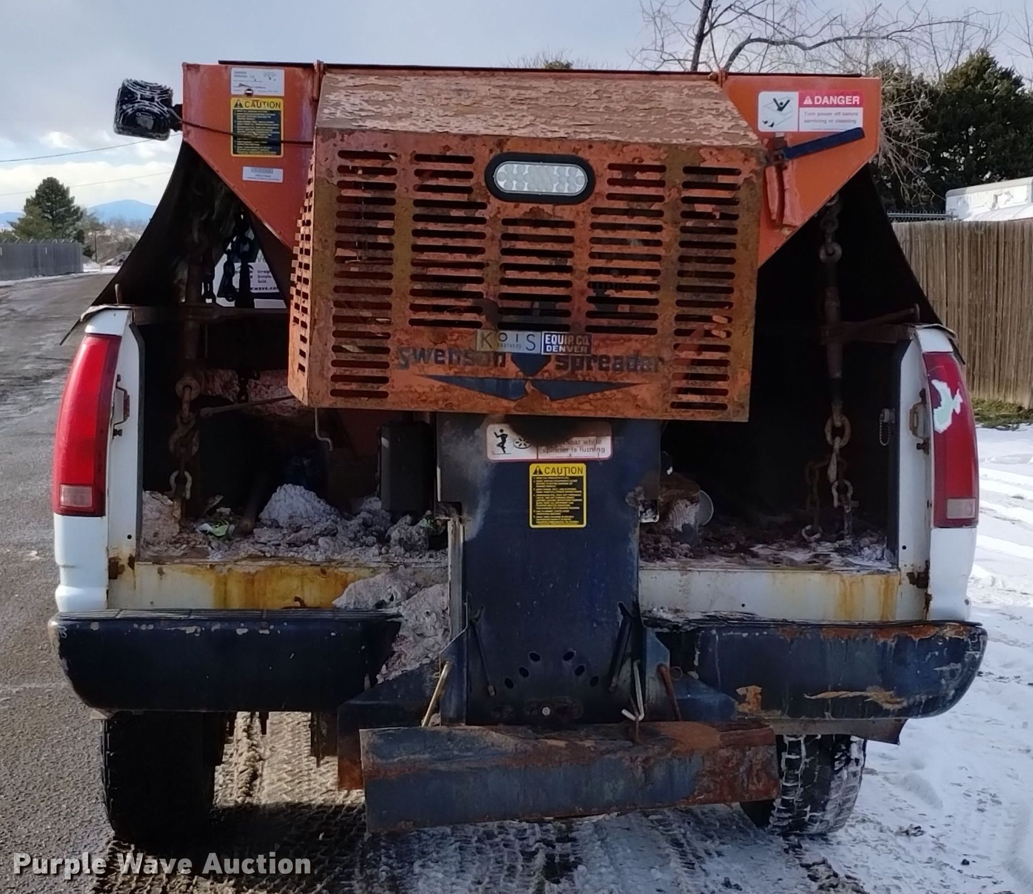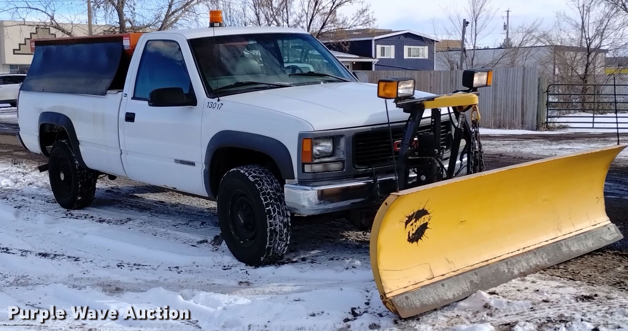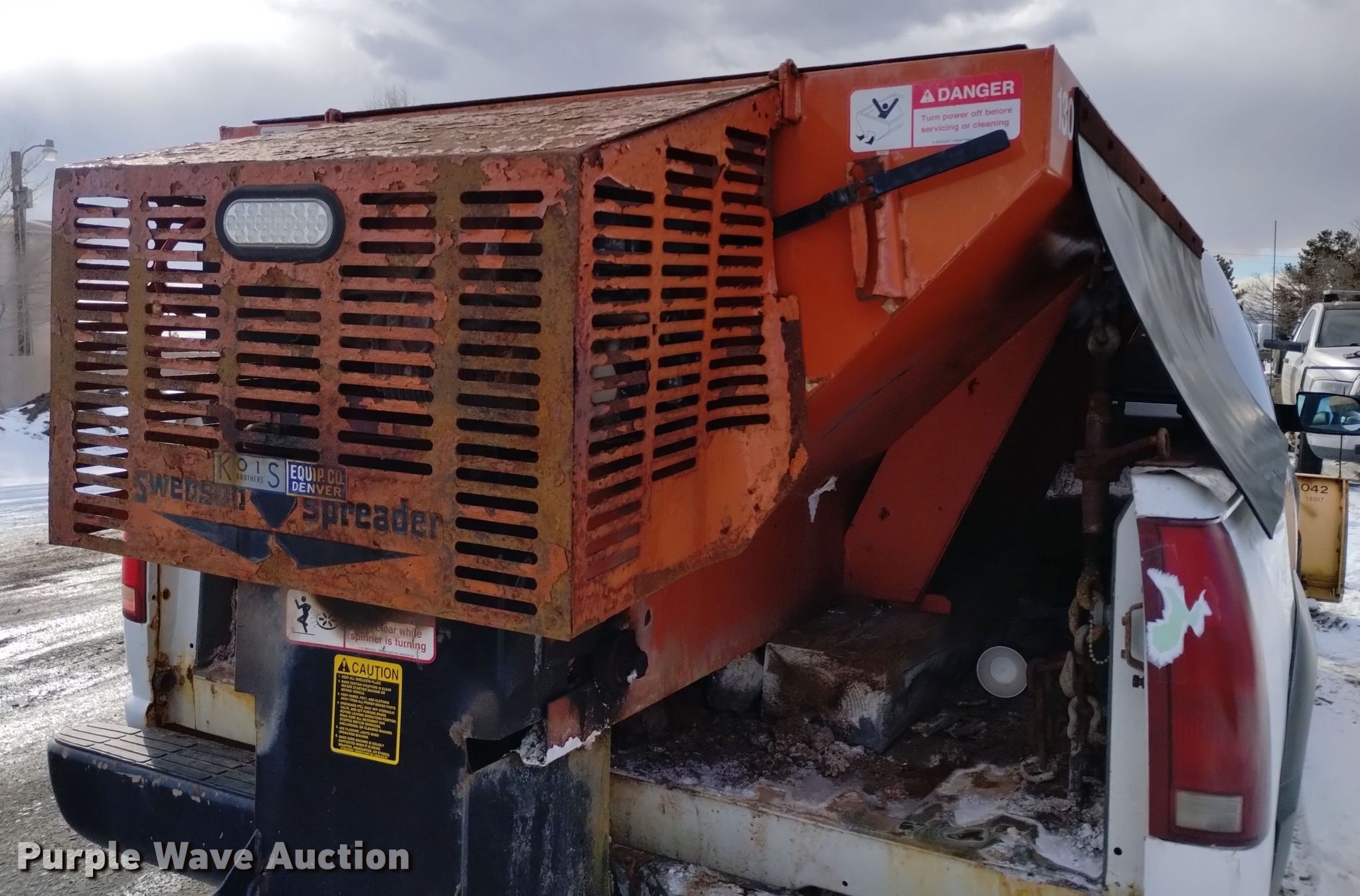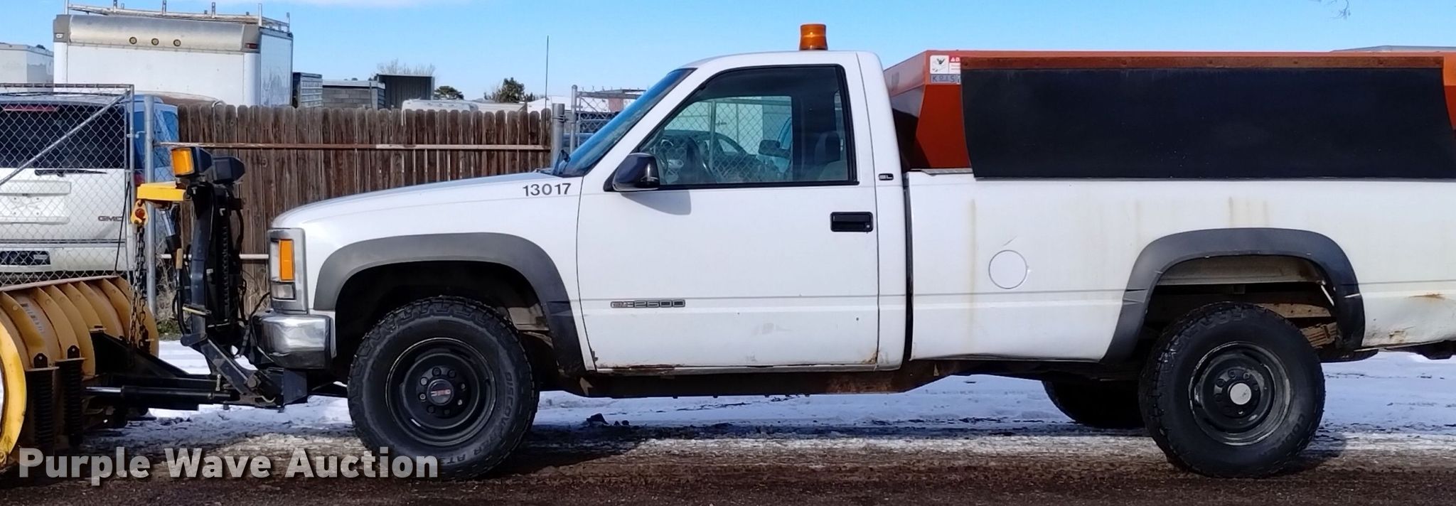 1998 GMC Sierra 2500 pickup truck. Miles: 128,254 on odometer, VIN: 1GTGK24R7WZ541578. Engine Displacement: 5.7L V8 OHV, Cylinders: 8, Fuel type: Gas. Transmission Automatic, Four wheel drive. Interior AC, Heat. {b}Features{/b} Fisher snow plow Width: 96", Swenson spreader Engine Briggs & Stratton, Cylinder: 1, Fuel type: Gas.. Tires Size: 245/75R16. Notes Dash warning indicator: Check gages, Unknown operating condition of spreader engine. Colorado title. Seller is a Colorado licensed motor vehicle dealer. The buyer may be required to pay sales tax and/or registration fees to the dealer prior to taking possession. Title will be assigned and distributed by the dealer. Please contact the seller for distribution questions. Aurora, CO 80011