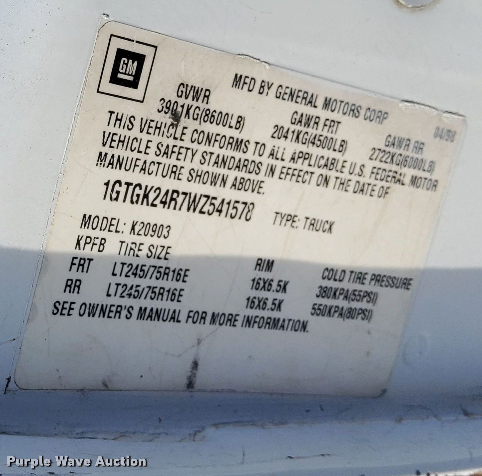 Purple Wave is selling a used 3/4 or 1 Ton Pickup or Van in Colorado. This item is a 1998 GMC Sierra 2500 pickup truck with the following: Miles: 128,254 on odometer, VIN: 1GTGK24R7WZ541578