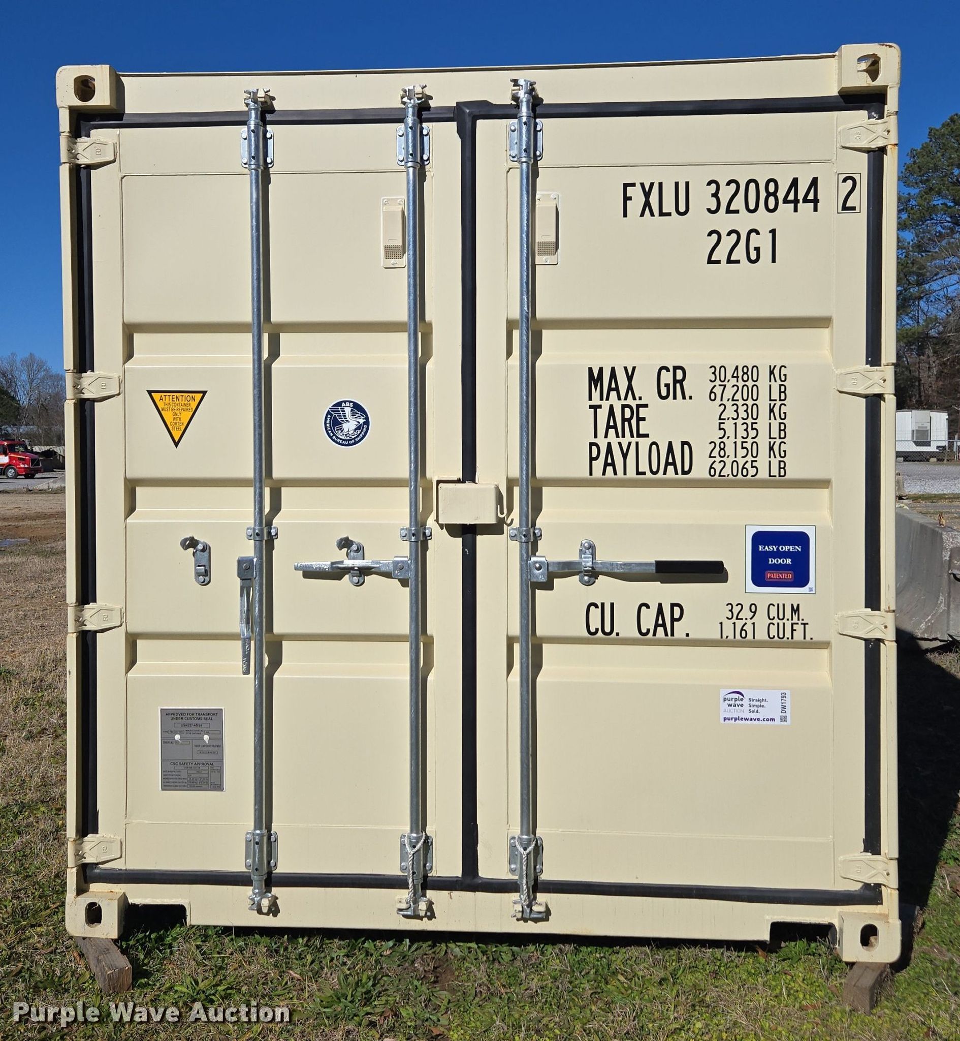 Purple Wave is selling a used Storage or Shipping Container in Alabama. This item is a Shipping container with the following: 20' L x 96" W x 102" H