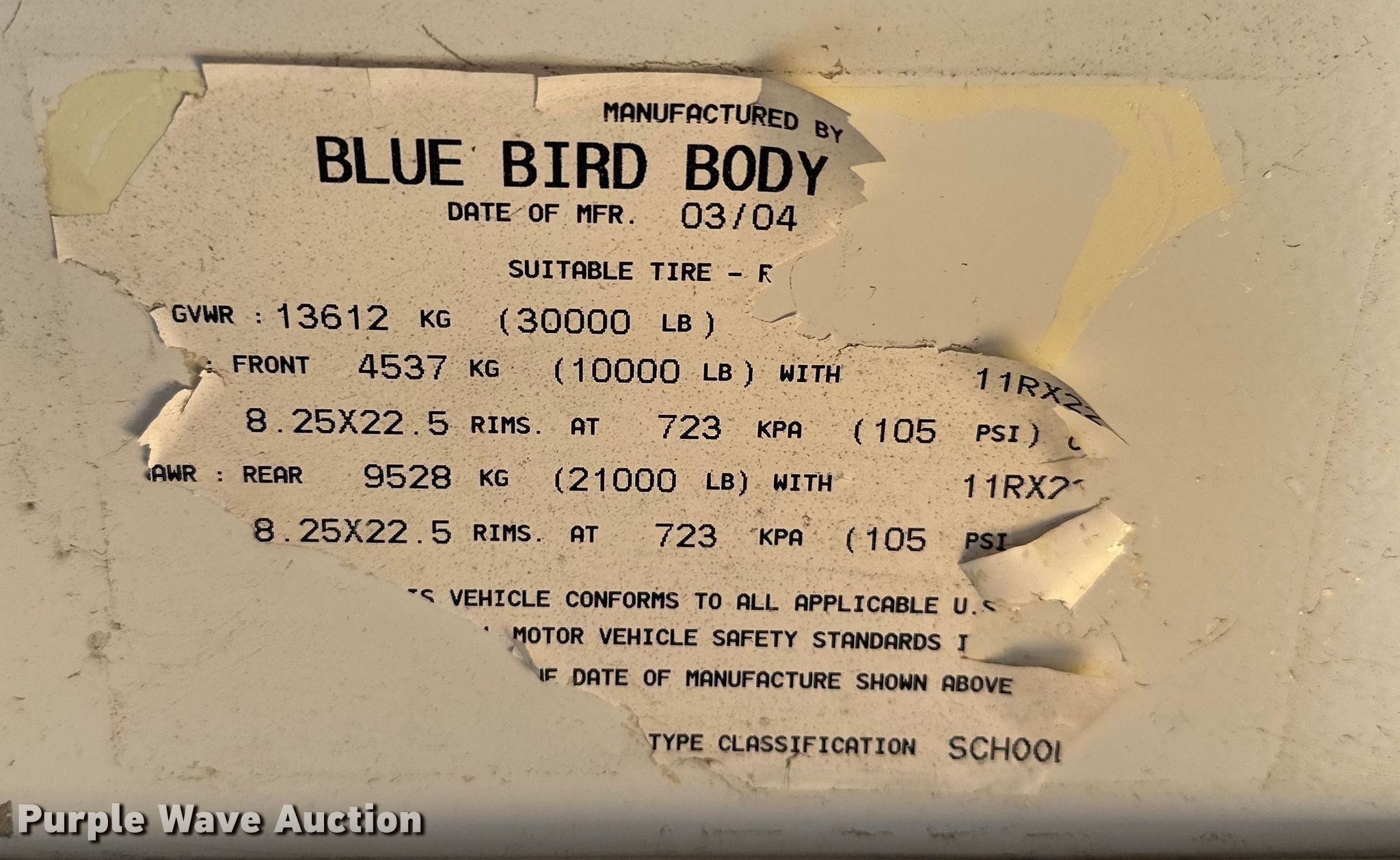 • VIN: 1BAKGCKH95F220843