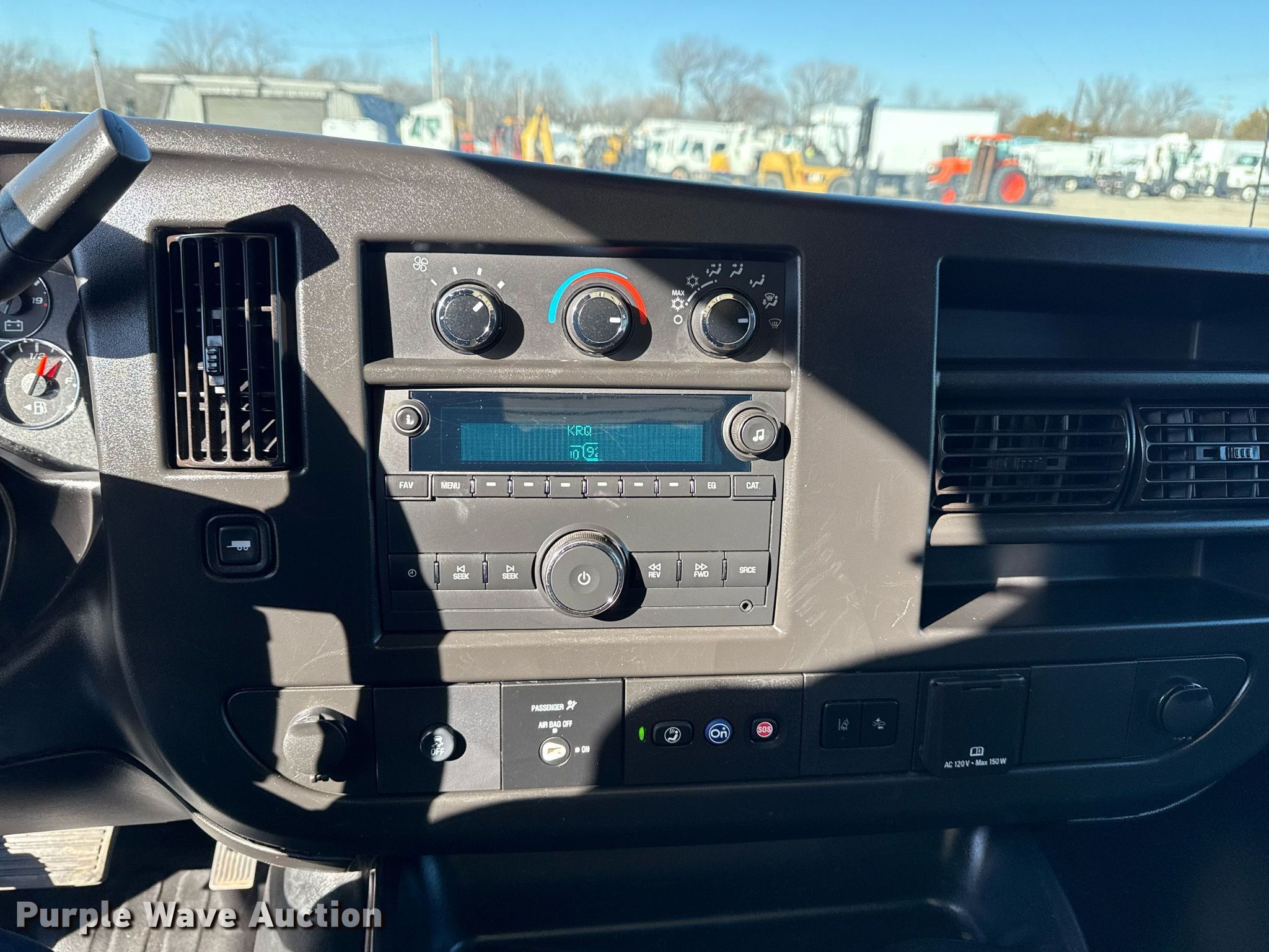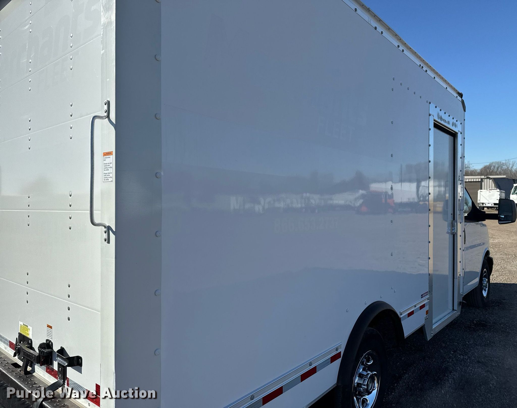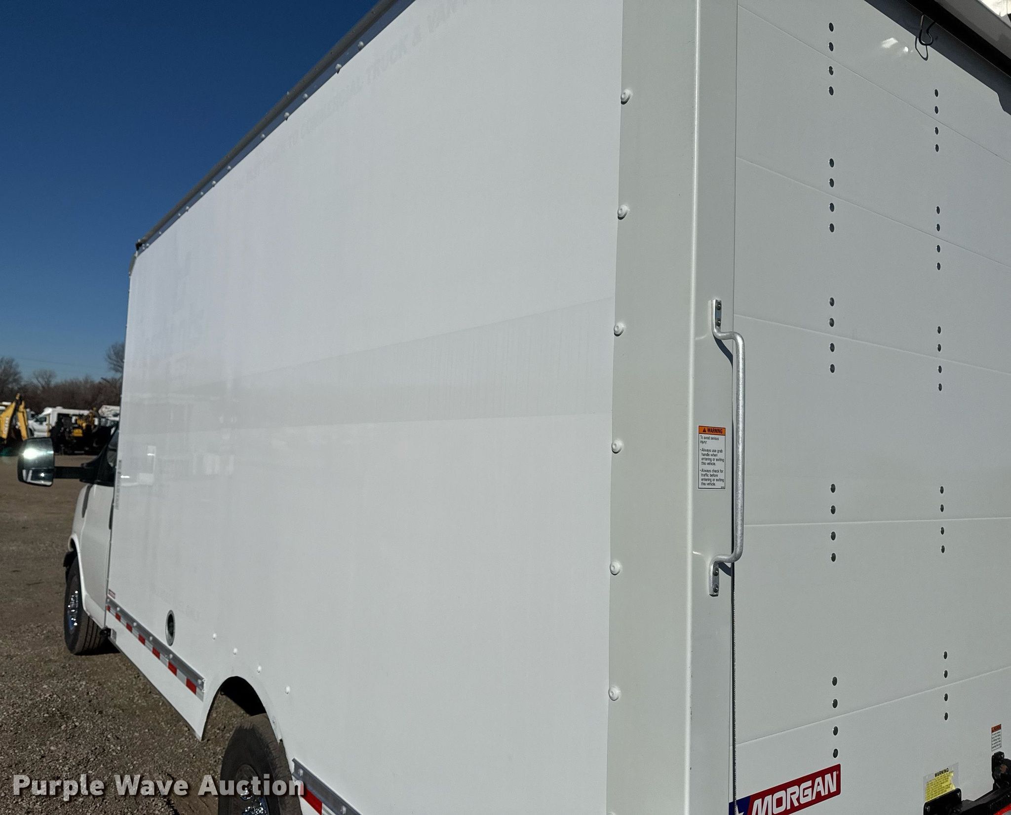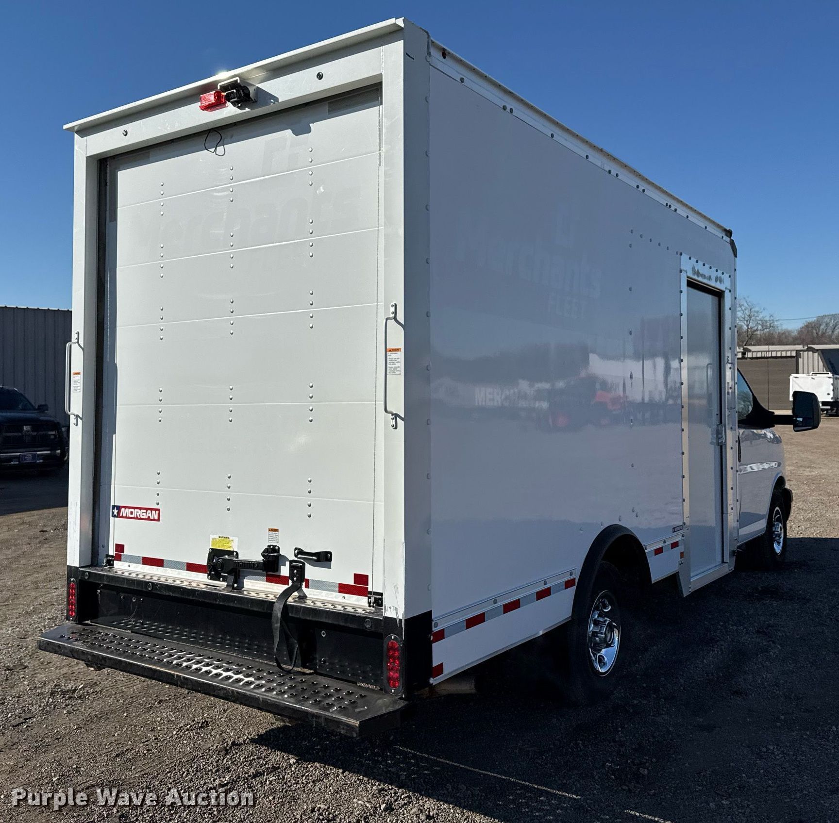 2022 Chevrolet Express G3500 delivery van. Miles: 21,753 on odometer, VIN: 1GB0GSF72N1165713. Engine Displacement: 6.6L V8 OHV, Cylinders: 8, Fuel type: Gas. Transmission Automatic. Chassis Axles: Single, Suspension: Spring, Brakes: Hydraulic, GVWR: 9,900 lbs. Interior AC, Heat, Power windows, Power locks, Cruise control. Features Box bed Morgan, 14' L x 79" W x 96" H, Floor: Wood, Backup camera. Tires Size: LT245/75R16. Notes Dash warning indicator: TPMS, Airbag. Oklahoma title. Seller is an Oklahoma licensed motor vehicle dealer. Title will be assigned and distributed by the dealer. Please contact the seller for distribution questions. Title distribution may be delayed up to 30 days from verification of funds. Collinsville, OK 74021