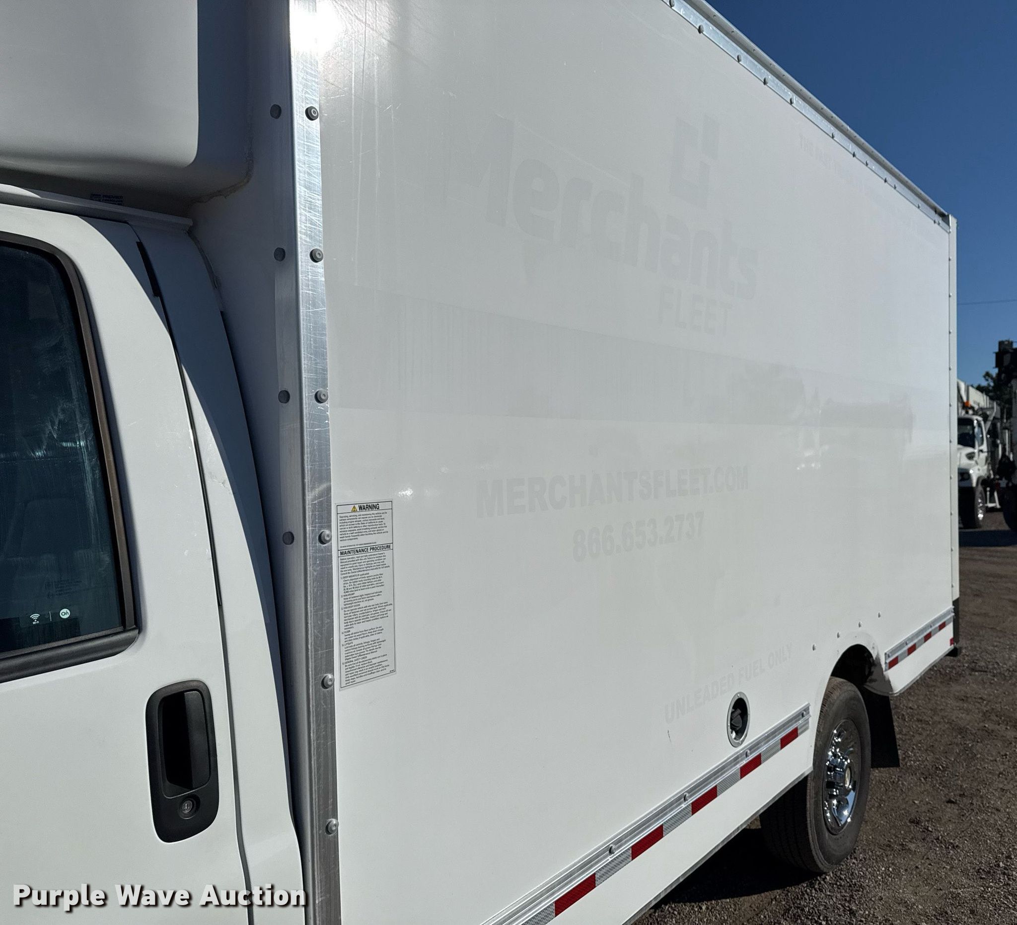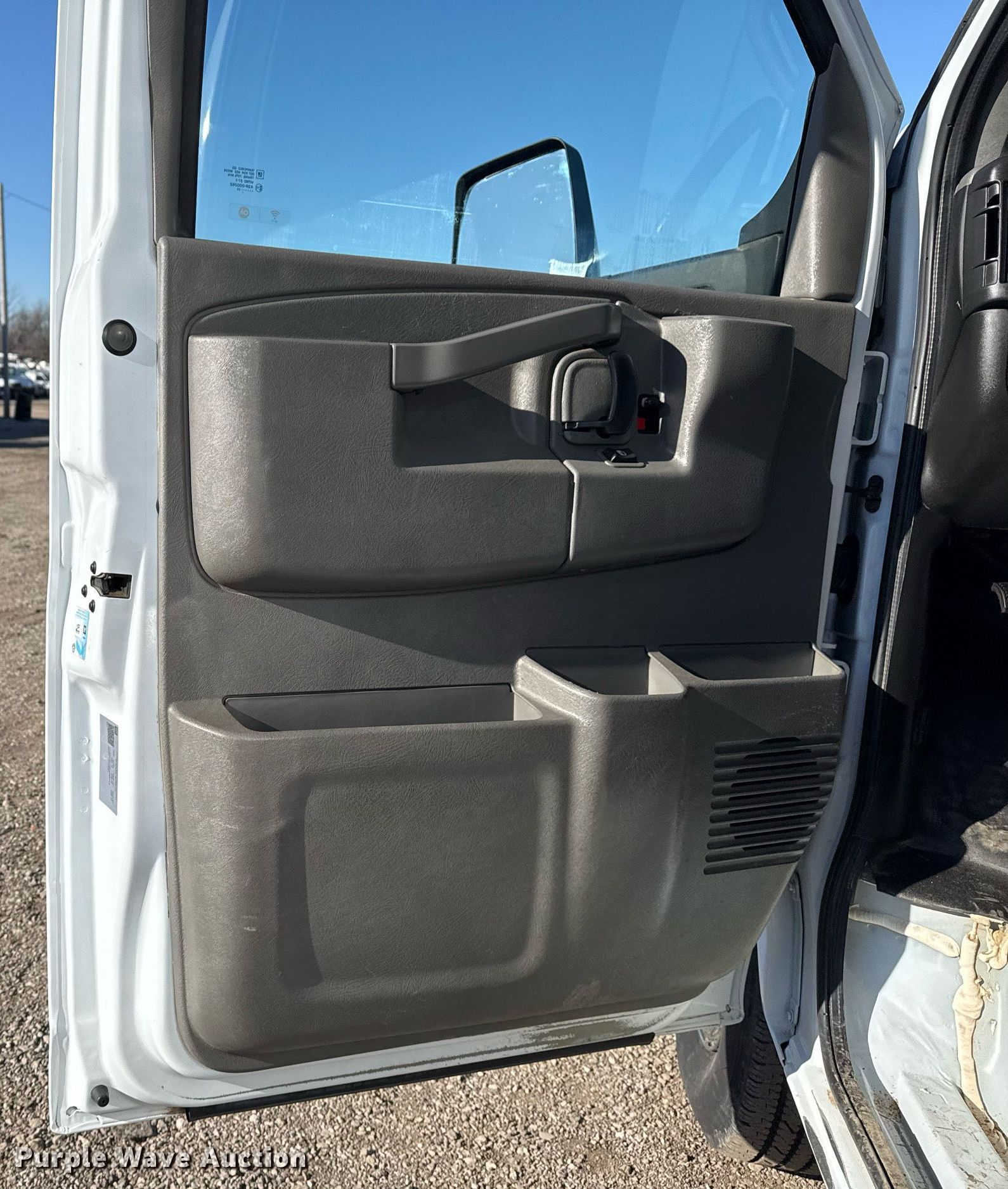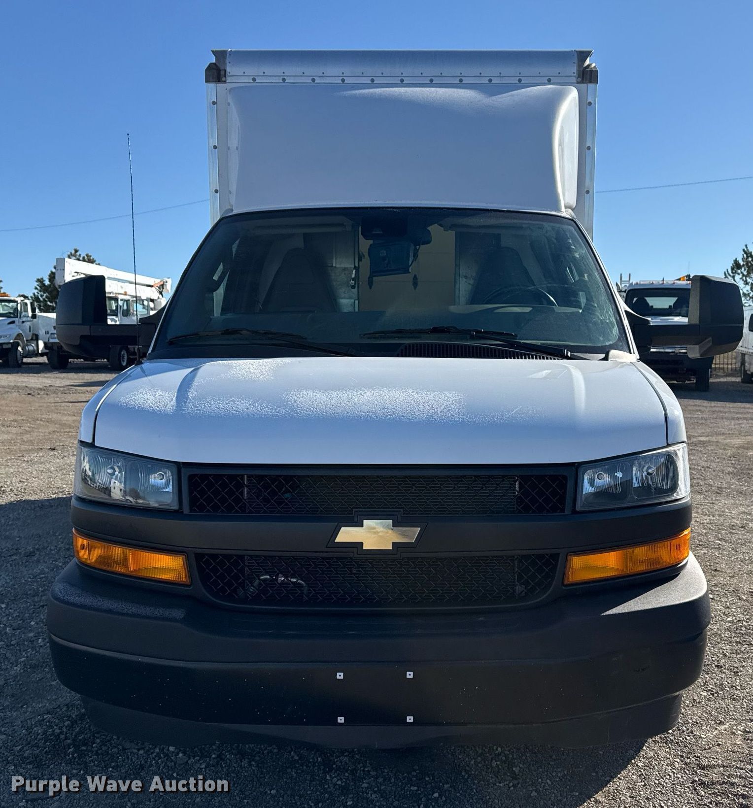 2022 Chevrolet Express G3500 delivery van. Miles: 21,753 on odometer, VIN: 1GB0GSF72N1165713. Engine Displacement: 6.6L V8 OHV, Cylinders: 8, Fuel type: Gas. Transmission Automatic. Chassis Axles: Single, Suspension: Spring, Brakes: Hydraulic, GVWR: 9,900 lbs. Interior AC, Heat, Power windows, Power locks, Cruise control. Features Box bed Morgan, 14' L x 79" W x 96" H, Floor: Wood, Backup camera. Tires Size: LT245/75R16. Notes Dash warning indicator: TPMS, Airbag. Oklahoma title. Seller is an Oklahoma licensed motor vehicle dealer. Title will be assigned and distributed by the dealer. Please contact the seller for distribution questions. Title distribution may be delayed up to 30 days from verification of funds. Collinsville, OK 74021