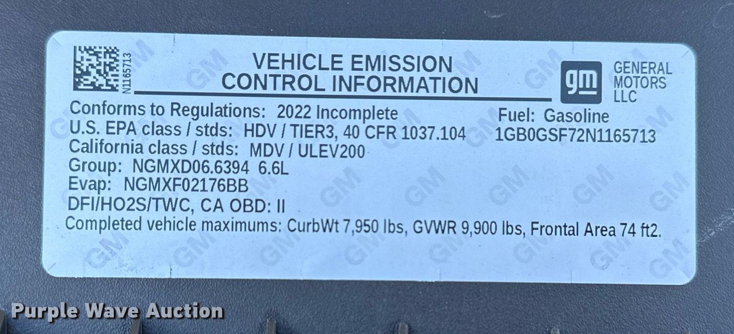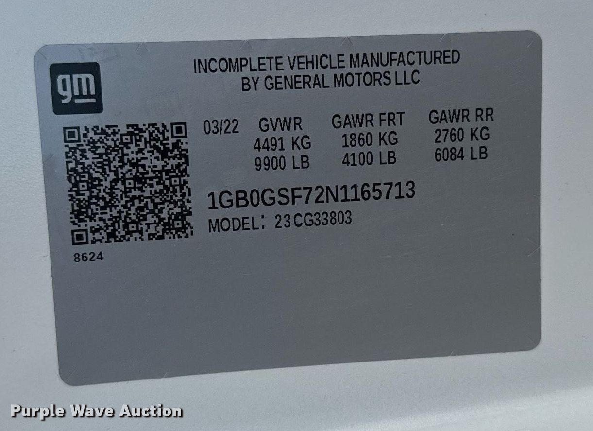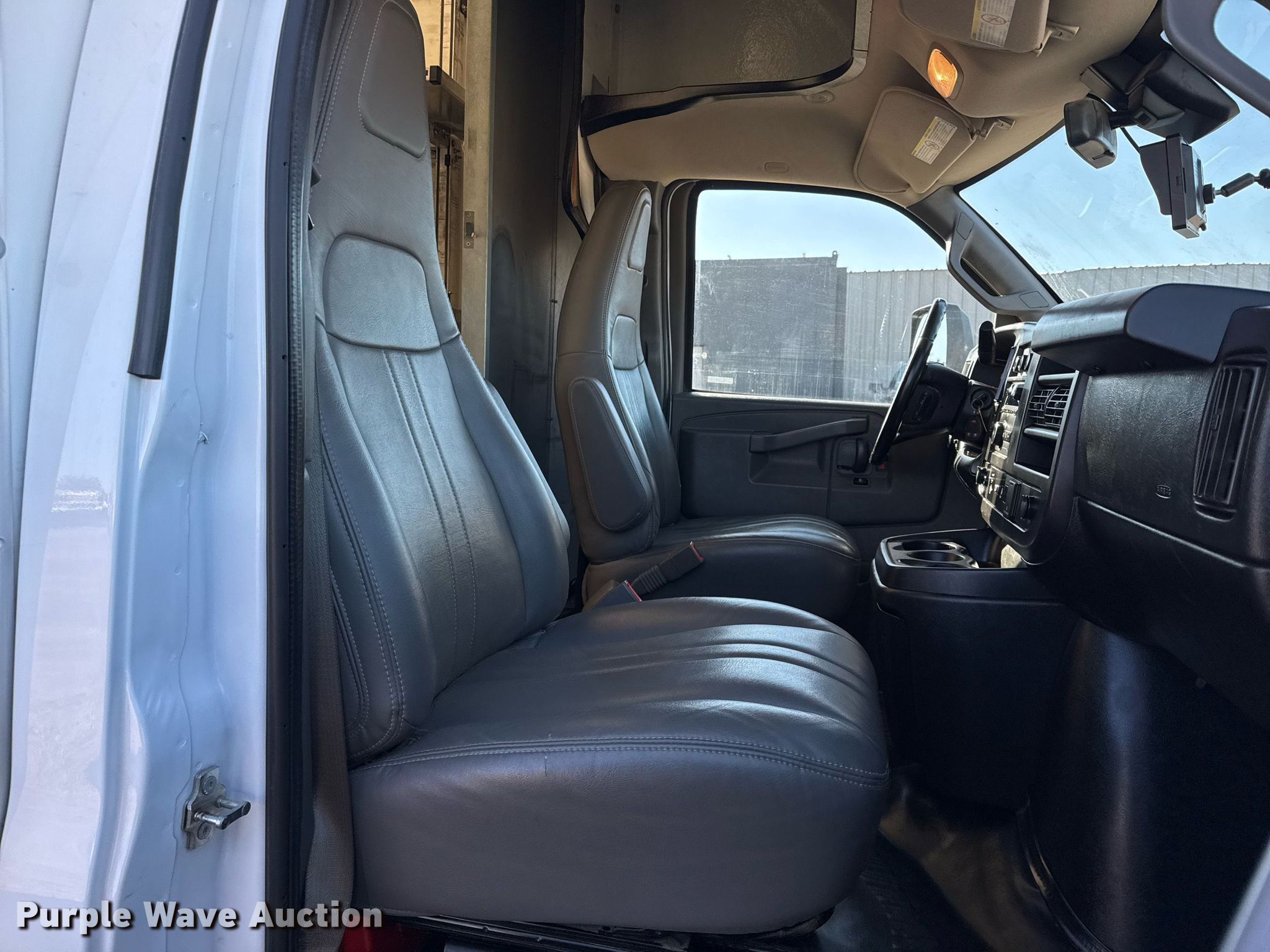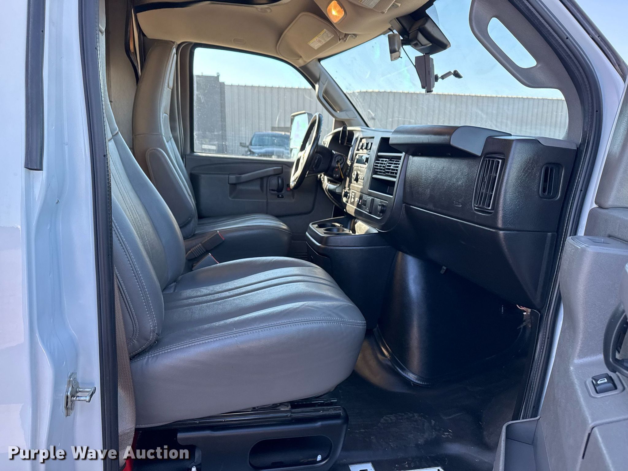 2022 Chevrolet Express G3500 delivery van. Miles: 21,753 on odometer, VIN: 1GB0GSF72N1165713. Engine Displacement: 6.6L V8 OHV, Cylinders: 8, Fuel type: Gas. Transmission Automatic. Chassis Axles: Single, Suspension: Spring, Brakes: Hydraulic, GVWR: 9,900 lbs. Interior AC, Heat, Power windows, Power locks, Cruise control. Features Box bed Morgan, 14' L x 79" W x 96" H, Floor: Wood, Backup camera. Tires Size: LT245/75R16. Notes Dash warning indicator: TPMS, Airbag. Oklahoma title. Seller is an Oklahoma licensed motor vehicle dealer. Title will be assigned and distributed by the dealer. Please contact the seller for distribution questions. Title distribution may be delayed up to 30 days from verification of funds. Collinsville, OK 74021