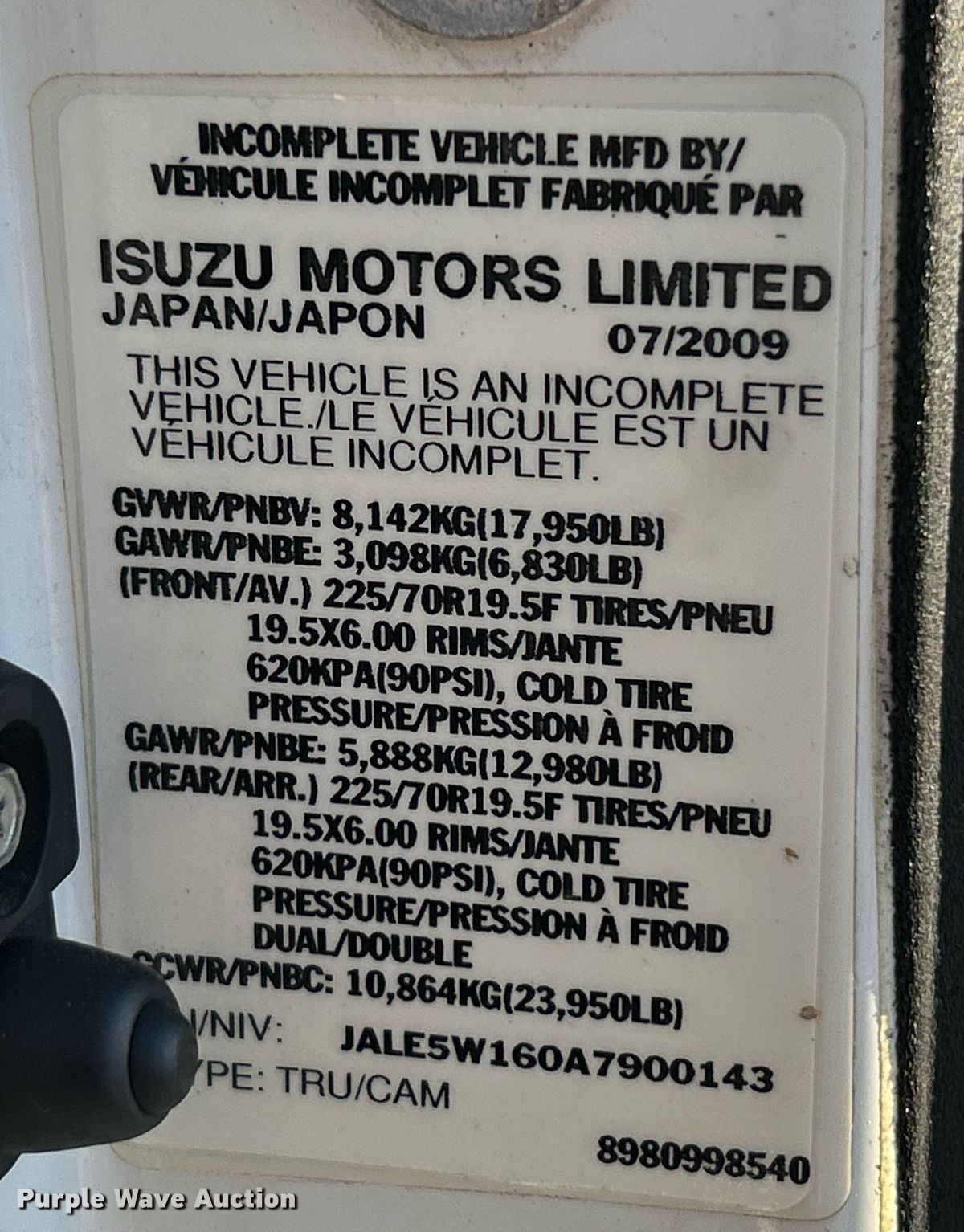 Purple Wave is selling a used Box Truck in Missouri. This item is a 2010 Isuzu NQR box truck with the following: Miles: 214,221 on odometer, VIN: JALE5W160A7900143