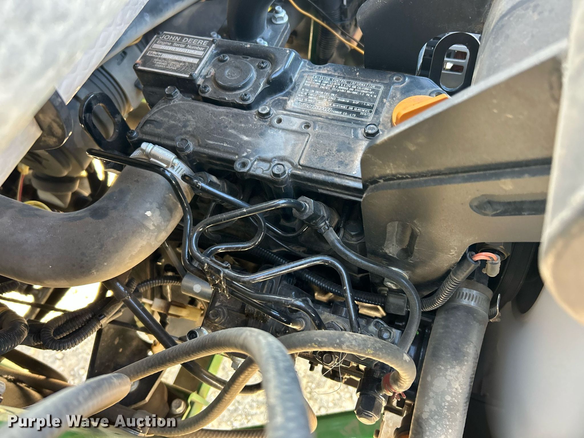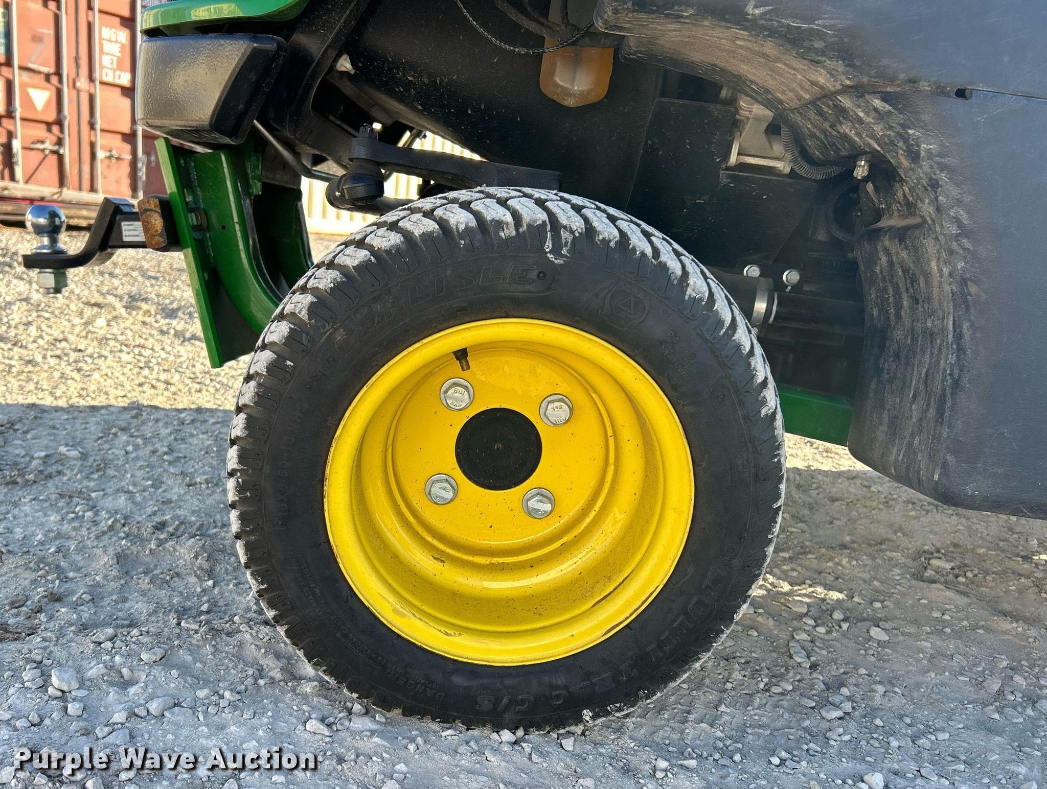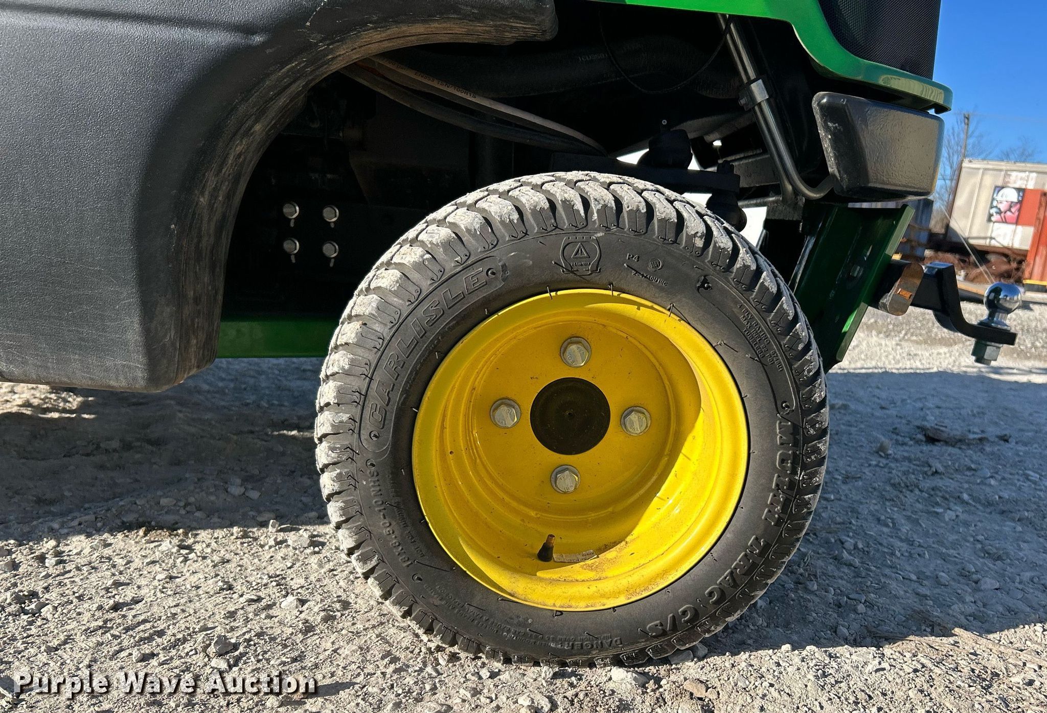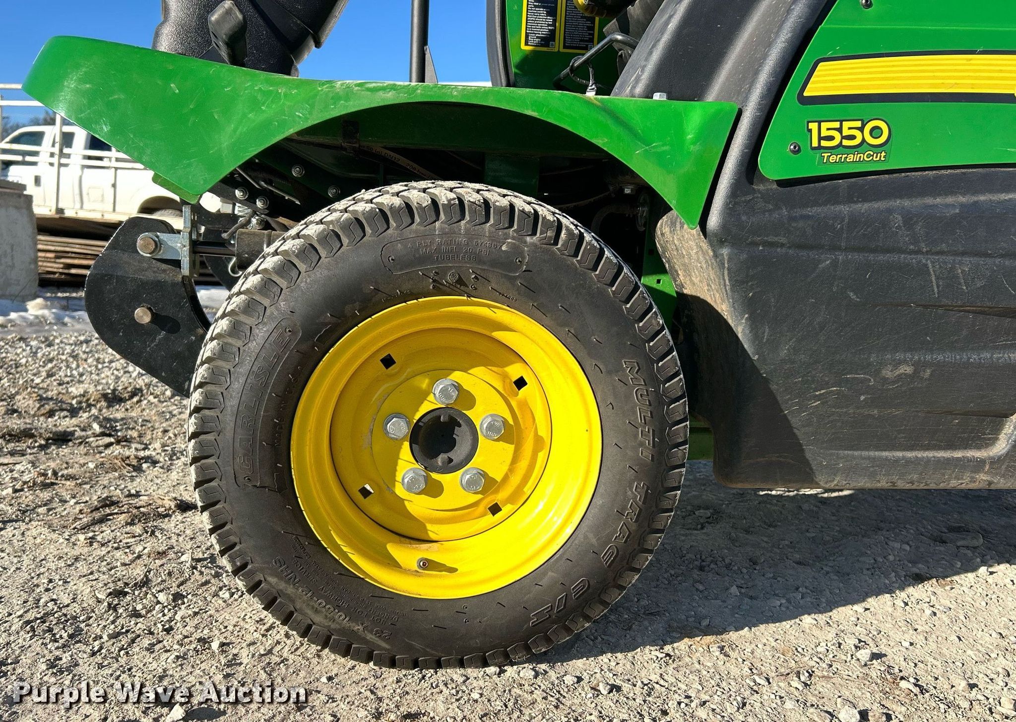 John Deere 1550 Terrain Cut lawn mower. Hours: 158 on meter, Serial: 1TC1550DEHS030214. Engine Yanmar, Displacement: 1.267L, Cylinders: 3, Fuel type: Diesel. Transmission Hydrostatic. Chassis Four wheel drive. Operators station OROPS. Features Hydraulic front deck lift. Tires Front: 23x10.50-12NHS, Rear: 18x8.50-10. Notes Dead battery, Mower deck not included. McCarthy Building Companies Inc. St. Louis, MO 63124