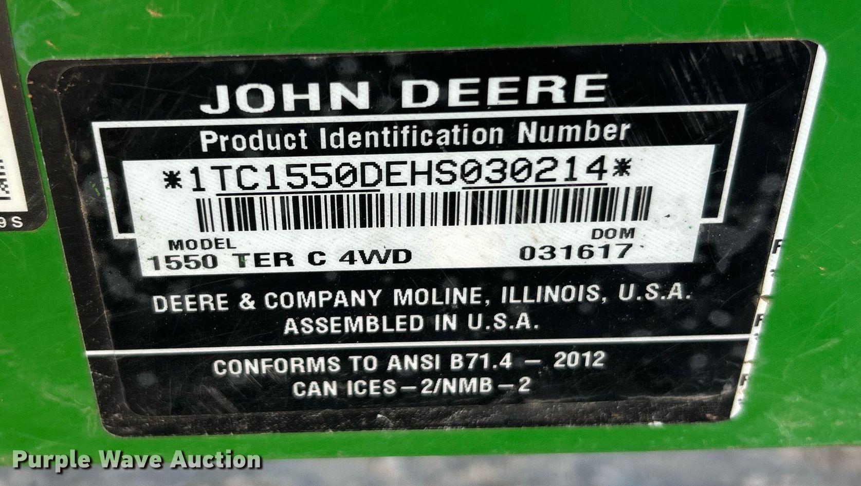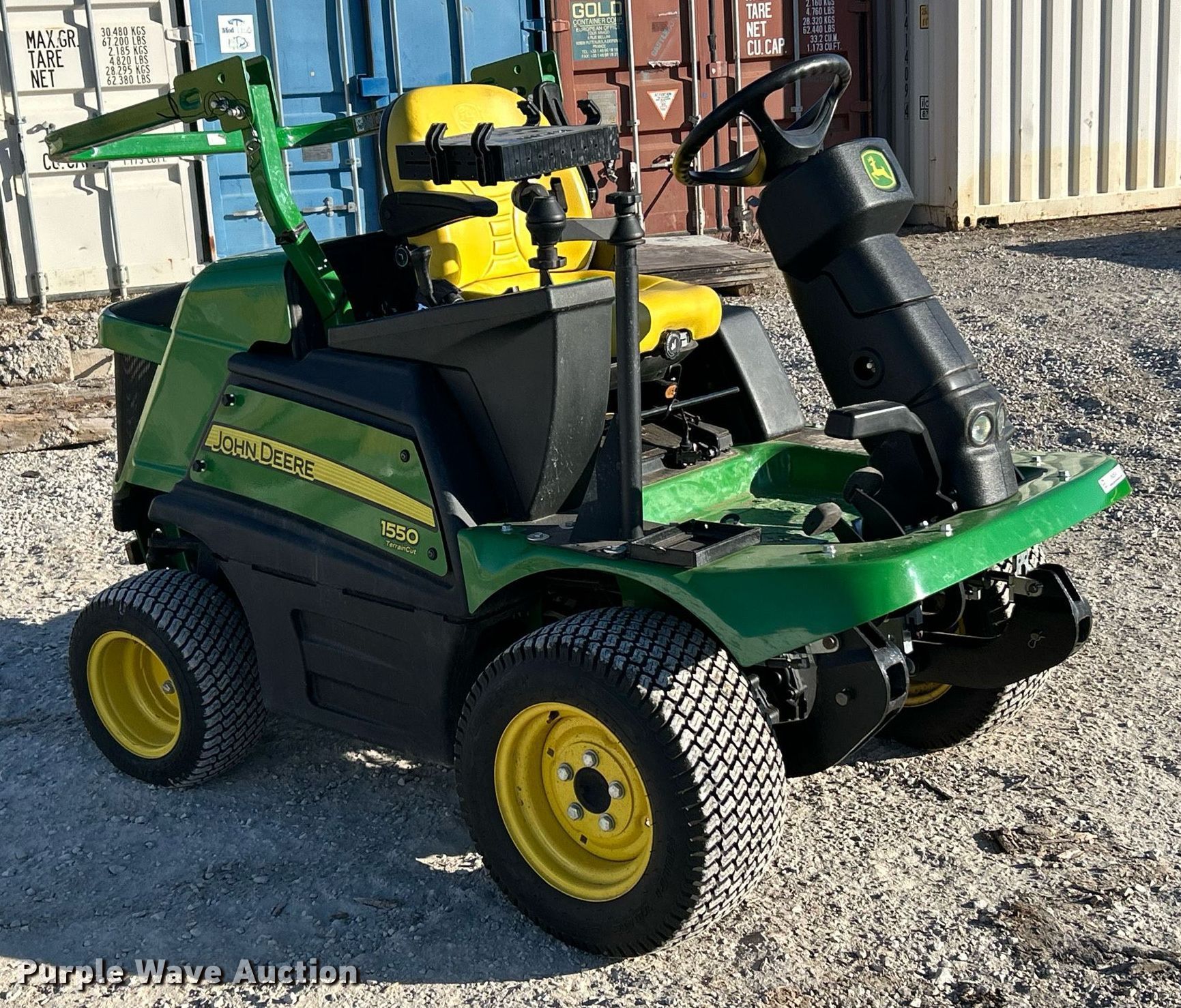 Purple Wave is selling a used Commercial Turf Mower in Missouri. This item is a John Deere 1550 Terrain Cut lawn mower with the following: Hours: 158 on meter, Serial: 1TC1550DEHS030214