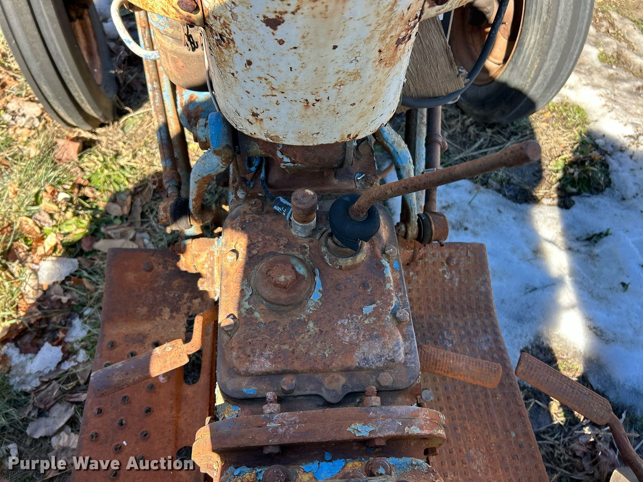 Ford 9N Golden Jubilee tractor. Hours: 1,637 on meter. Engine Cylinders: 4, Fuel type: Gas. Transmission Manual, 3F - 1R, Differential lock. Features PTO: 540, Three point. Tires Front: 5.50-16SL, Rear: 13.6-28. Notes Engine issues, turns over but will not start, Flat rear tires, Non-operational unit. Beckham Investment Group. Bridgeton, MO 63044