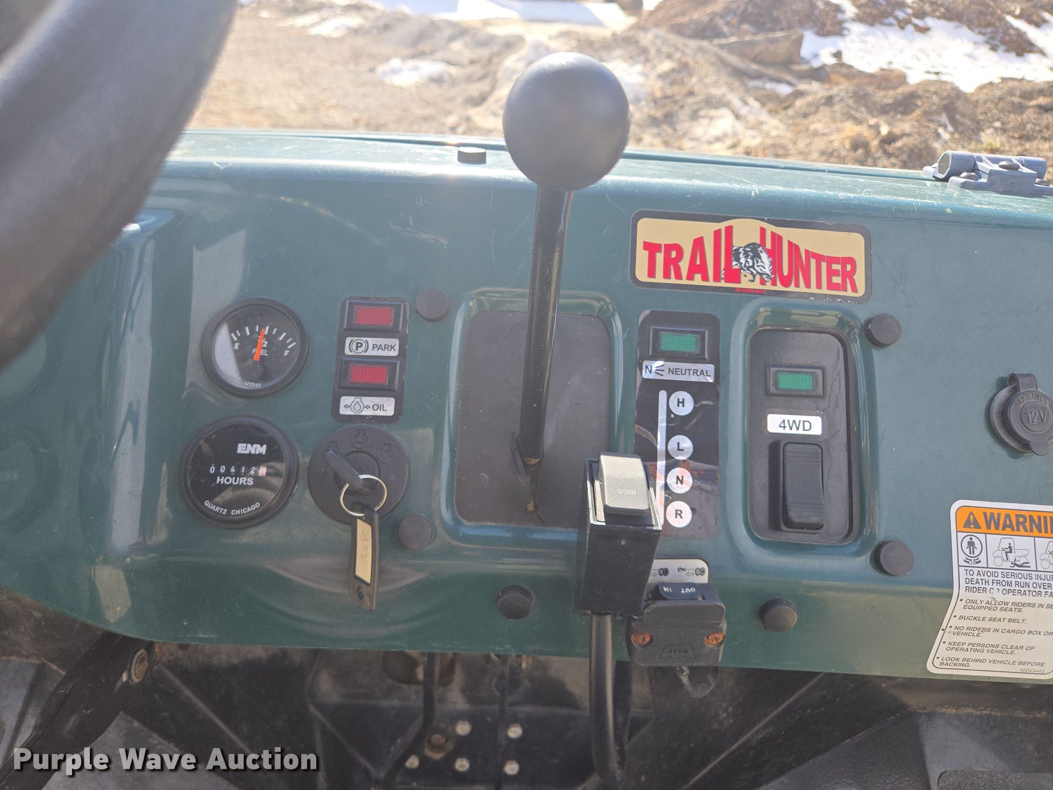 Bush Hog TH440G utility vehicle. Hours: 412 on meter, Serial: BHIUA4AGC5S040344. Engine Honda V Twin, Cylinders: 2, Fuel type: Gas, HP: 20, Electric start. Transmission Automatic. Chassis Four wheel drive/ All wheel drive. Operators station OROPS, Canopy. Features Grille guard, Receiver hitch, Dump bed Dump bed type: Manual. Tires Front: 23x8.00-12, Rear: 23x10.00-12. Transfer of ownership documentation will be a bill of sale. Greenscapes Lawn and Garden, LLC. Warrensburg, MO 64093