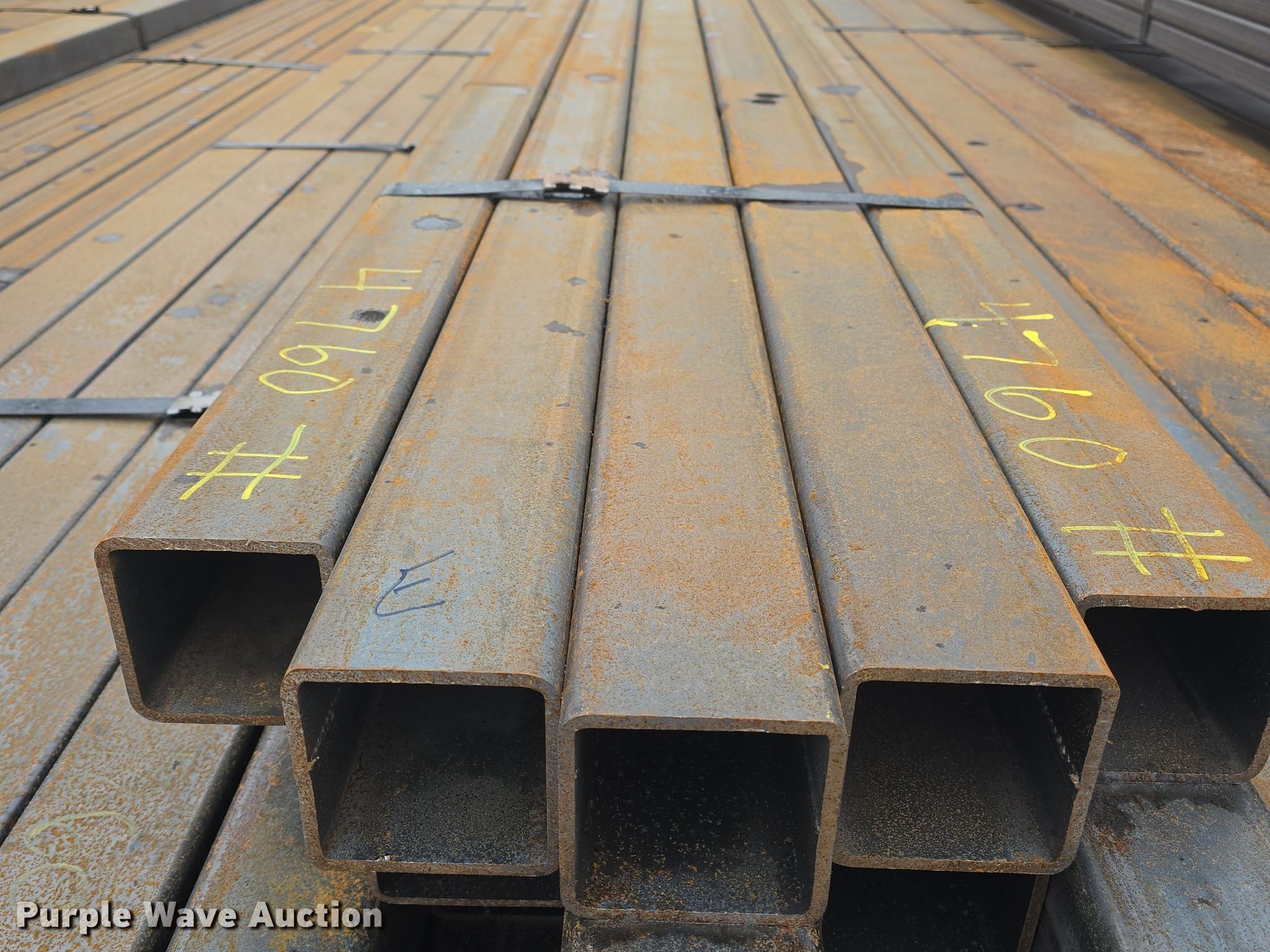 Purple Wave is selling a used Building Materials in Kansas. This item is a (25) pieces of steel with the following: 4" x 4" x 1/4", Lengths: Approx. 19' to 20', Weight: Approx. 4,760 lbs, Serial: E, Unit #: 12025-7