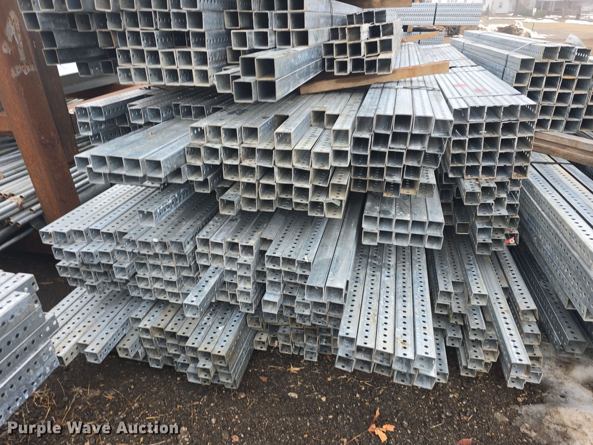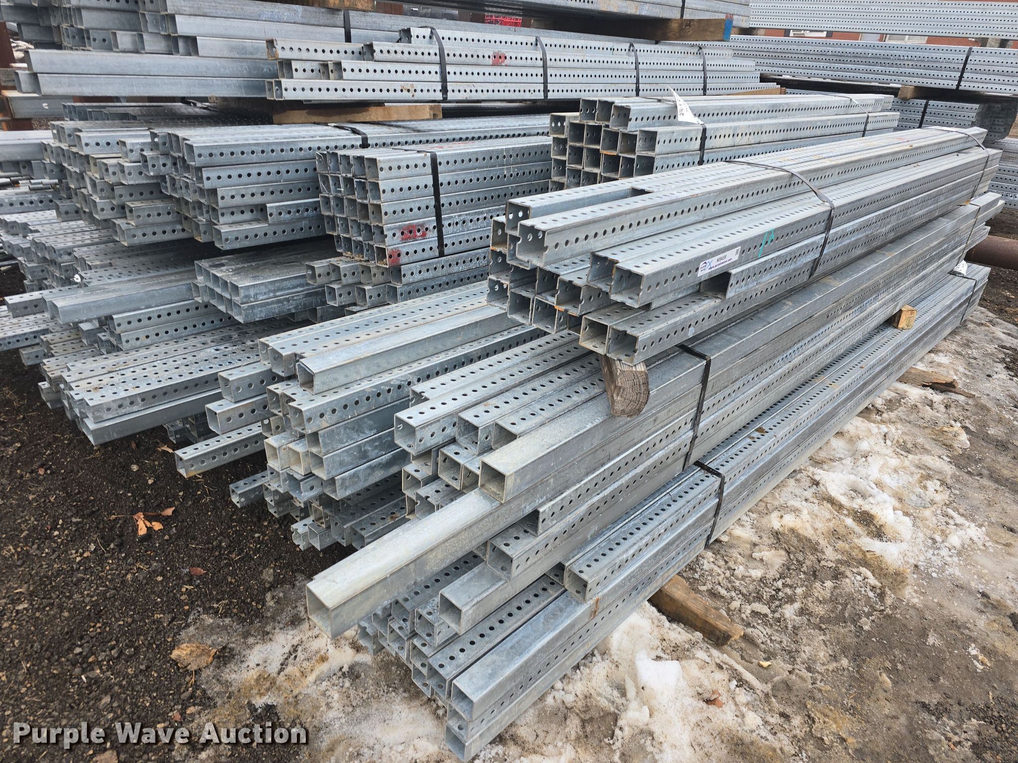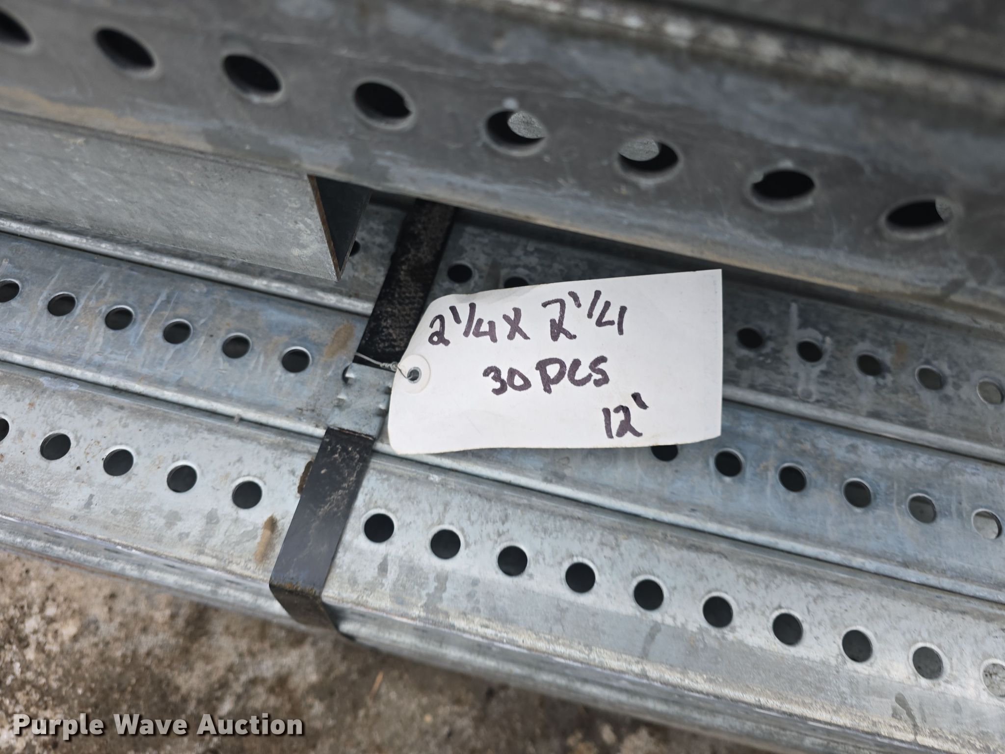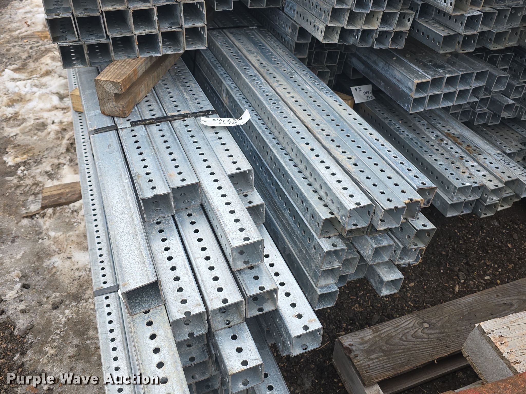 Purple Wave is selling a used Building Materials in Kansas. This item is a Approximately 825 pieces of perforated tubing with the following: Unit #: PERF1, (55) 2 1/4" x 2 1/4", Length: 12', Weight: Approx. 1,432 lbs, (21) 2 1/4" x 2 1/4", Length: 9', Weight: Approx. 410 lbs, (6) 2 1/4" x 2 1/4", Length: 33', Weight: Approx. 429 lbs, (115) 2" x 2", Length: 12', Weight: Approx. 2,994 lbs, (351) 2" x 2", Length" 10', Weight: Approx. 7,616 lbs, (100) 2" x 2", Length: 9', Weight: Approx. 1,953 lbs, (47) 2" x 2", Length: 8', Weight: Approx. 815 lbs, (80) 2" x 2", Length: 6', Weight: Approx. 1,041 lbs, (25) 2" x 2", Length: 5', Weight: Approx. 271 lbs, (25) 2" x 2", Length: 3', Weight: Approx. 162 lbs, Serial: CC