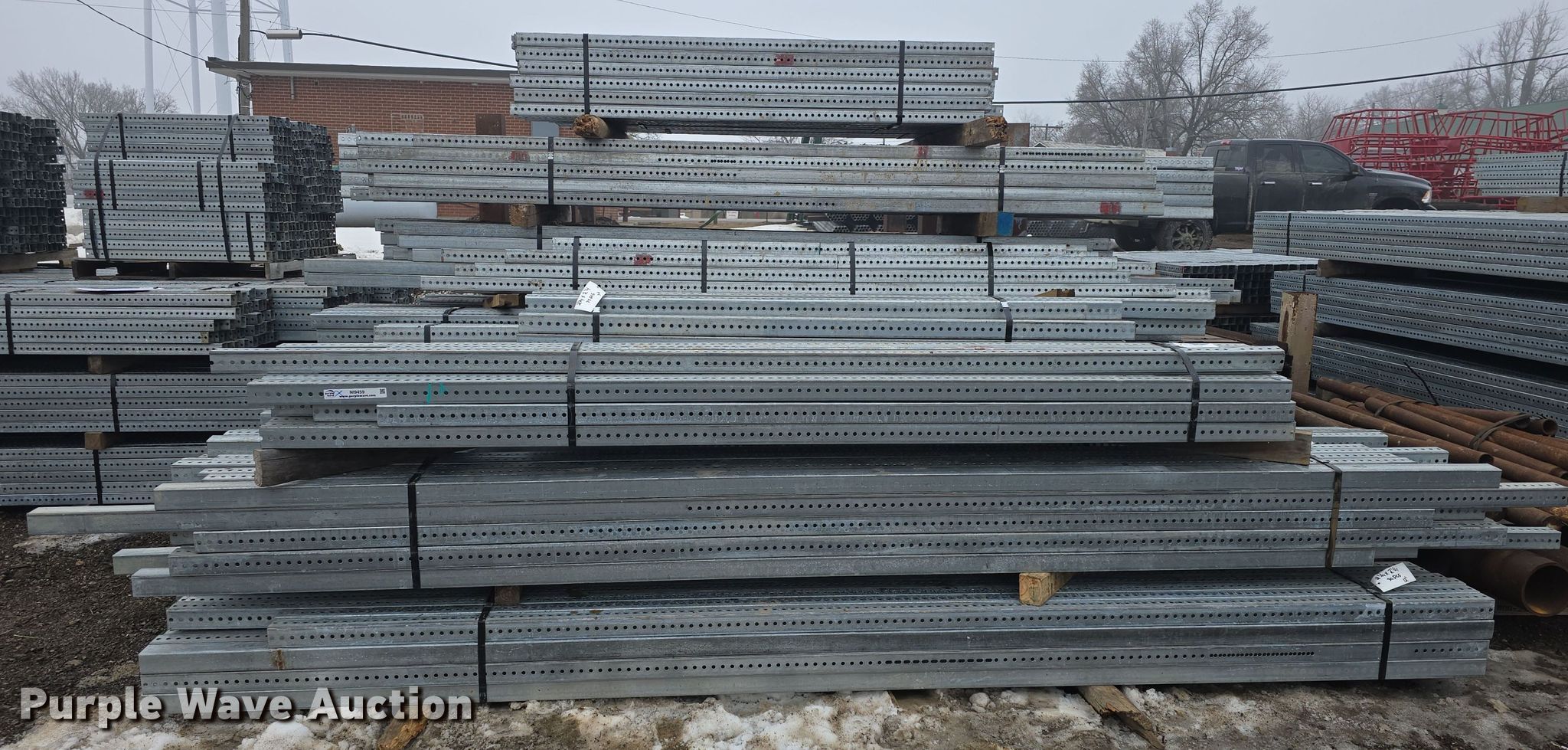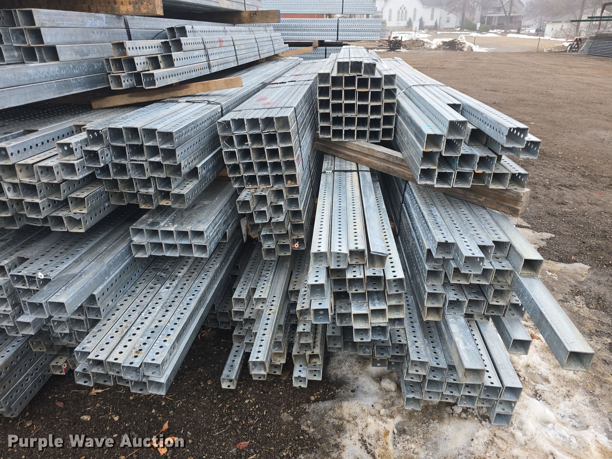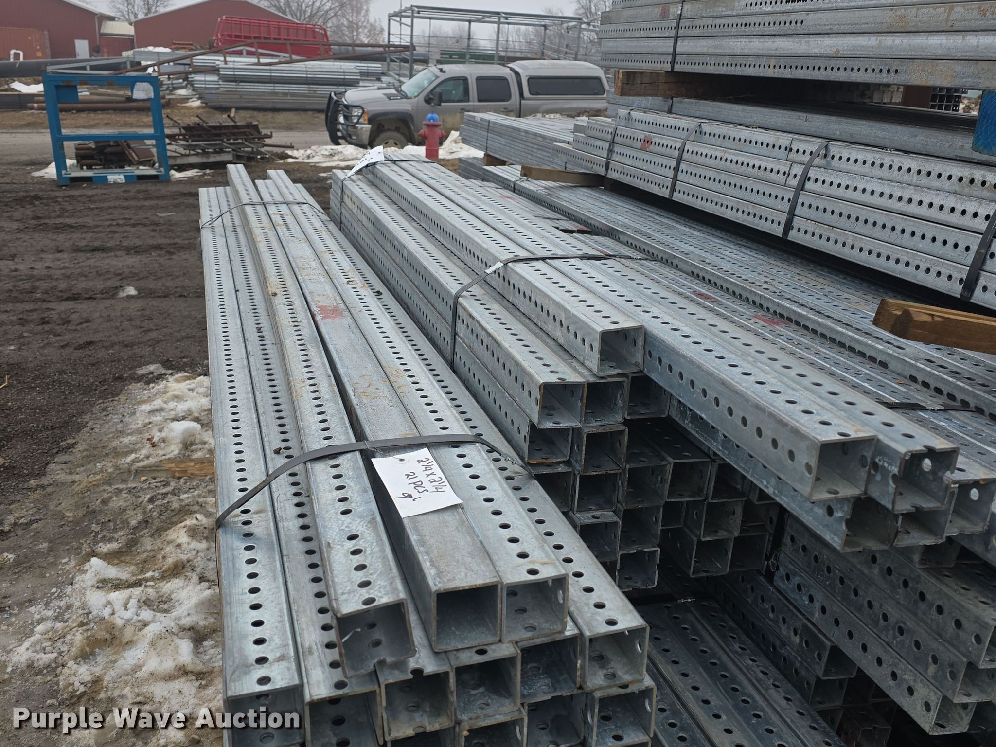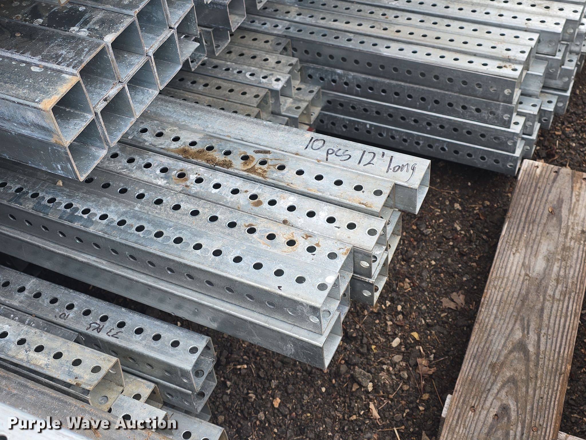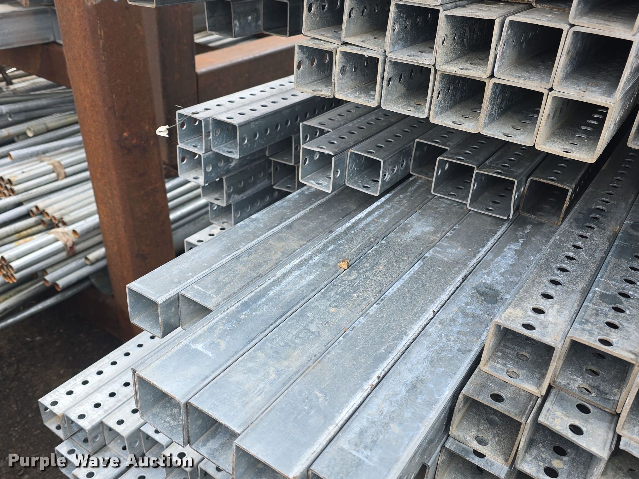 Purple Wave is selling a used Building Materials in Kansas. This item is a Approximately 825 pieces of perforated tubing with the following: Unit #: PERF1, (55) 2 1/4" x 2 1/4", Length: 12', Weight: Approx. 1,432 lbs, (21) 2 1/4" x 2 1/4", Length: 9', Weight: Approx. 410 lbs, (6) 2 1/4" x 2 1/4", Length: 33', Weight: Approx. 429 lbs, (115) 2" x 2", Length: 12', Weight: Approx. 2,994 lbs, (351) 2" x 2", Length" 10', Weight: Approx. 7,616 lbs, (100) 2" x 2", Length: 9', Weight: Approx. 1,953 lbs, (47) 2" x 2", Length: 8', Weight: Approx. 815 lbs, (80) 2" x 2", Length: 6', Weight: Approx. 1,041 lbs, (25) 2" x 2", Length: 5', Weight: Approx. 271 lbs, (25) 2" x 2", Length: 3', Weight: Approx. 162 lbs, Serial: CC