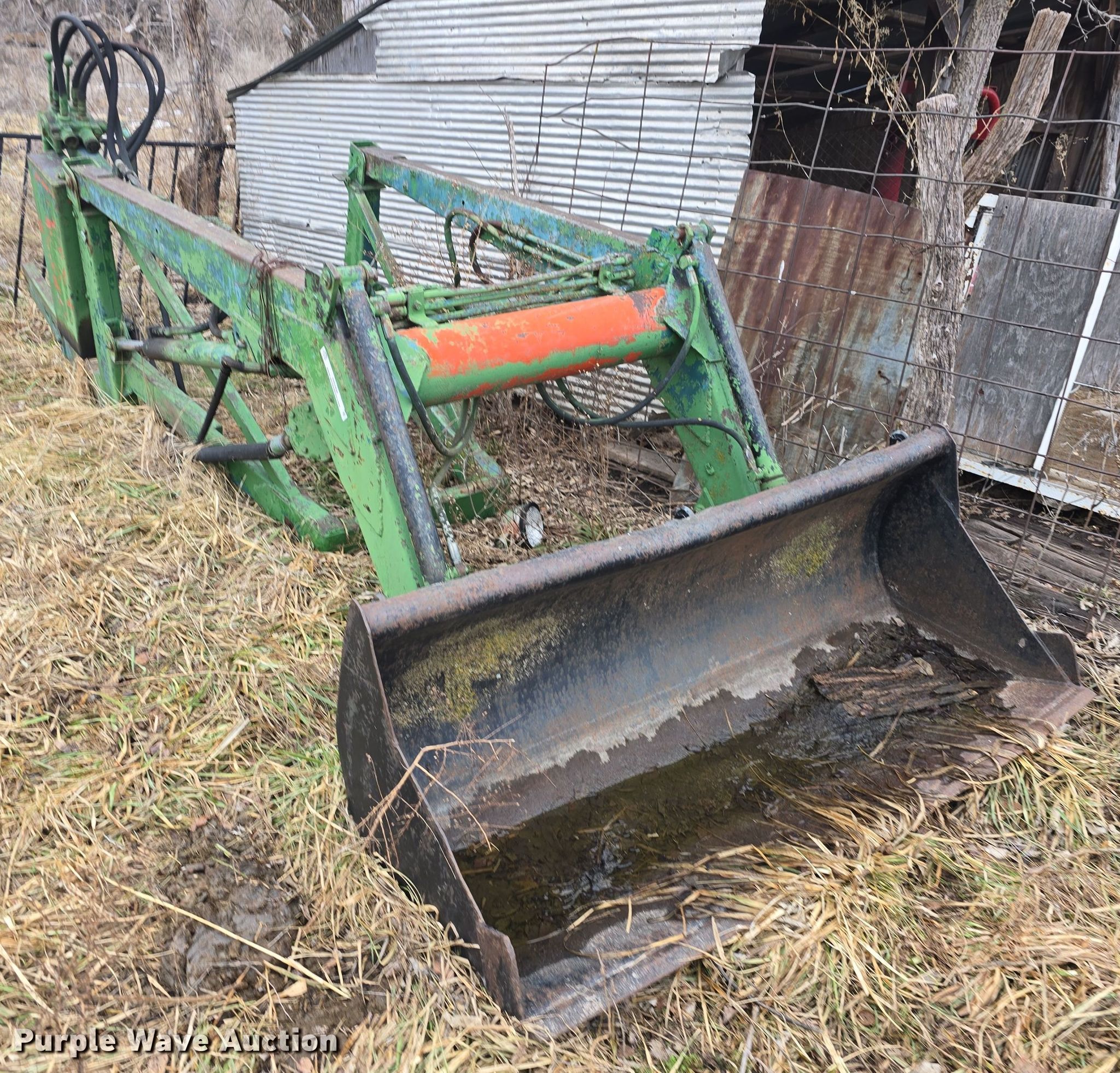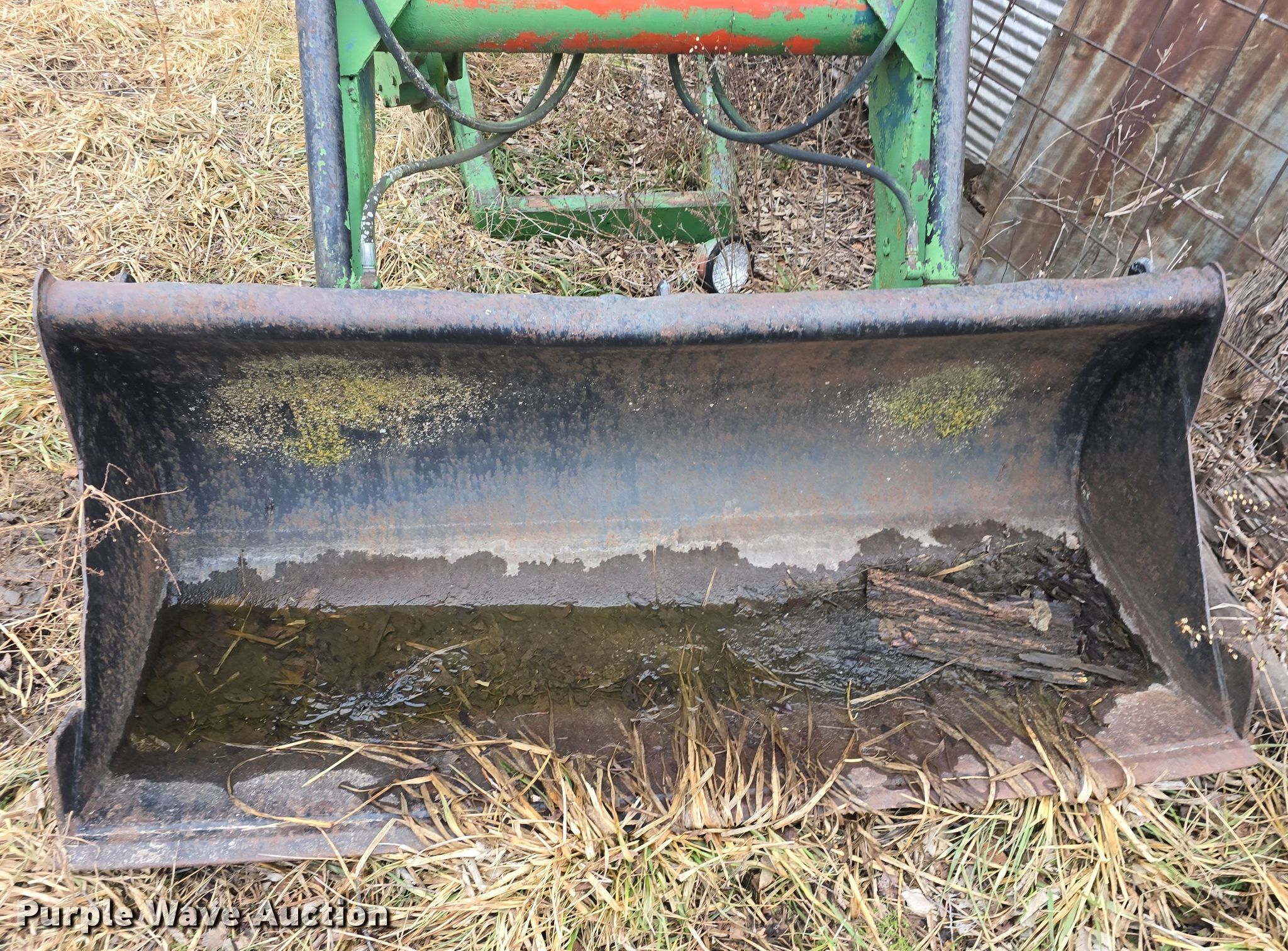 Purple Wave is selling a used Ag Tractor Loader or Attach. in Kansas. This item is a Allis Chalmers loader with the following: Bucket, Width: 5', Hydraulic hoses may need replaced, Unknown operating condition